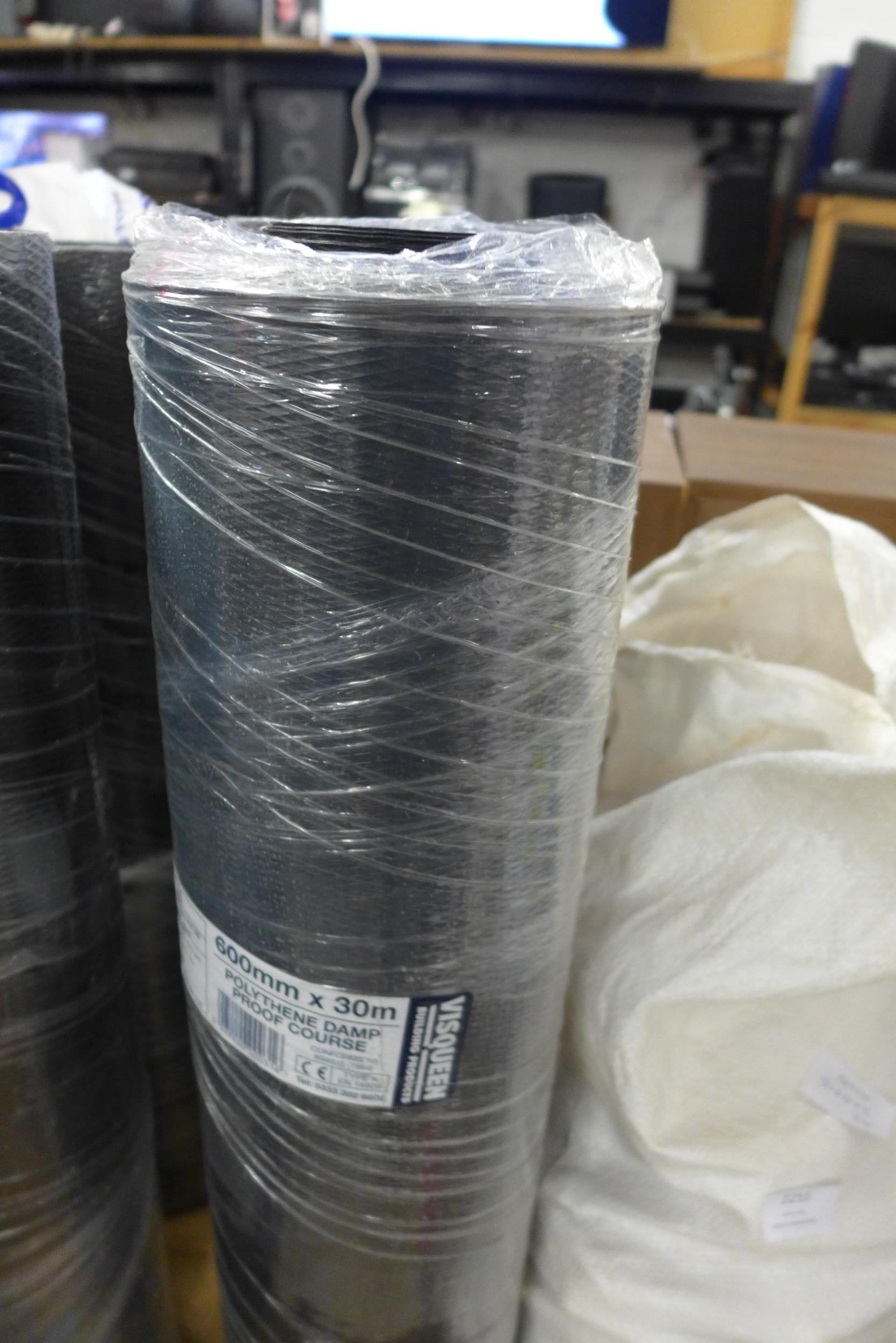 2 Rolls of 600mm x 30M Visqueen polythene damp proof course - unused, wrapped