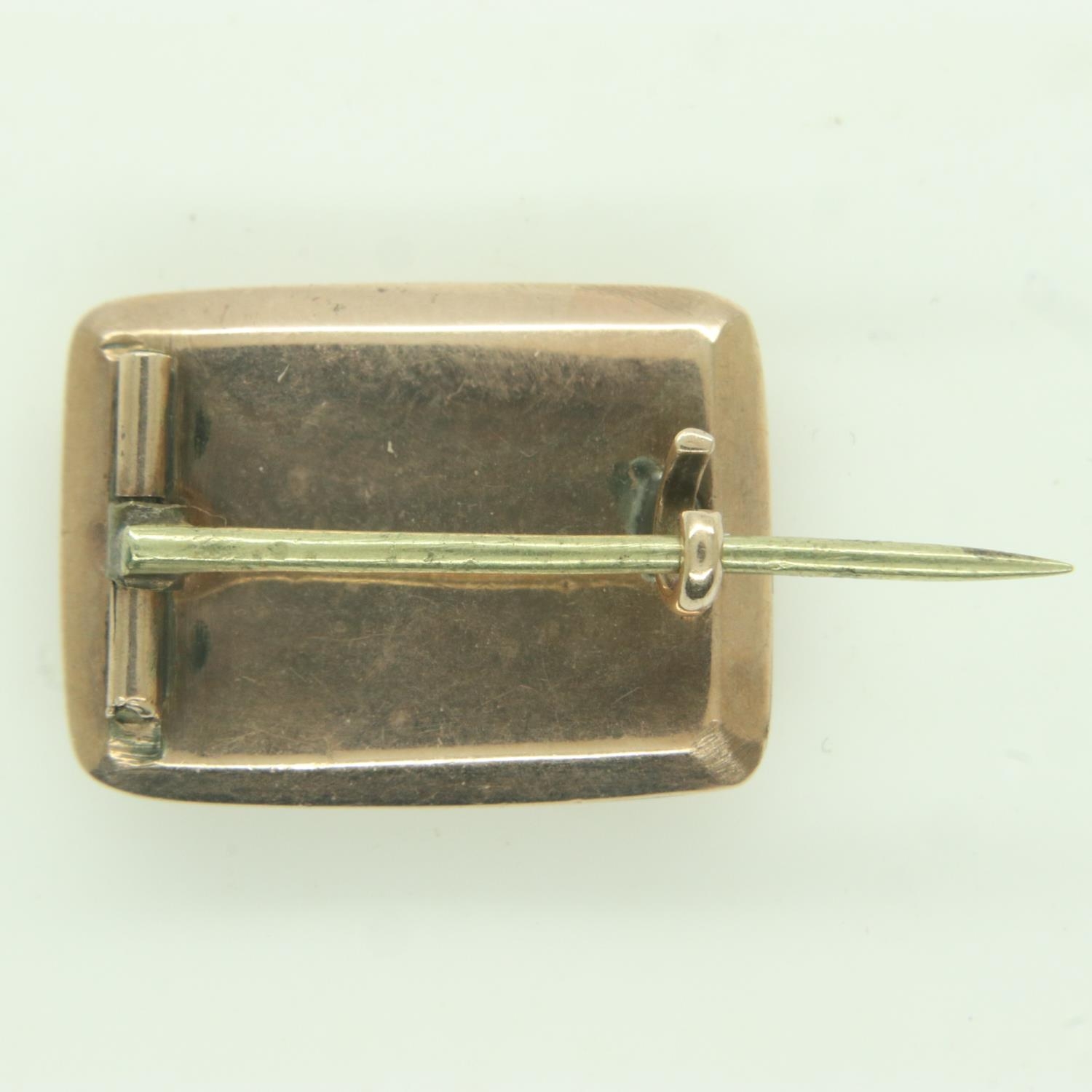 Georgian 9ct rose gold and braided hair mourning brooch, L: 20 mm, 3.4g. UK P&P Group 0 (£6+VAT for the first lot and £1+VAT for subsequent lots)