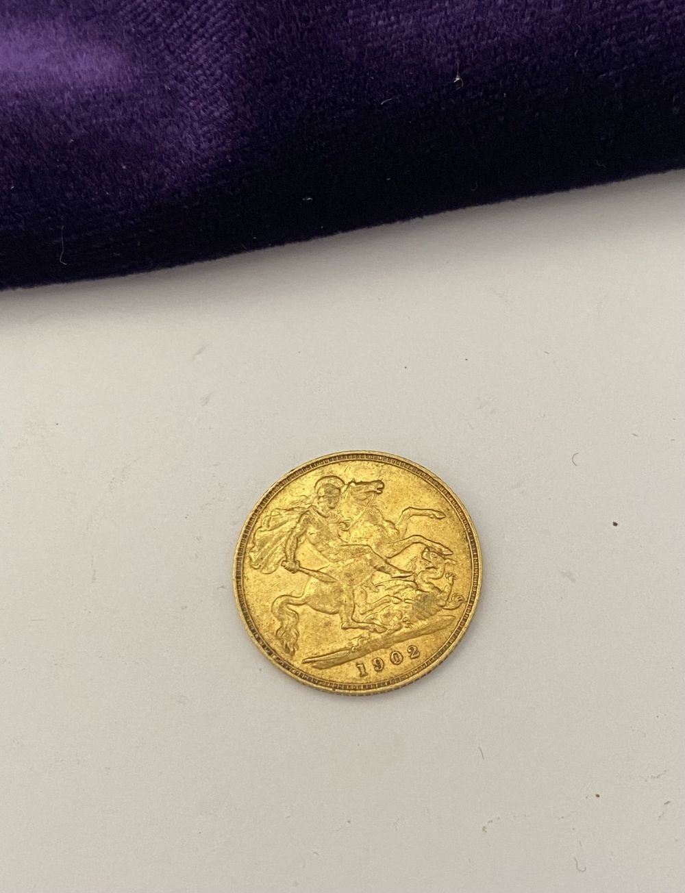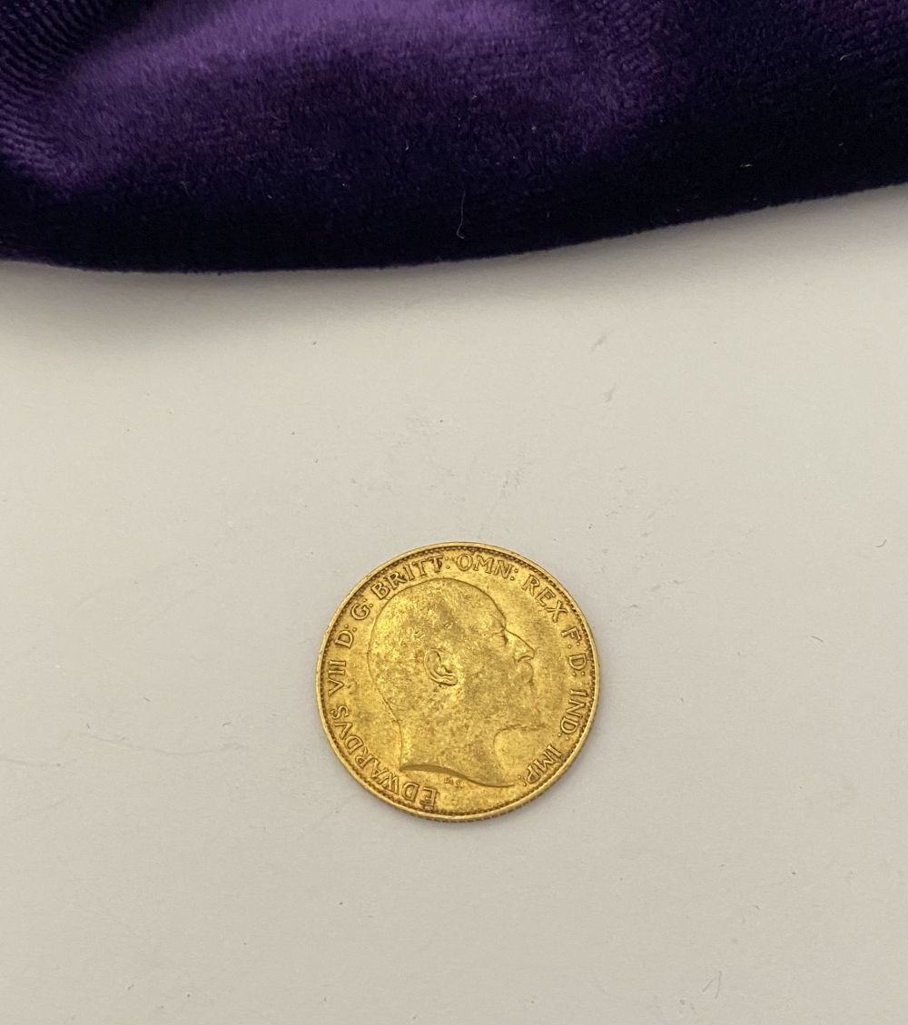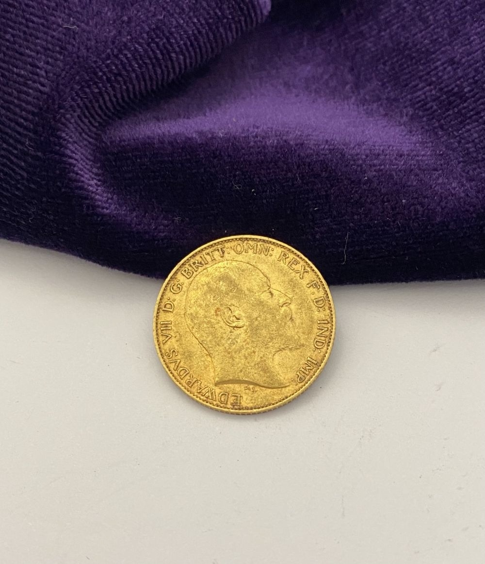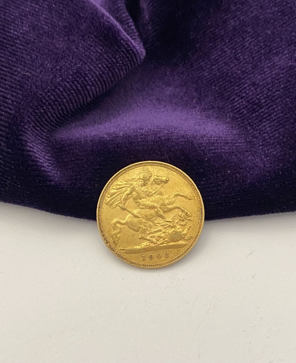 AN EDWARD VII GOLD HALF-SOVEREIGN, 1902, bare head facing right. Toothed border with Latin: EDWARDS VII D: G: BRITT: OMN: REX: F: D: IND: IMP. Reverse St. George slaying the dragon, date 1903, edge milled. Lack of Mintmark denotes London Mint. Weight: 3.97g. Condition as photographed