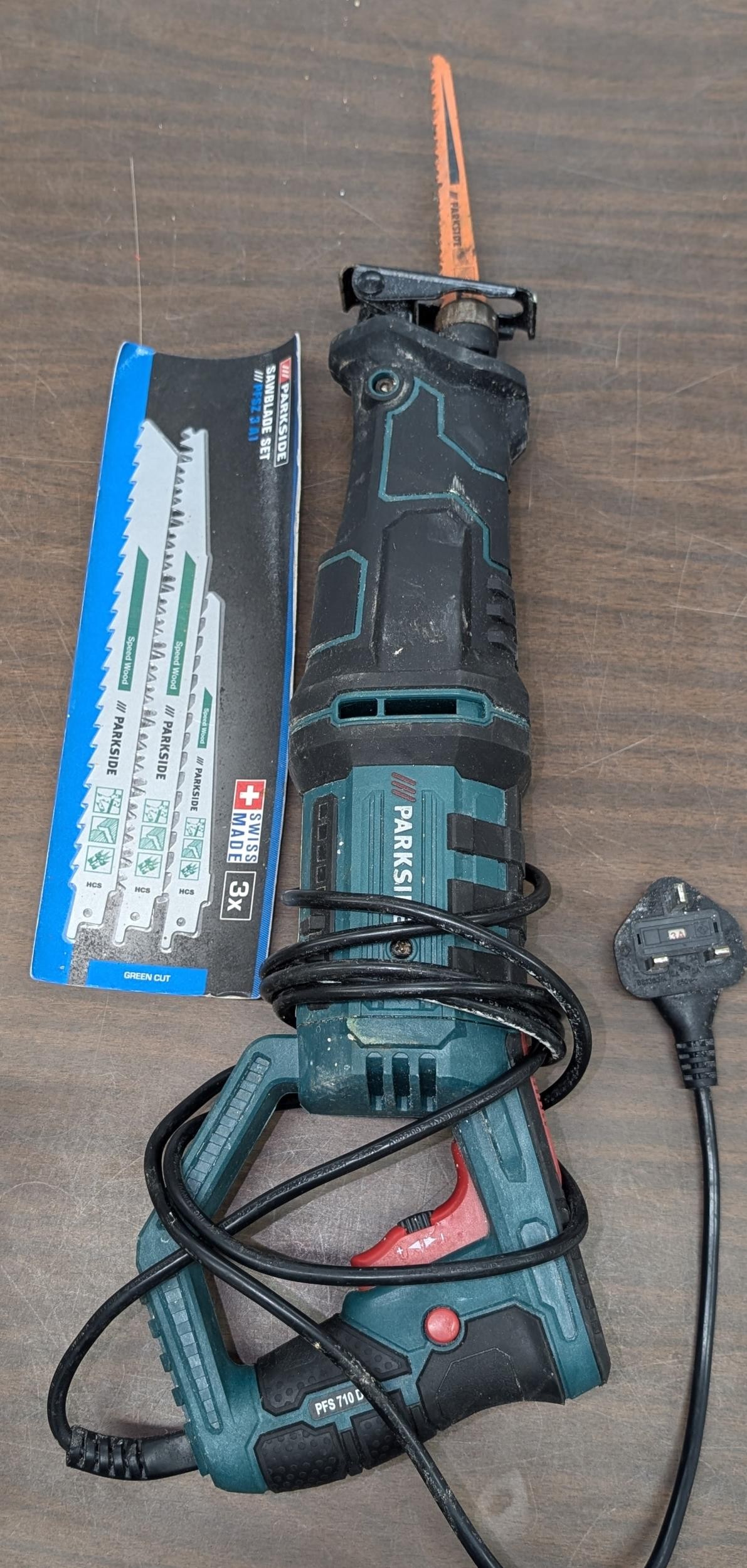 Parkside 710wt electric sabre saw model PFS710D3, with set of blades