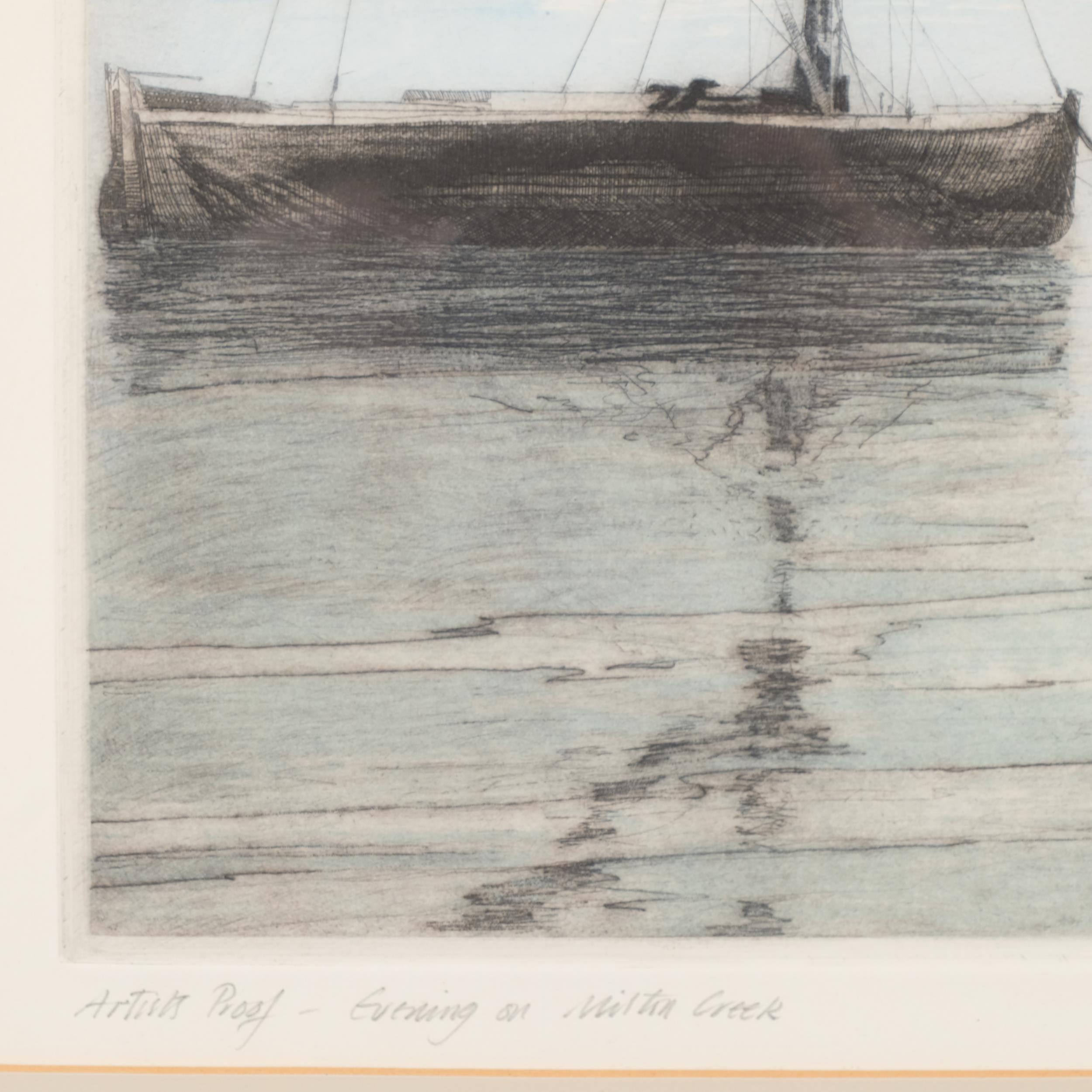 Michael Chaplin, Evening On Milton Creek, coloured etching, artist's proof, signed in pencil, plate 30cm x 38cm, framed