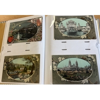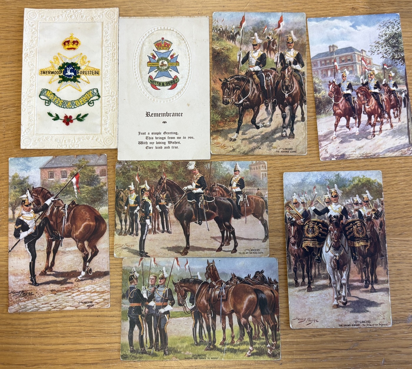 Misc. coln. of vintage ptd, artist drawn and R.Ps in 4 albums and loose, with artists incl. strong range of Harry Payne, advertising, buildings, coastal scenes, military interest with infantry and naval scenes, portraits, royalty, silks with Sherwood Foresters Remembrance card and shipping. Plus range of scrapbooks and accessories. Qty. approx. 300+. (4B)