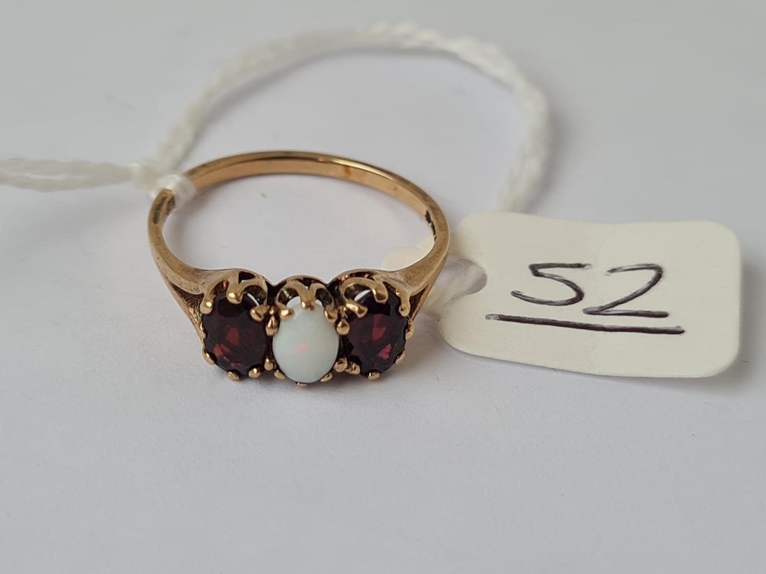 A vintage opal & garnet ring in 9ct - size R - 2.25gms