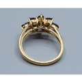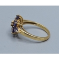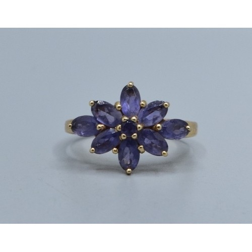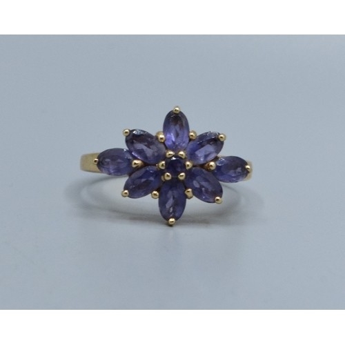 9ct gold ladies Amethyst star burst design ring size N, 3.33grams