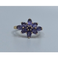 9ct gold ladies Amethyst star burst design ring size N, 3.33...