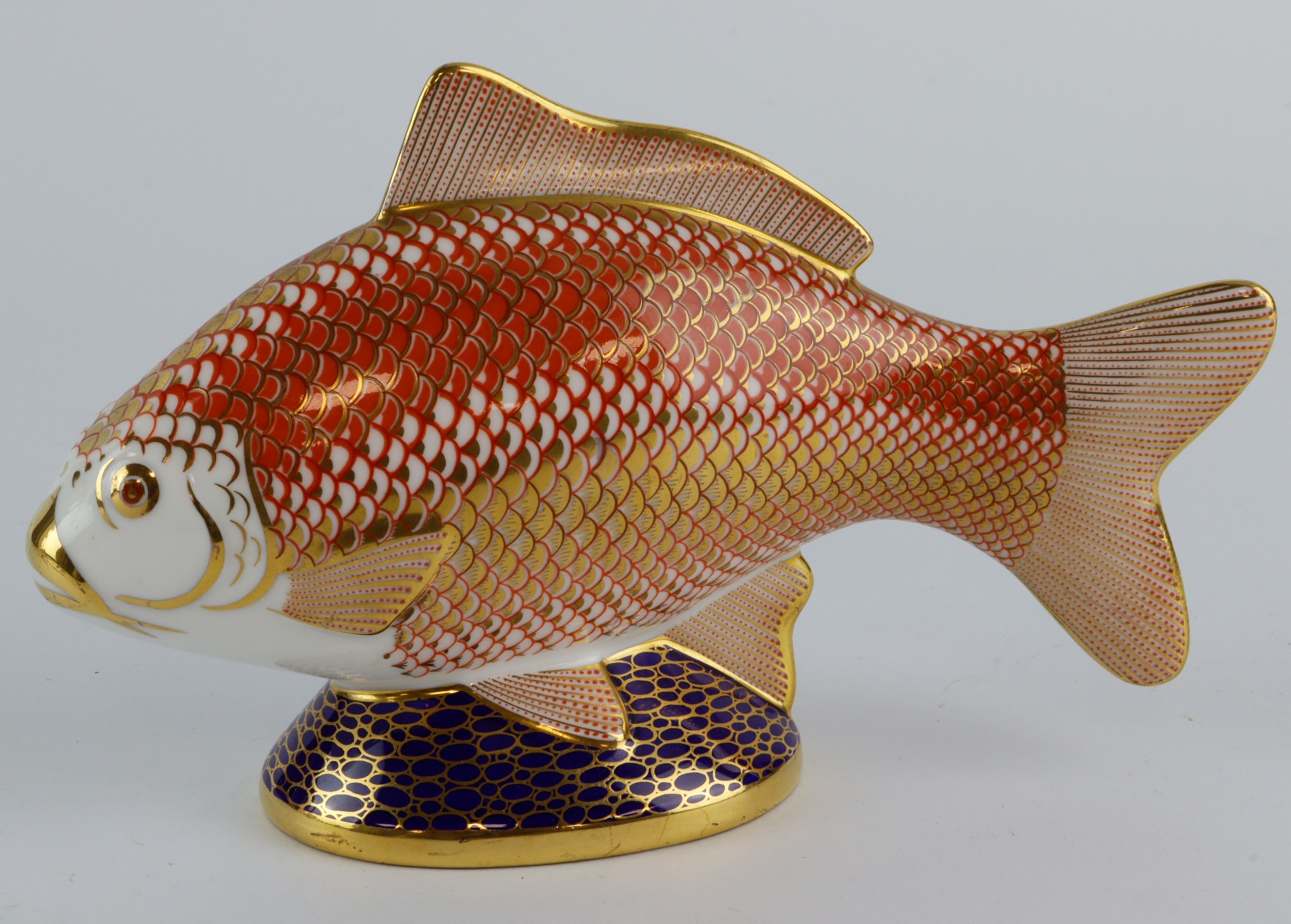 Royal Crown Derby paperweight, depicting a fish, makers marks to base, stopper missing, height 11cm, length 18cm approx.