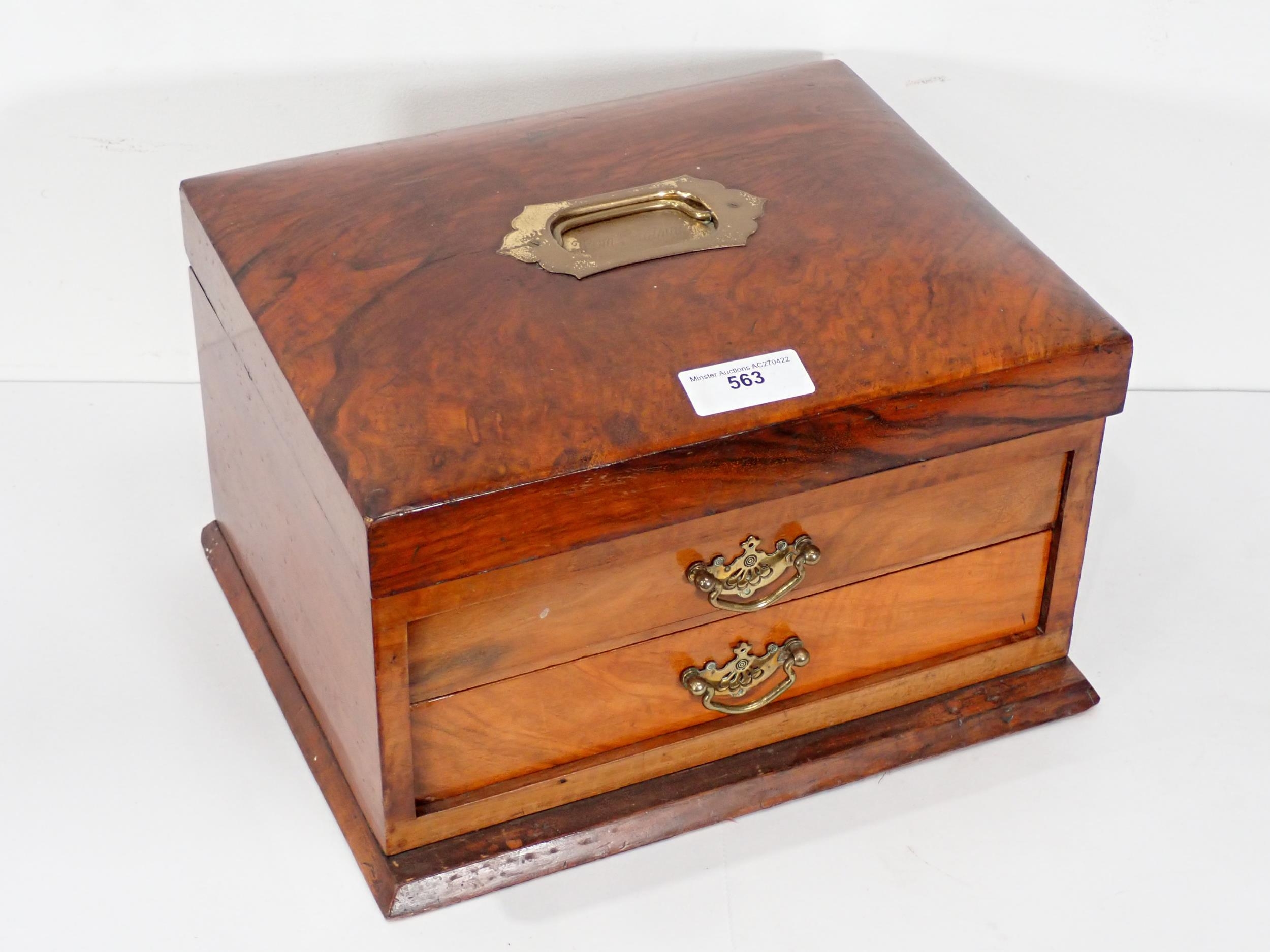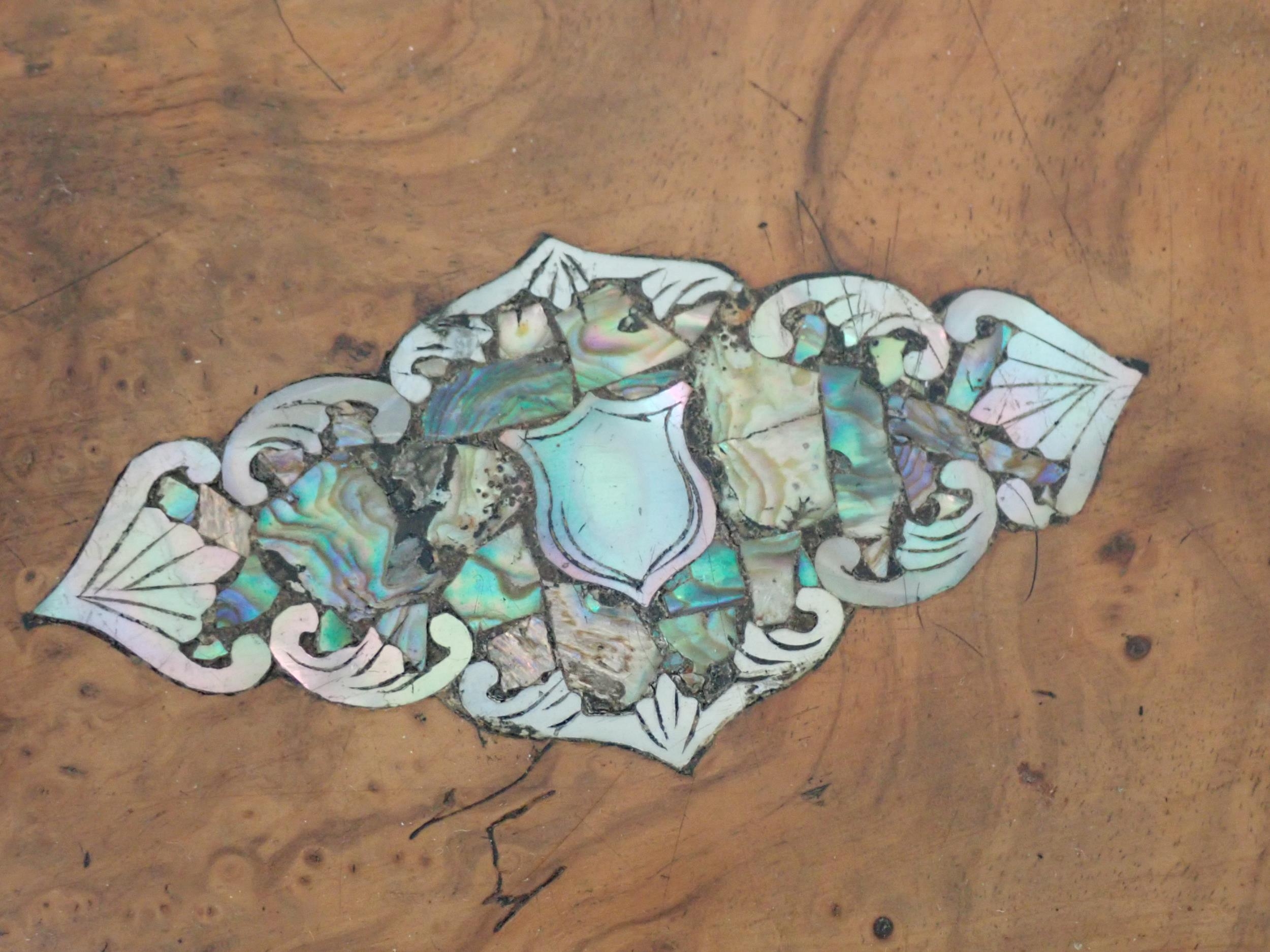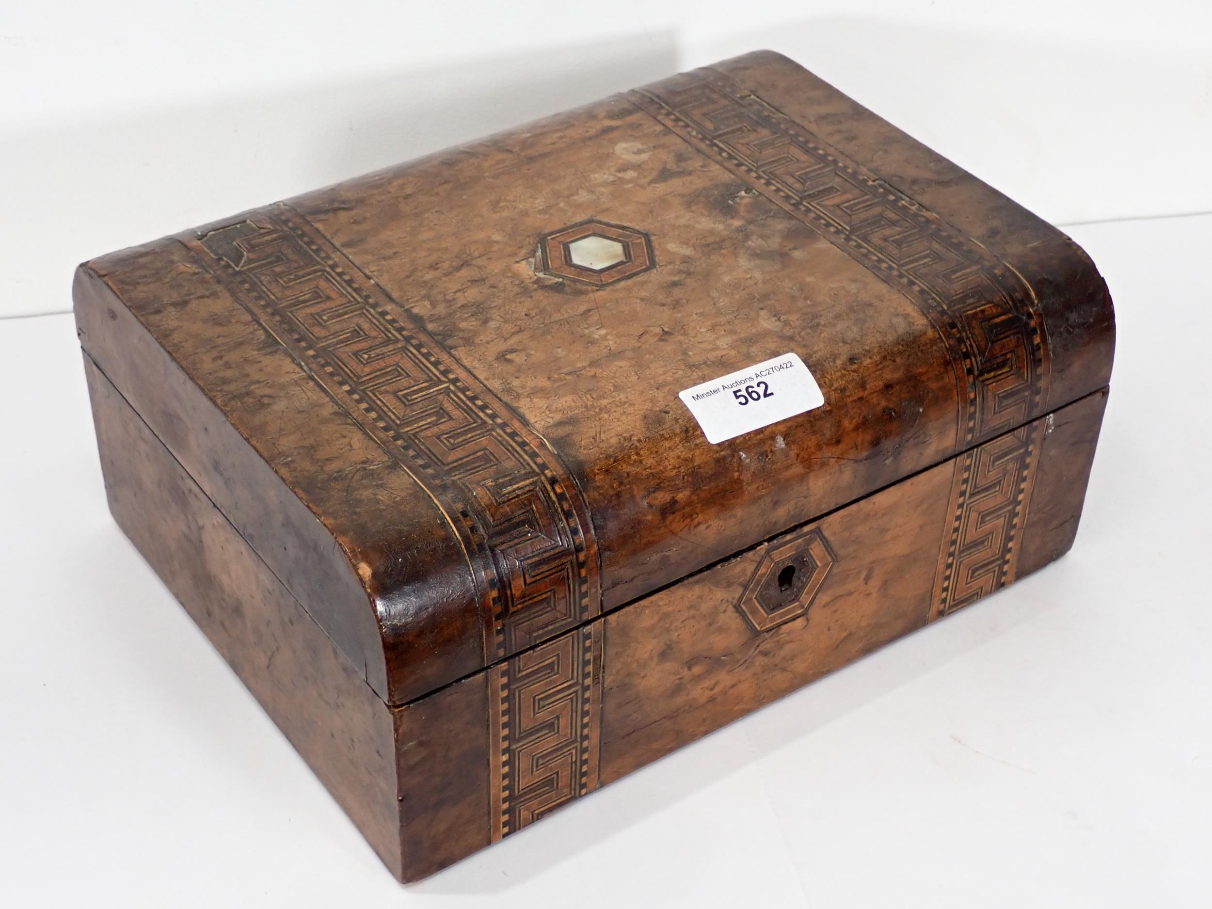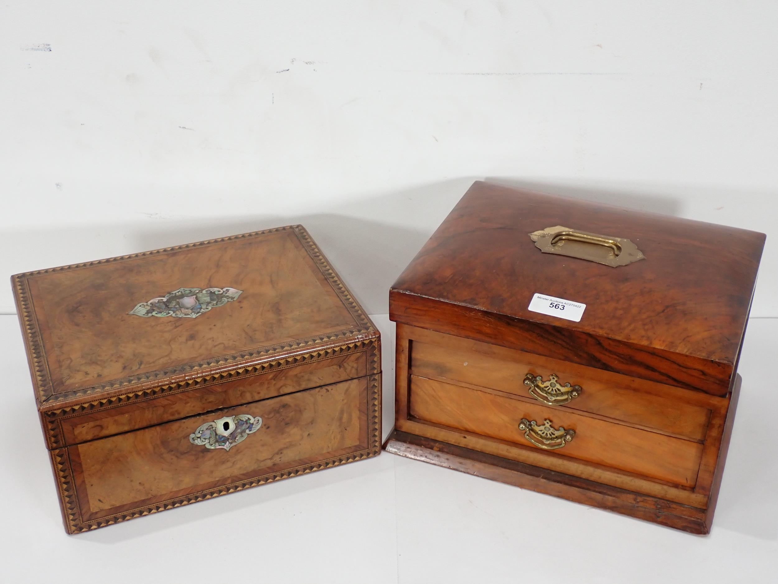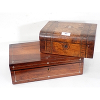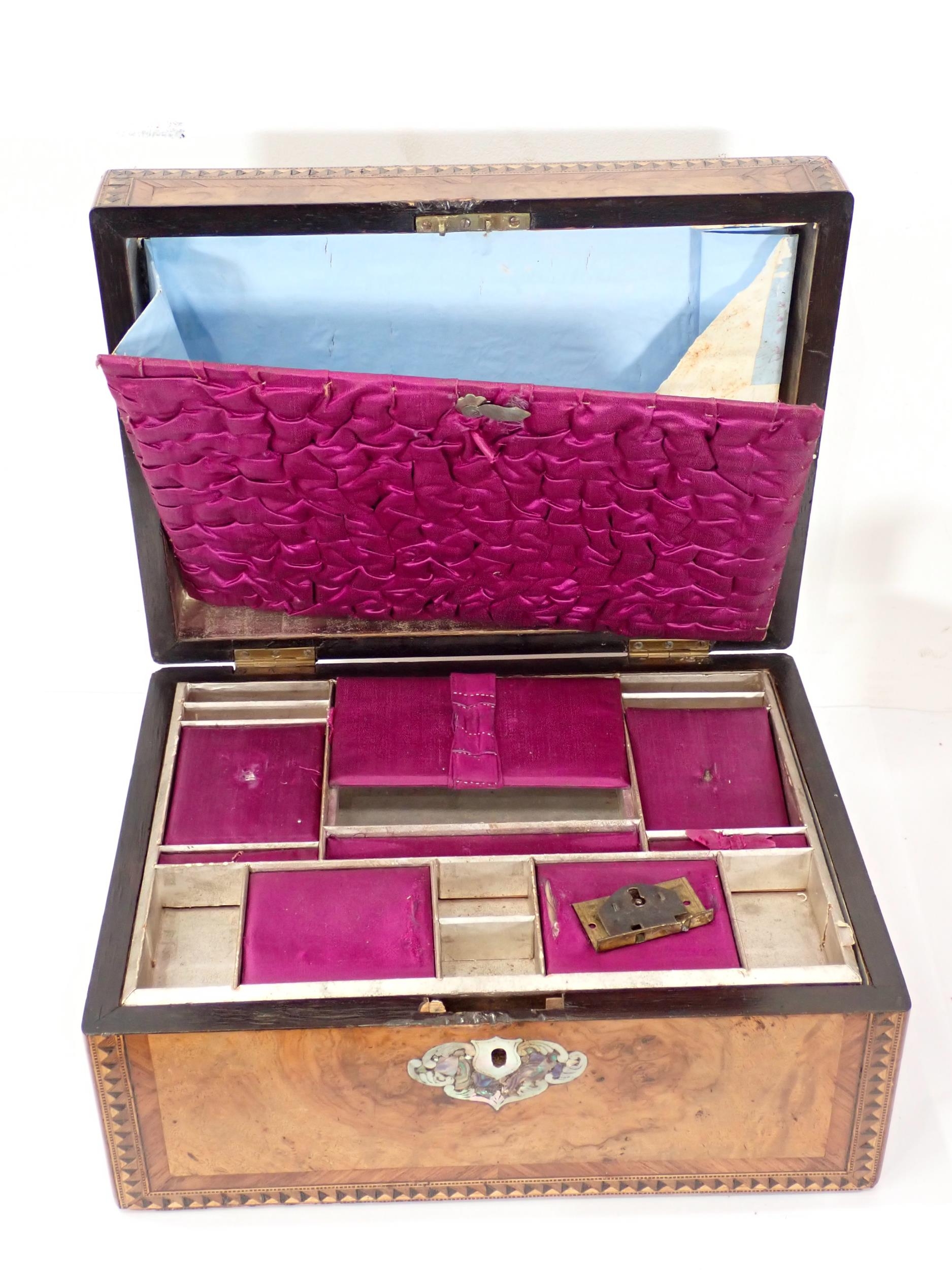 A 19th Century walnut Sewing Box fitted two drawers A/F and a 19th Century walnut and dog tooth inlaid Sewing Box