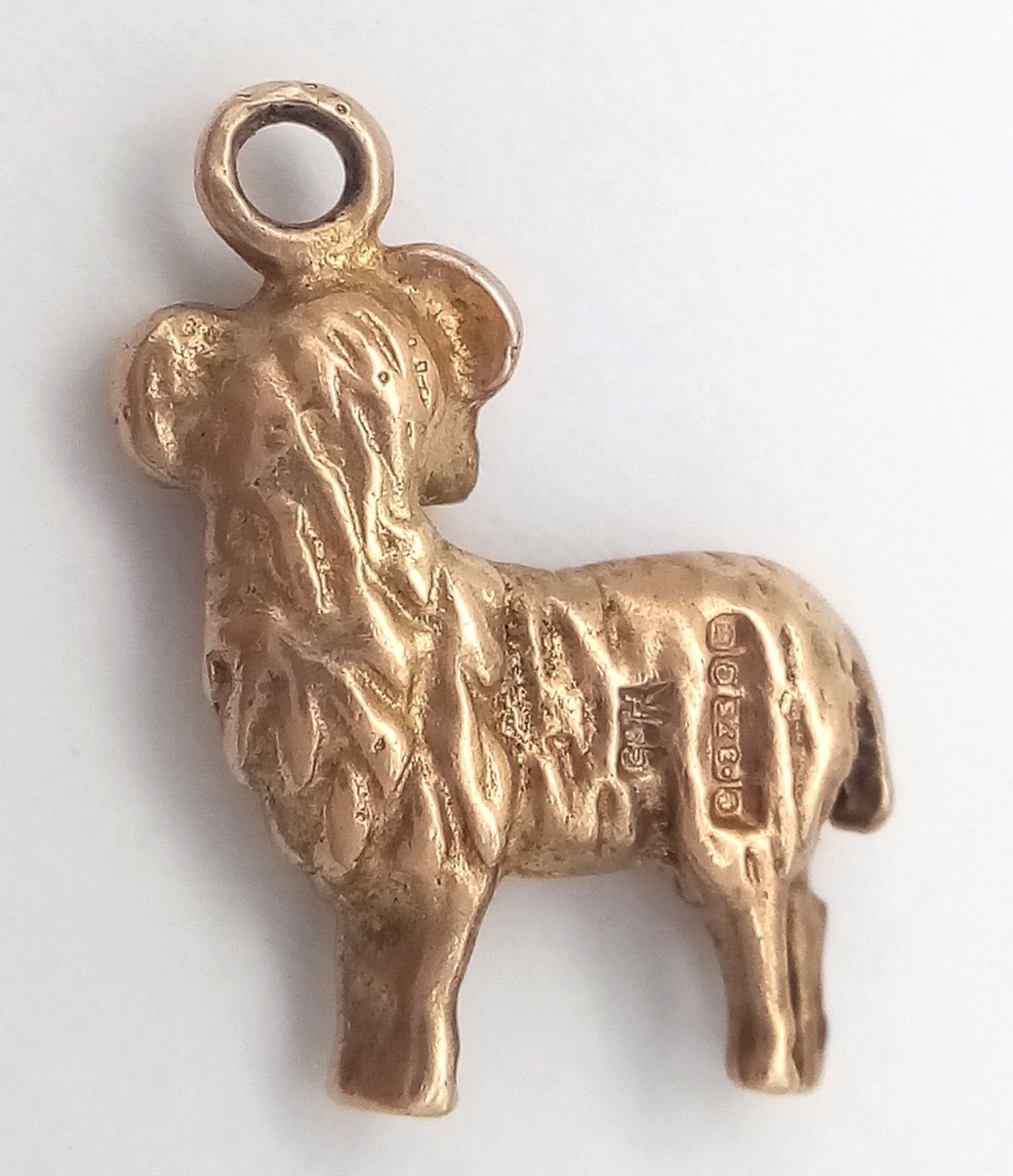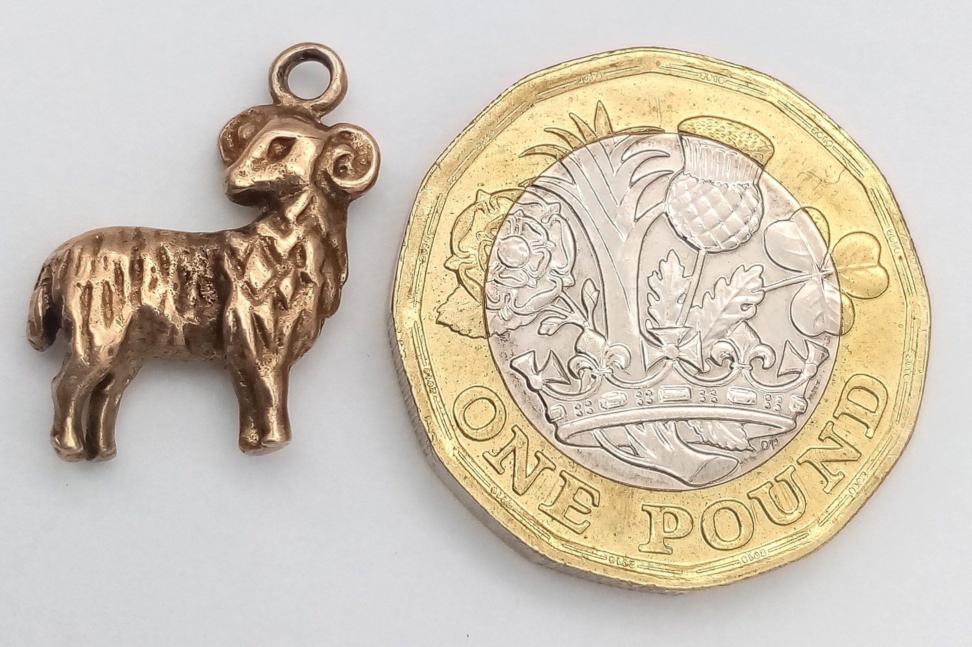 A 9K YELLOW GOLD RAM CHARM / PENDANT. 2.6G. SC6025.