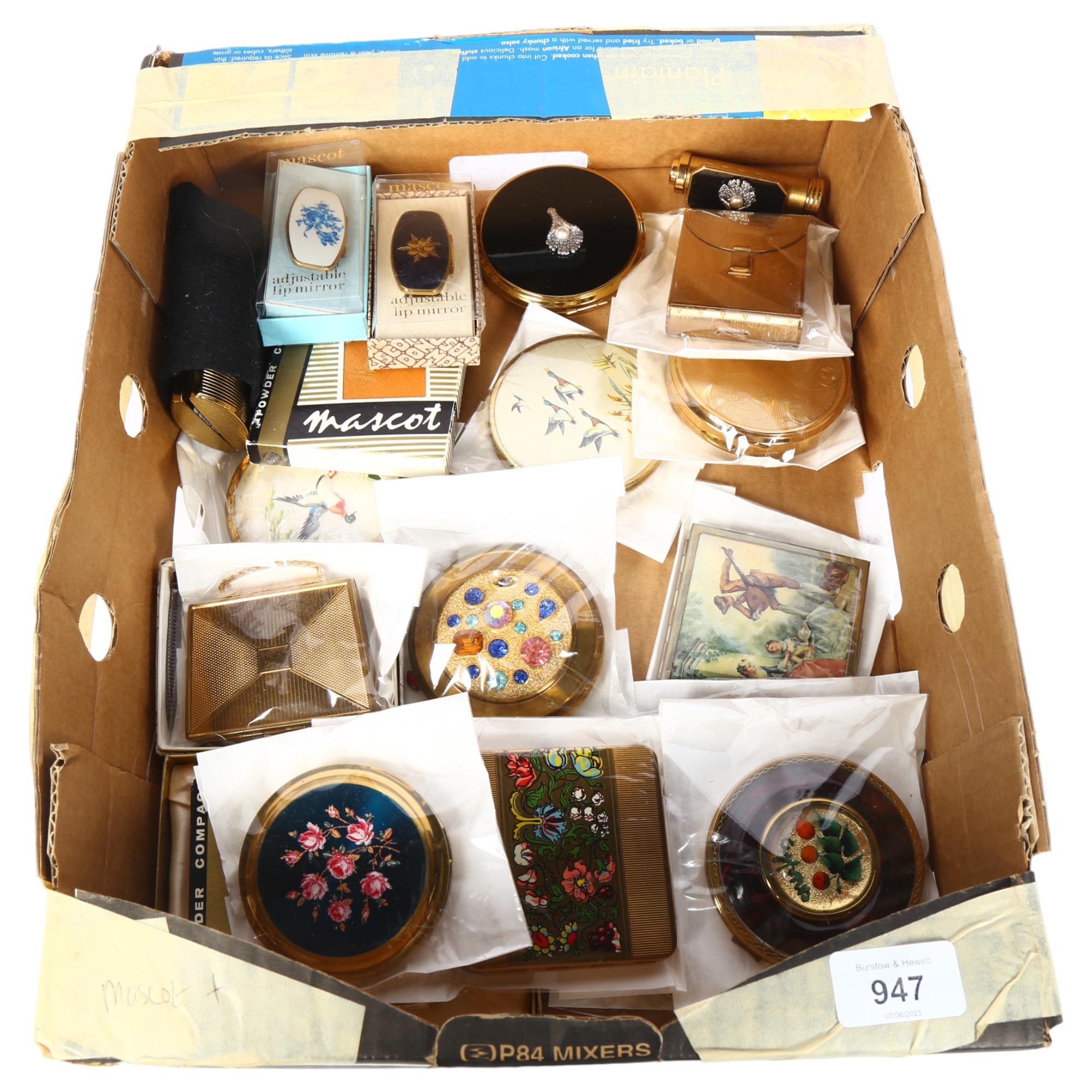 A collection of Mascot compacts, including handbag designs, lip mirrors etc