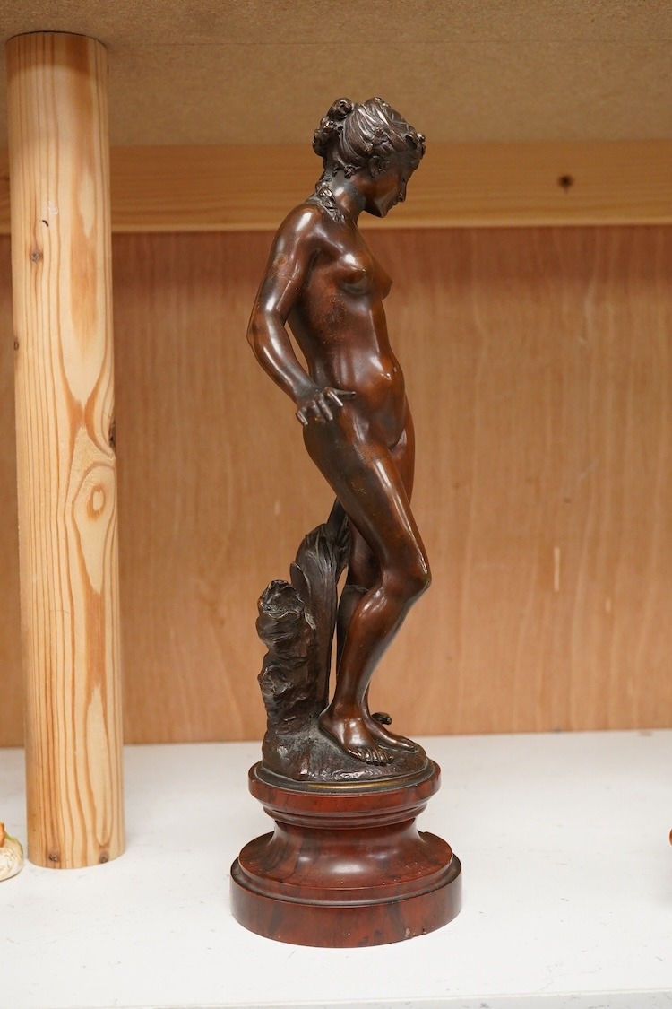 After Auguste Moreau (1834-1917), an Art Nouveau bronze study of a female nude, 30cm high