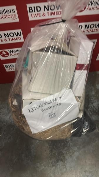 BAG OF KITCHEN AND HOUSEHOLD ITEMS