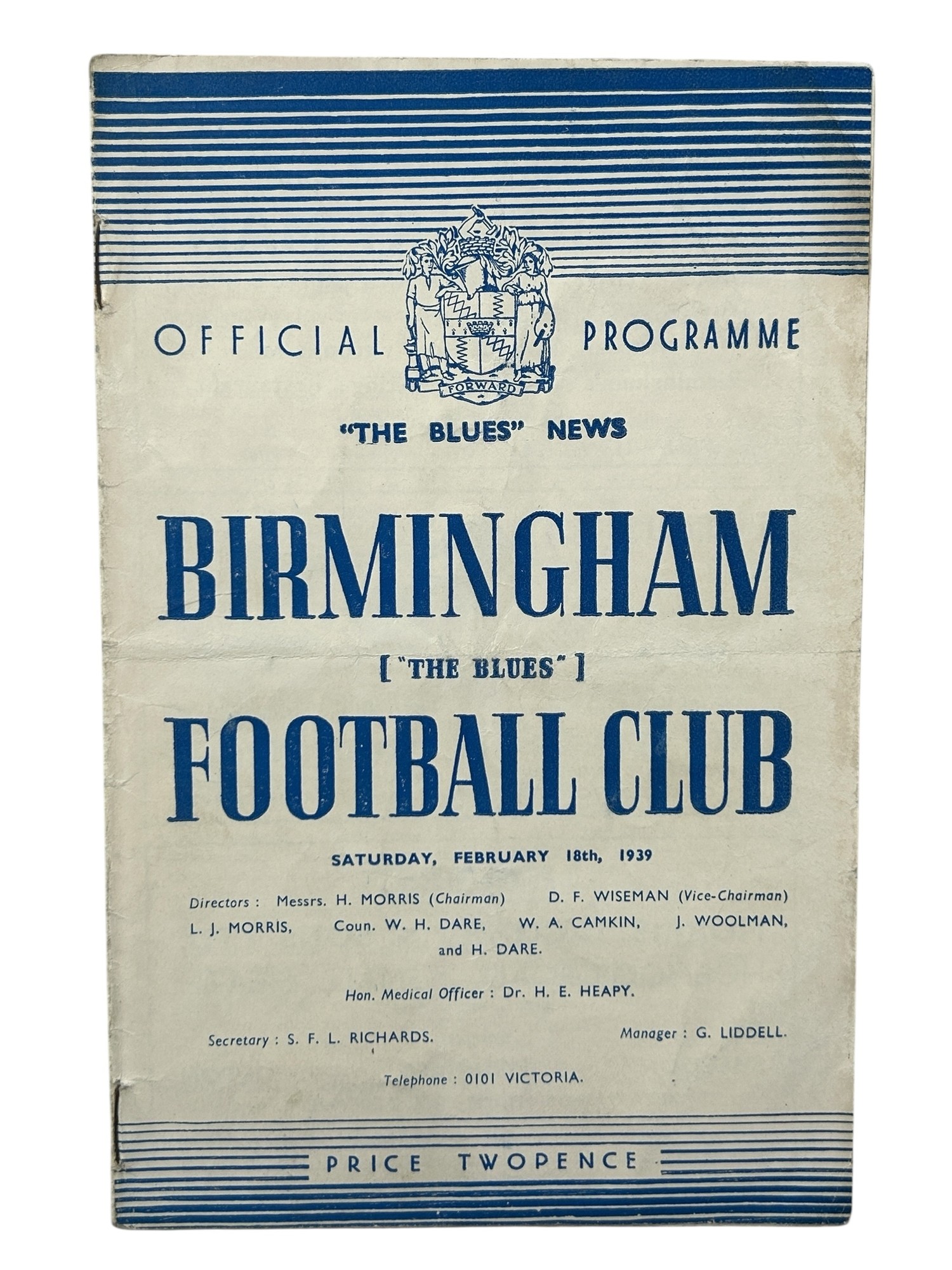 BIRMINGHAM CITY VERSUS MANCHESTER CITY 1938/39 RESERVES FOOTBALL PROGRAMME, 18/2/1939. CREASING NOTED.