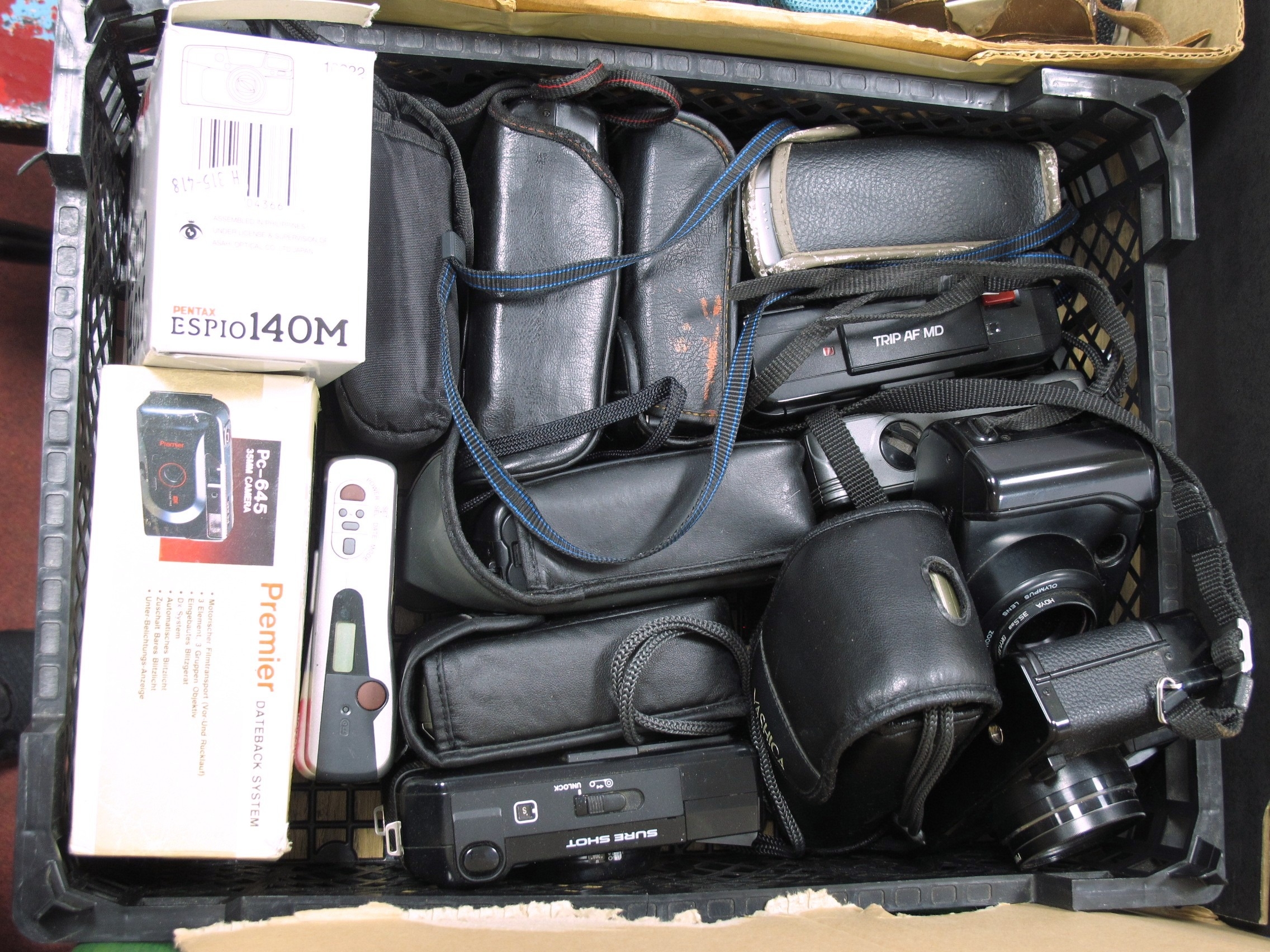 35mm Point and Shoot Cameras, to include Minolta Hi-matic AF2, Olympus trip af md, Canon az-1 zoom, Canon Sure Shot and many others:- One Basket [258124]