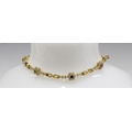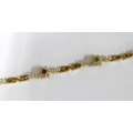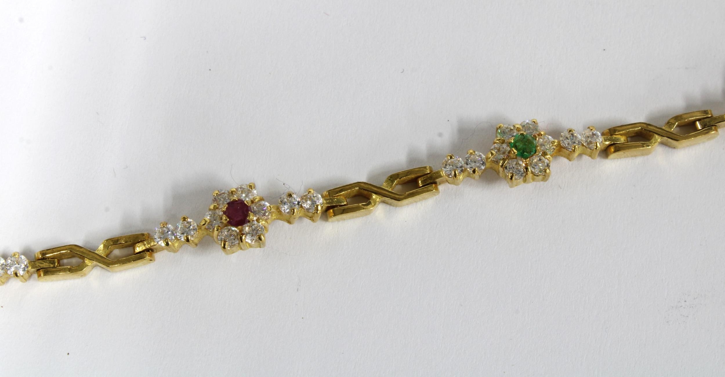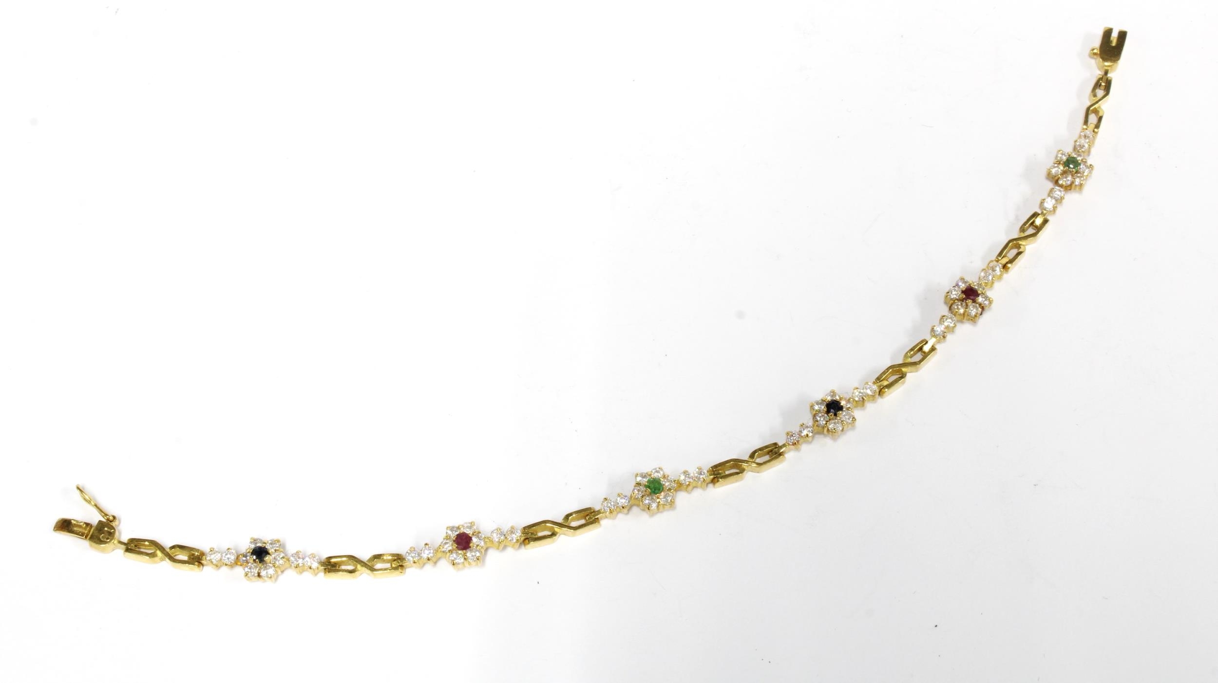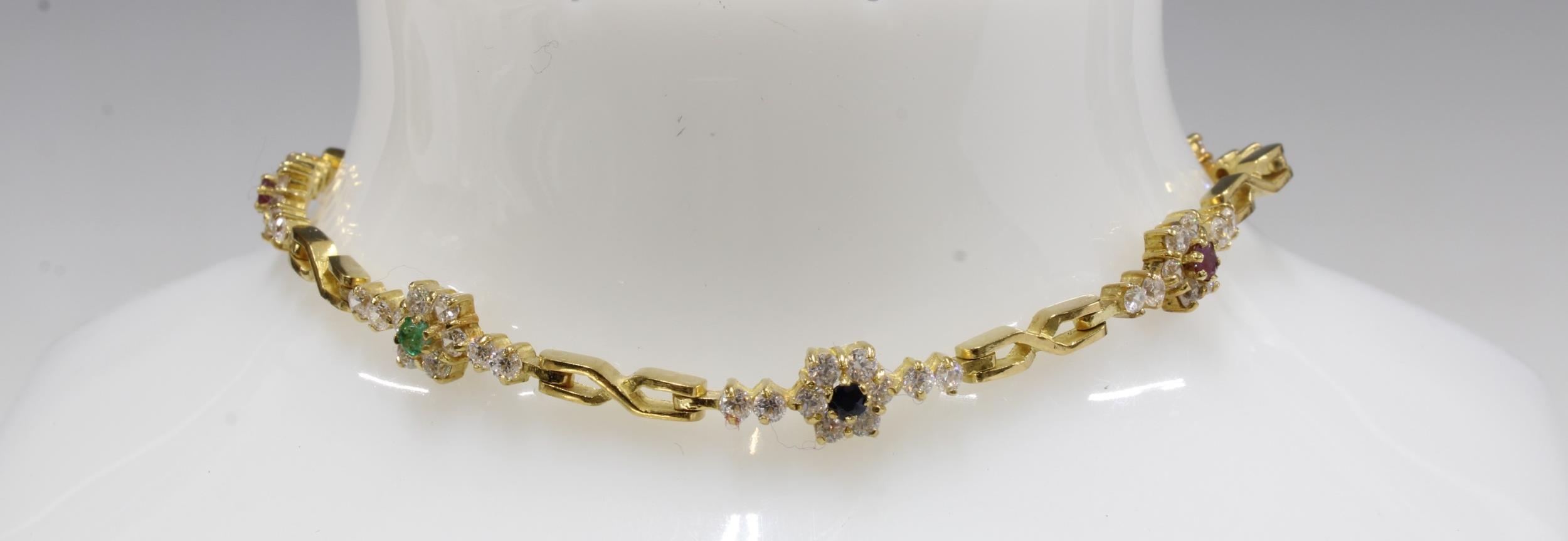 Tennis style bracelet with paste set flowerheads, set in yellow metal with ins=distinct marks on clasp