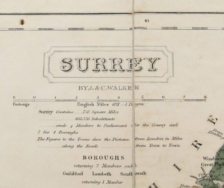 Walkers county map of Surrey, published by Longman Rees, Orme, Brown and Co, 1835