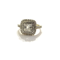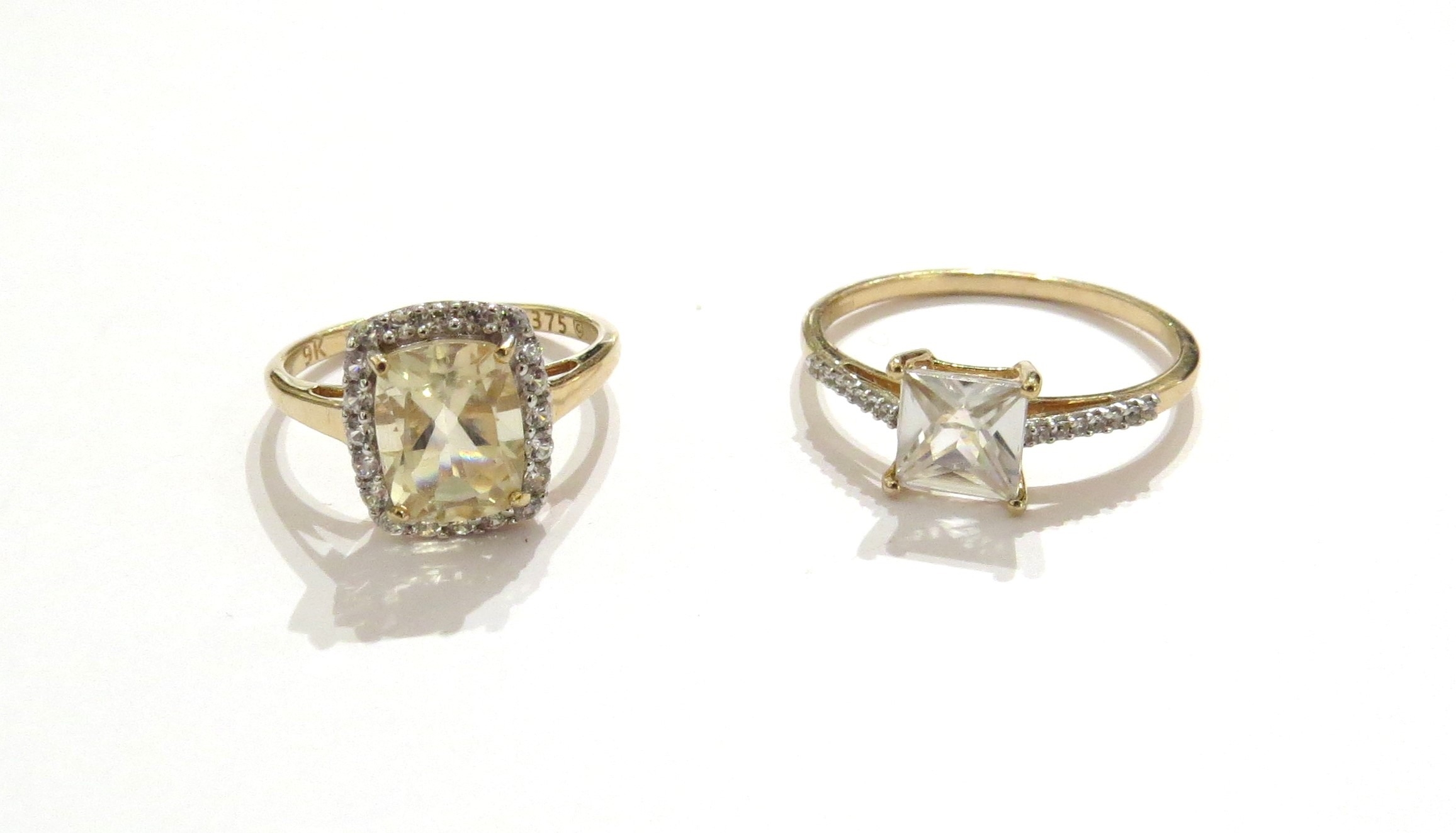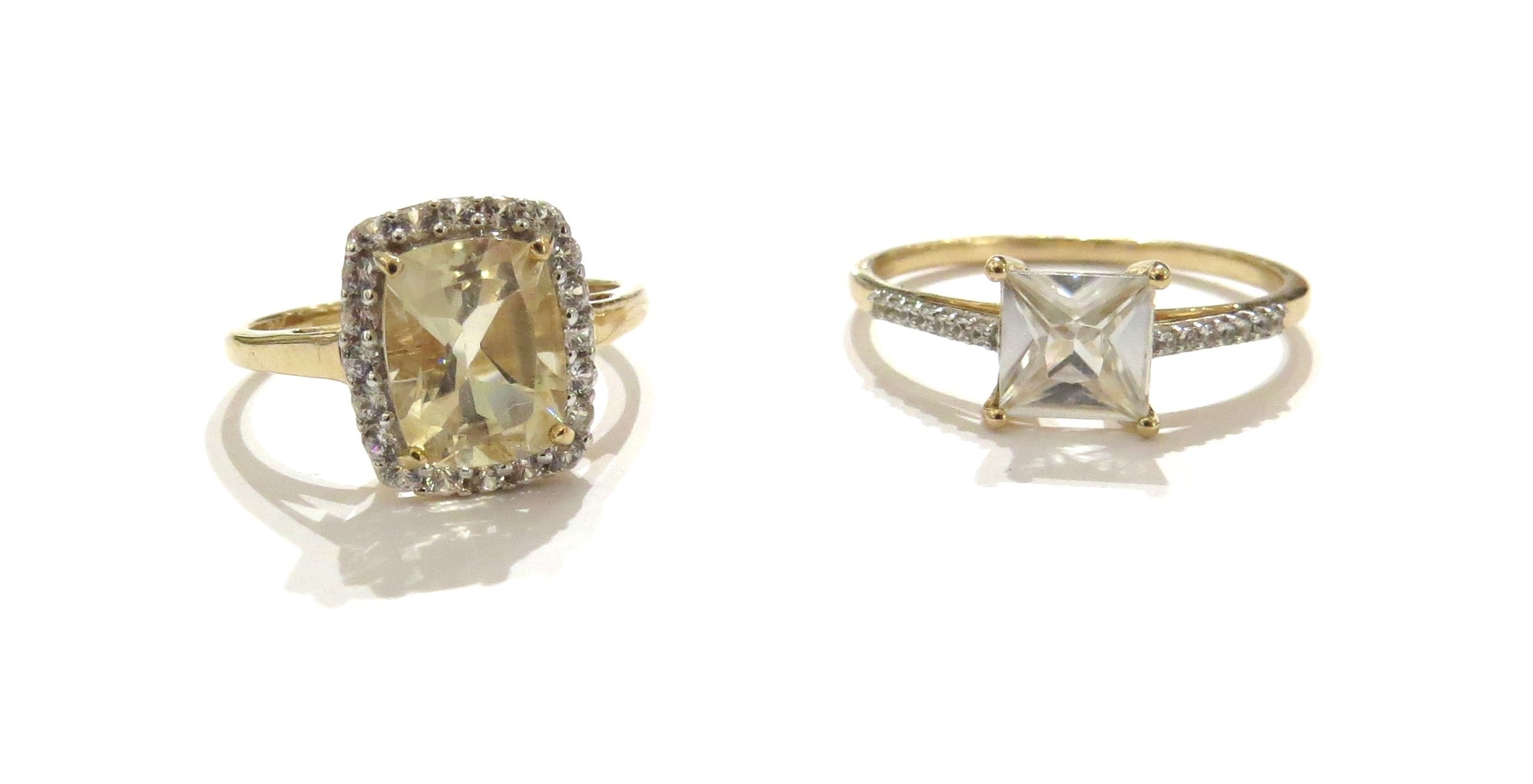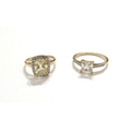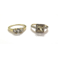 Two 9ct gold rings, White Zircon and a Serenite and White Zircon example, sizes T/U and O, 4.6g