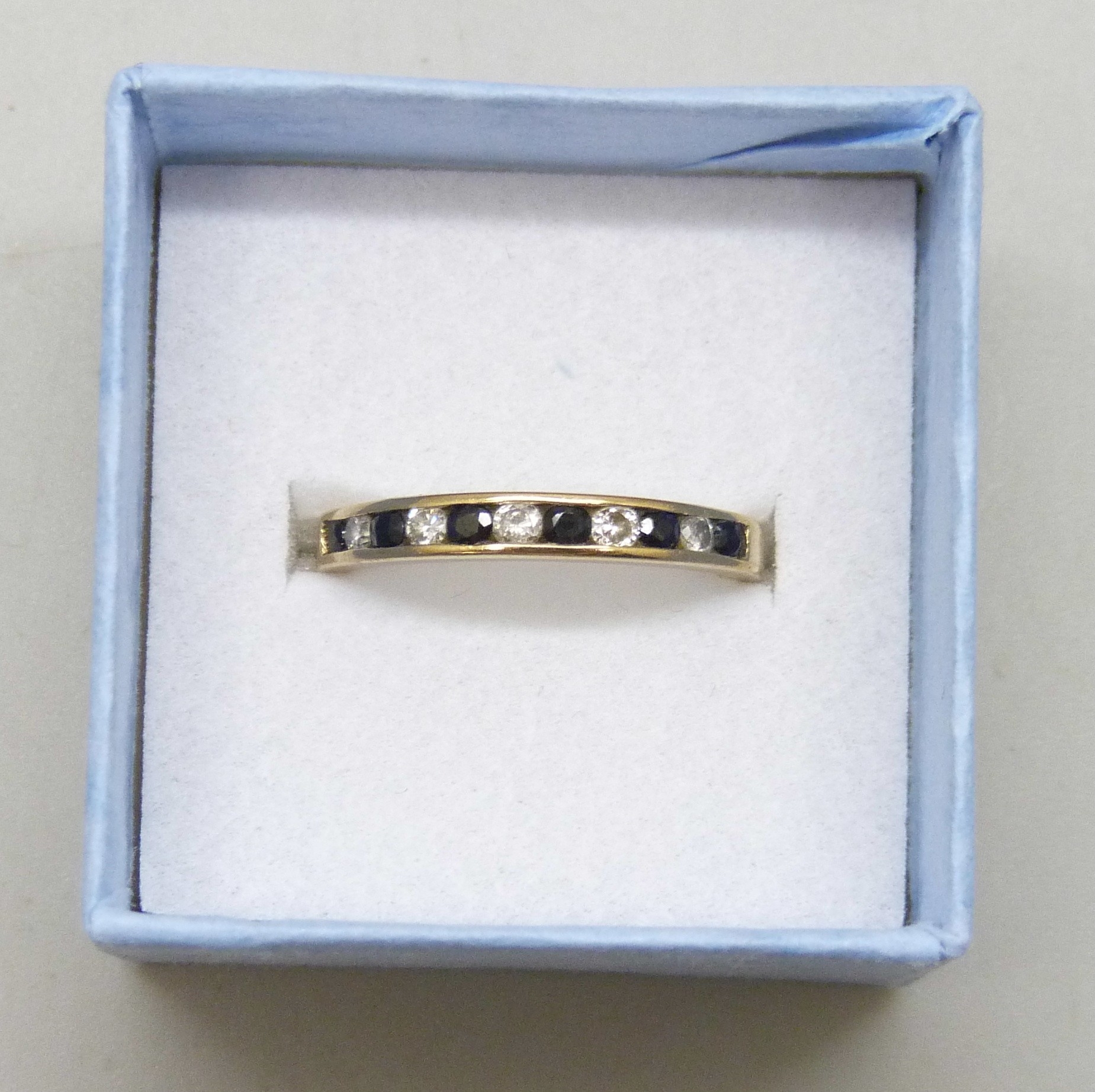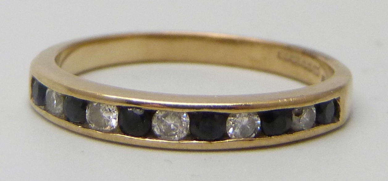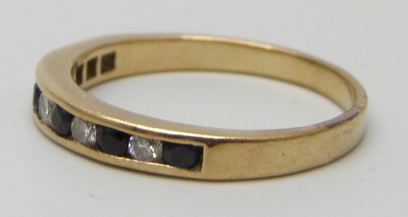 A 9ct gold, sapphire and diamond ring, 1.8g, N/O