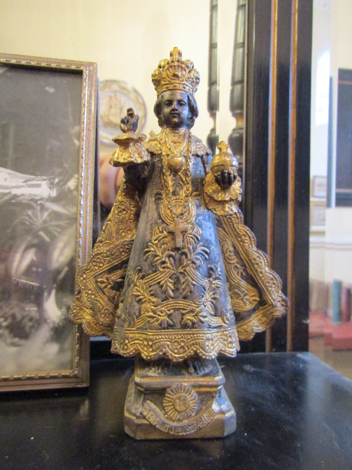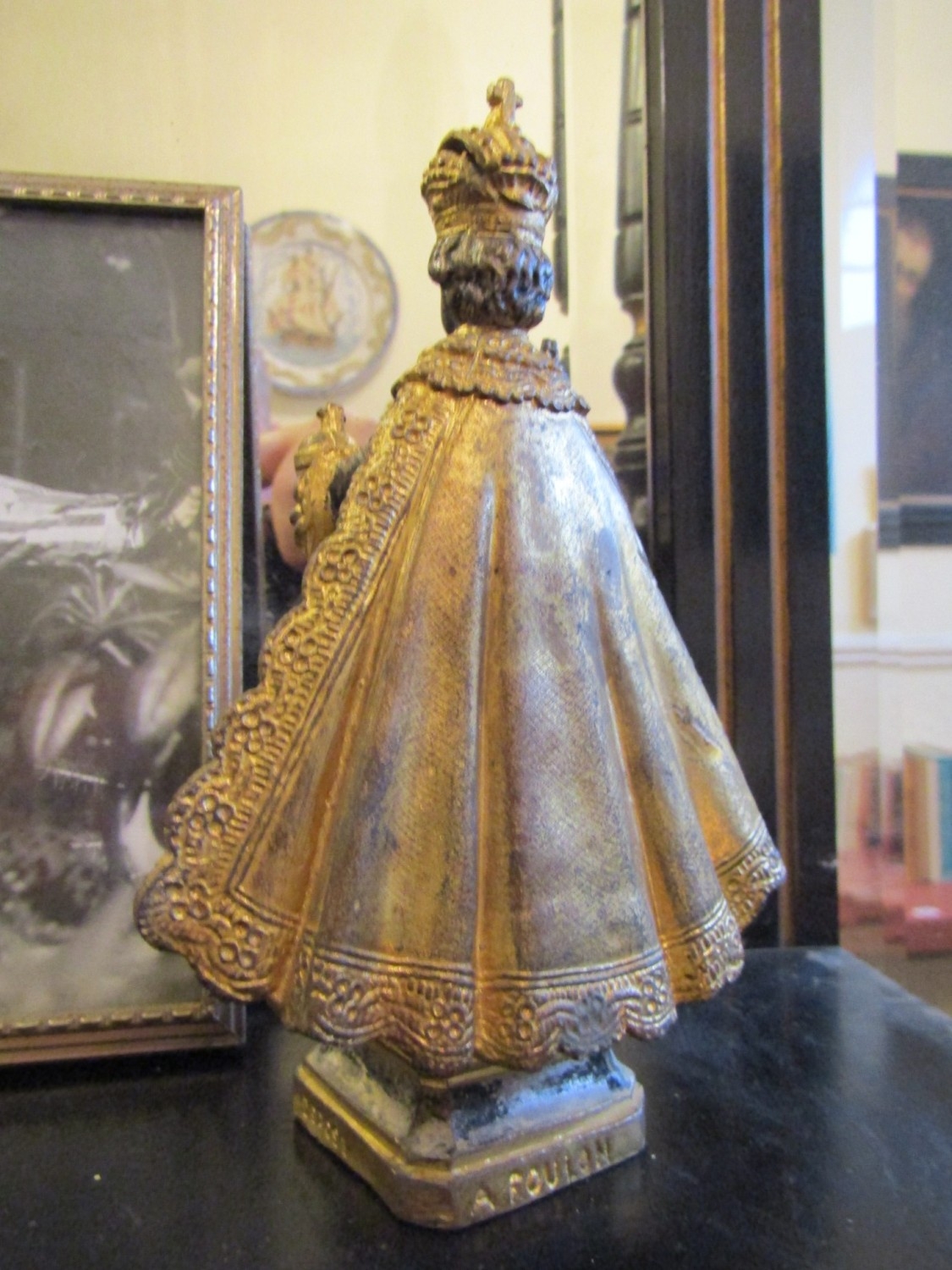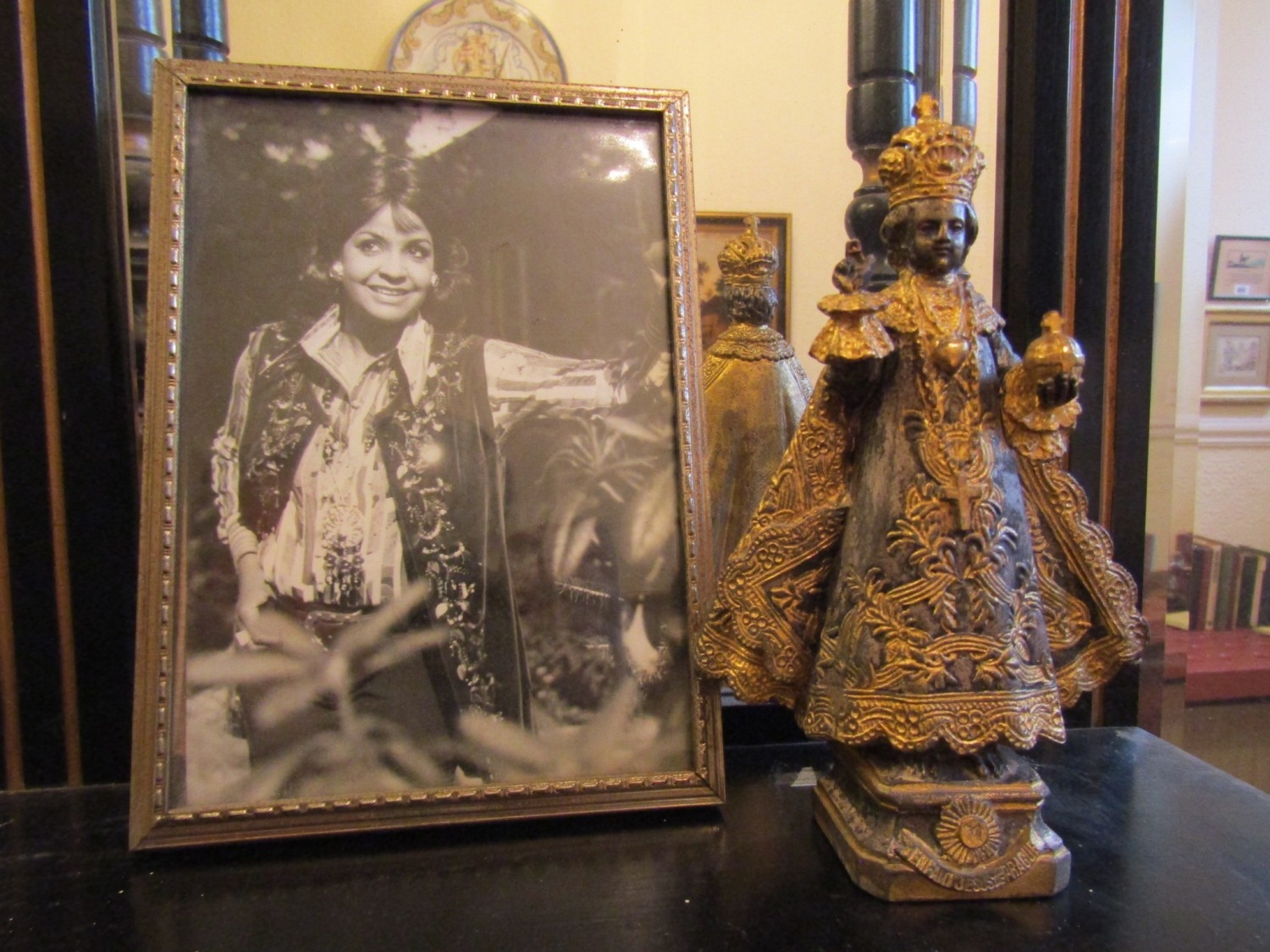 Gilded Bronze Statue with Framed Photograph of Mona Baptiste (1926-1973) Statue Approximately 5 Inches High
