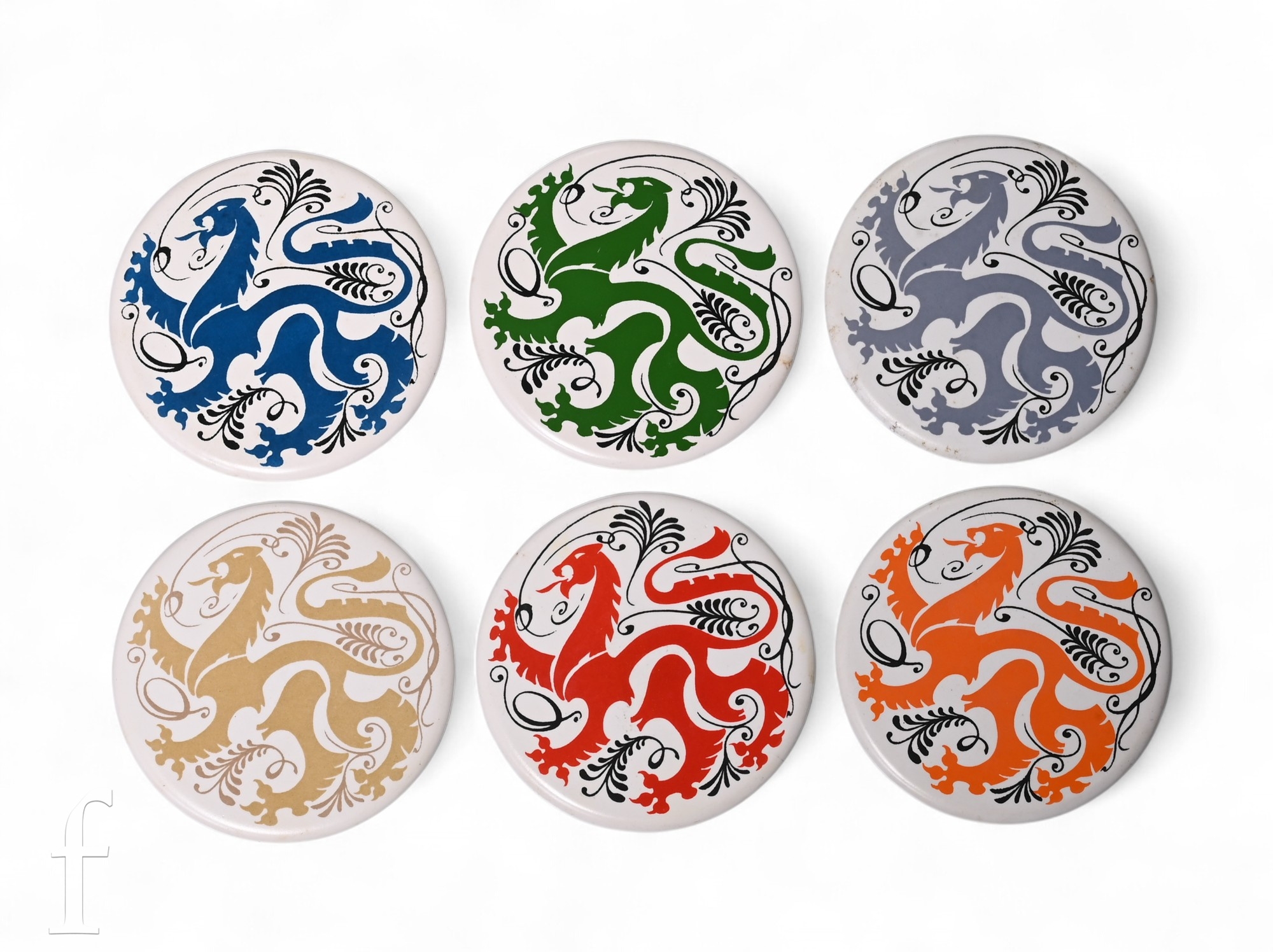 A boxed set of six 1960s Richards Tiles coasters each decorated with an image of a stylised heraldic griffin, gilt stamped to the reverse.