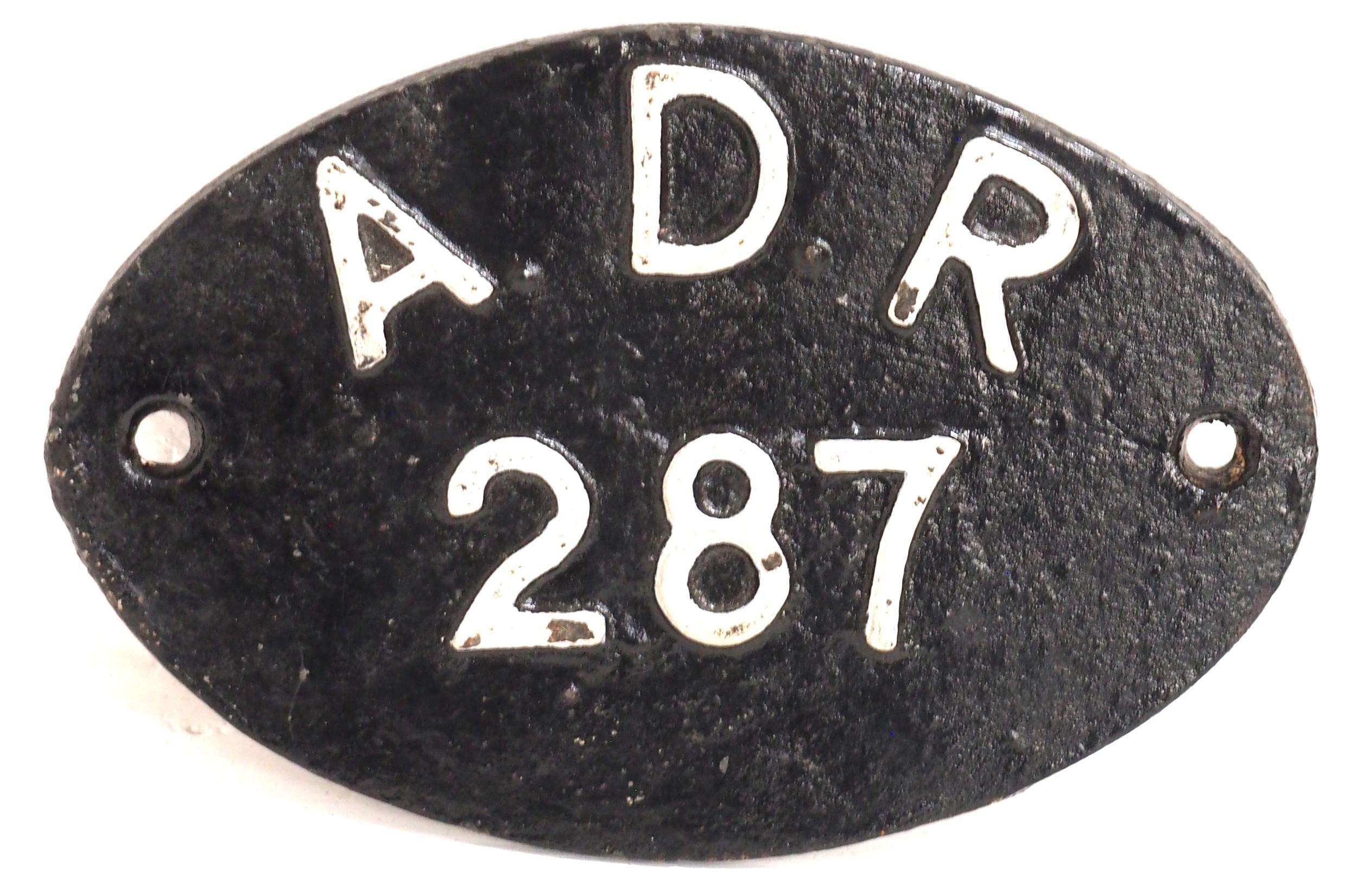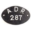 Alexandra Docks Railway cast wagonplate "287", original back. (C3) (Dispatch by Mailboxes/Collect from Banbury Depot)