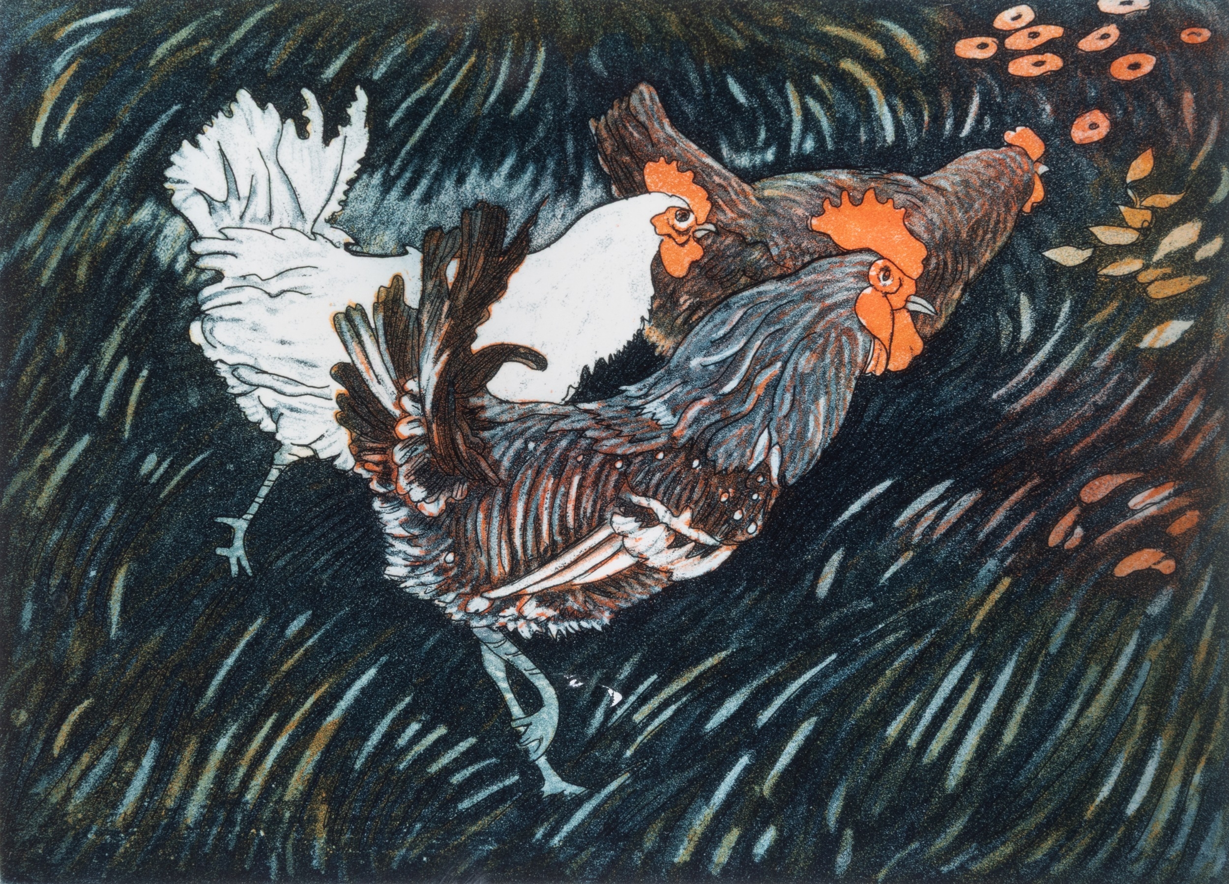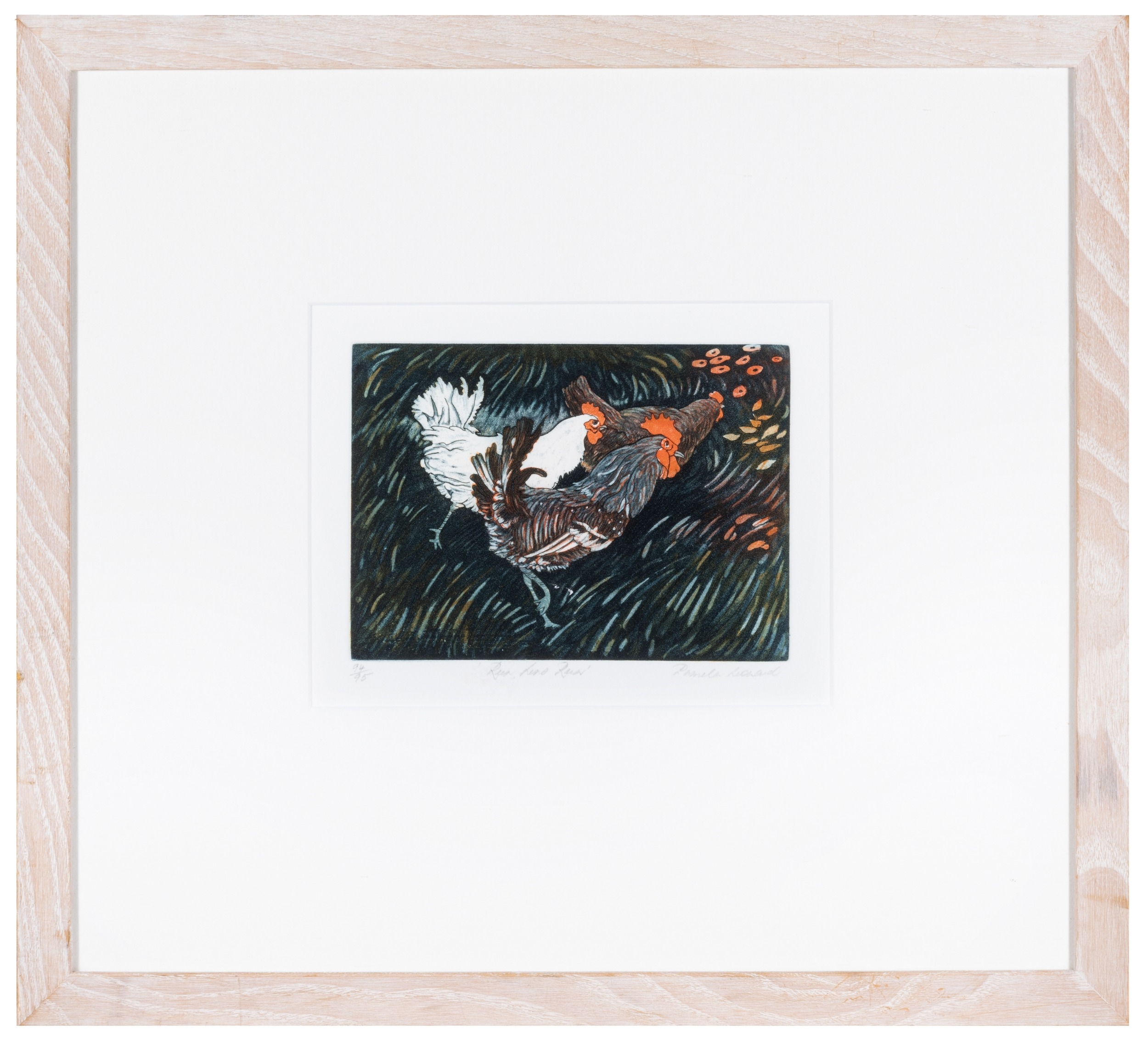 PAMELA LEONARD (B.1940) Run, hens run Etching, 14 x 19cm Signed, inscribed with title and numbered 94/95