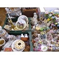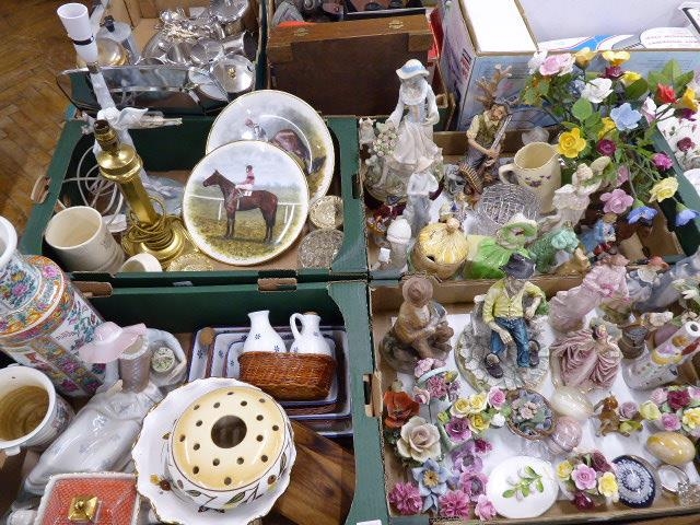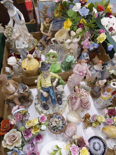 4 Boxes china - Lladro lamp, Nao girl (both A/F) capodimonte, vases, Wedgwood Wiggins box, ceramic flowers
