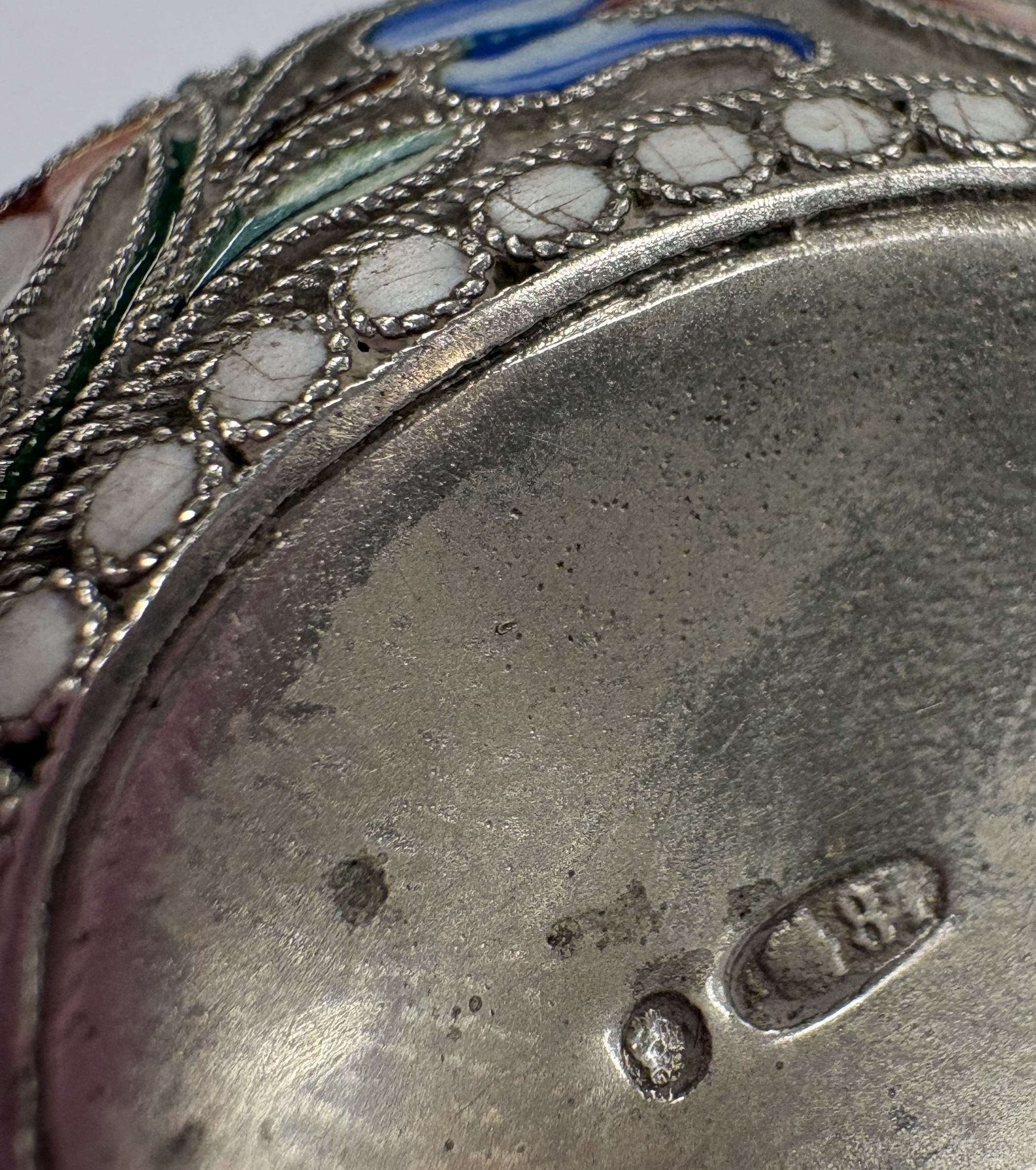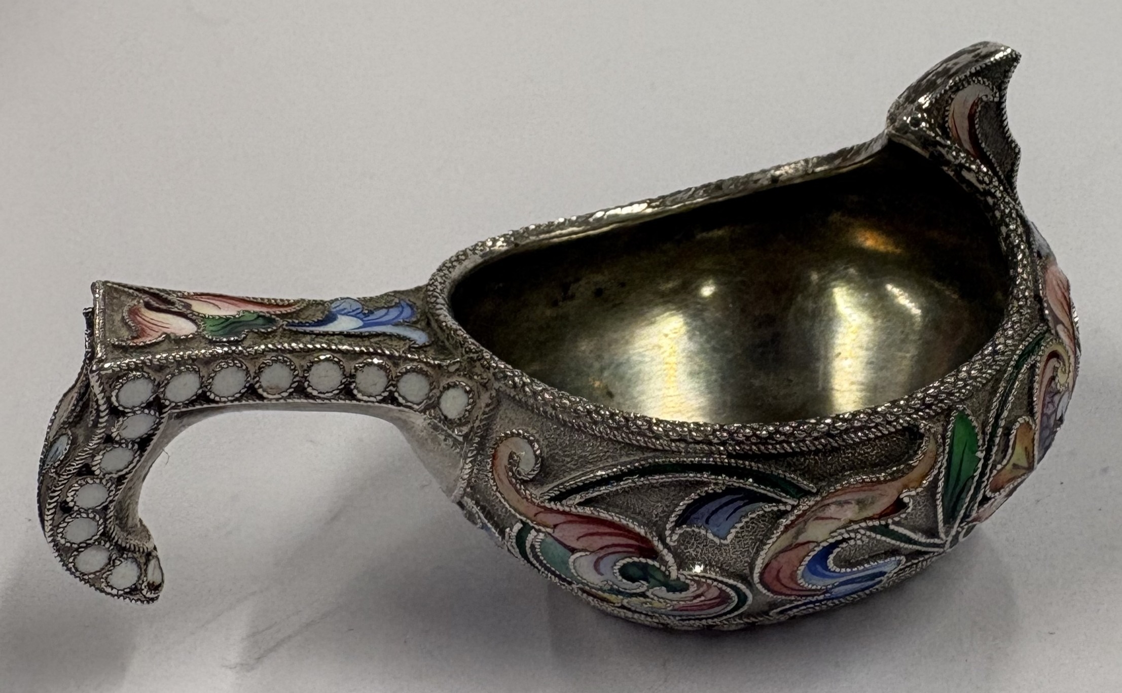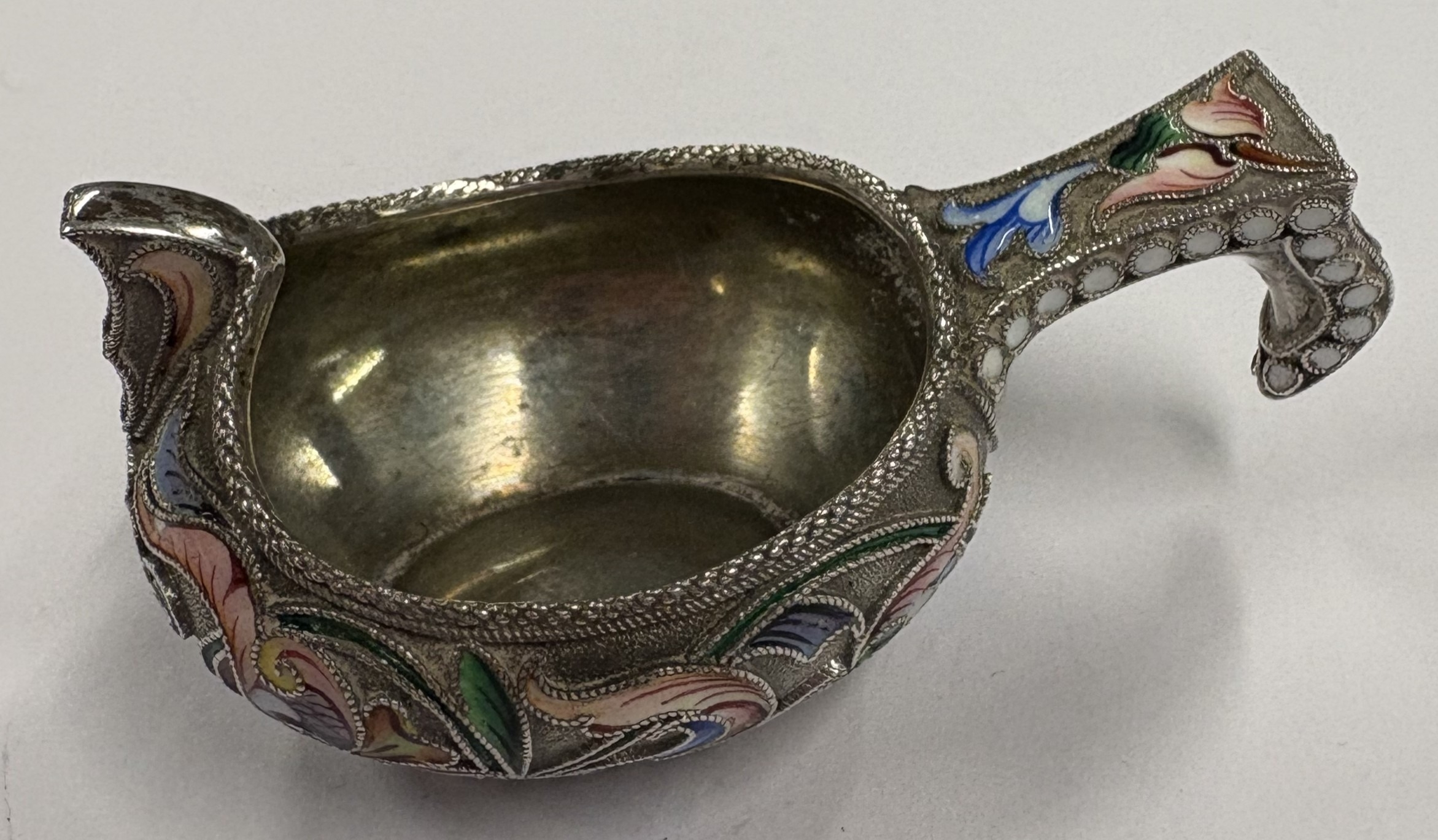 A 19th Century / early 20th Century Russian silver and enamelled kovsh. Marked to base. Approx. 40 grams. Est. £600 - £800.
