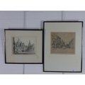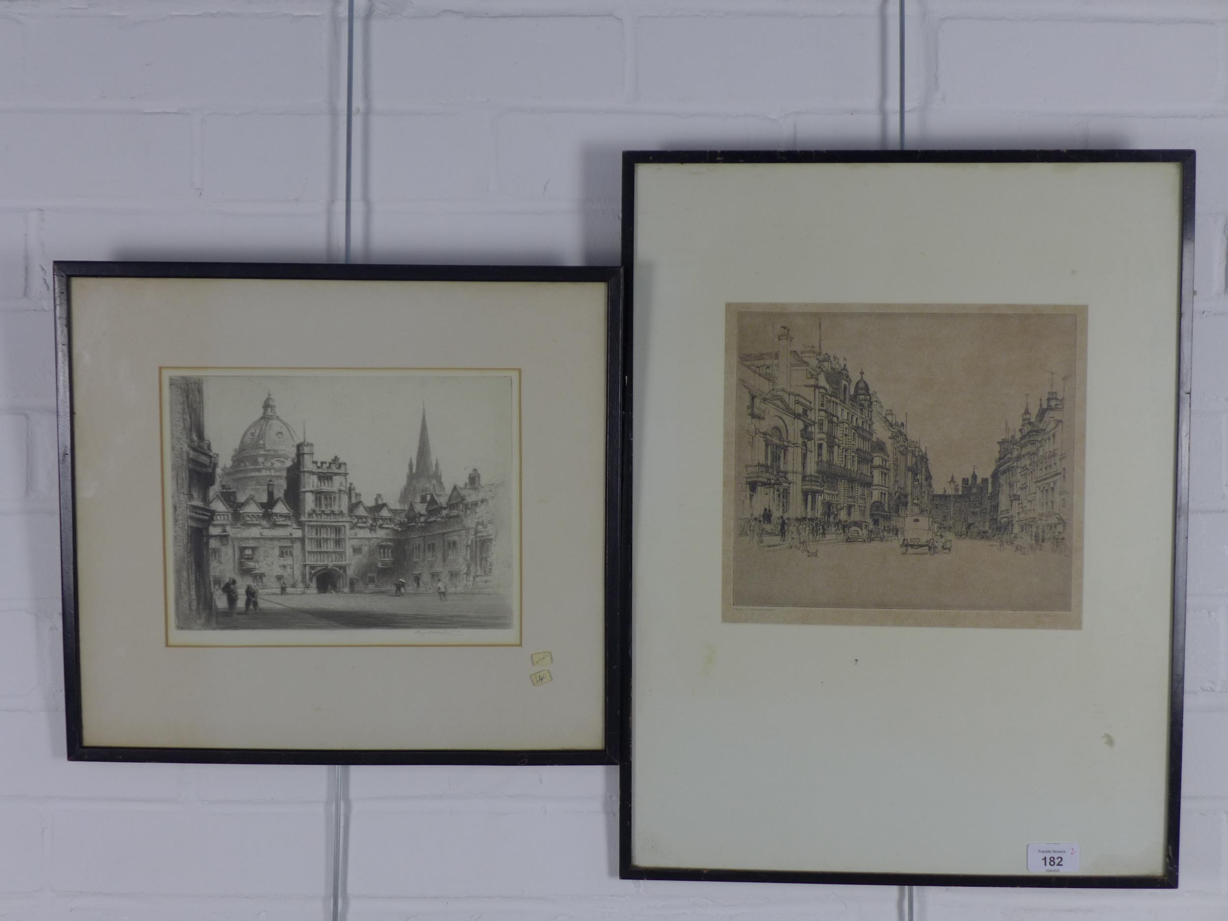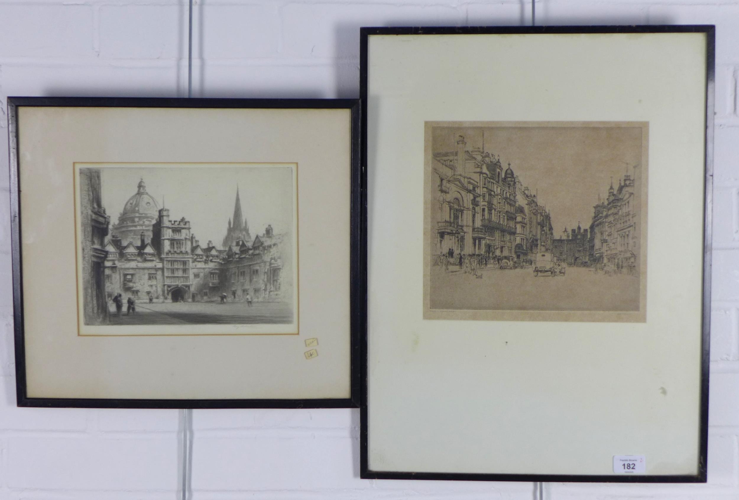 FREDERICK RICHARDS (1887-1932). Boodles to St. James's Palace, etching and another, both framed under glass, (2)