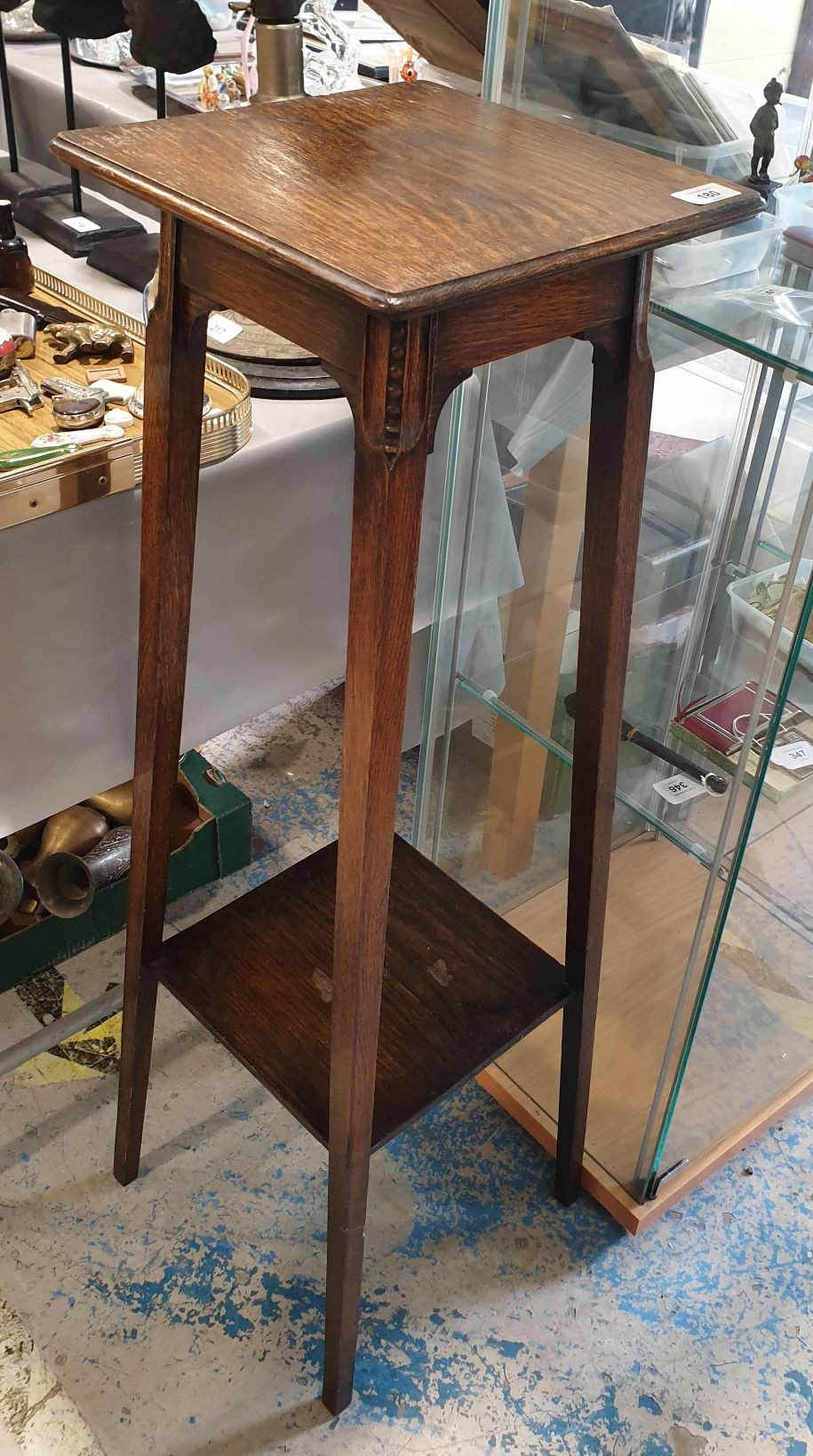 An early 20th century oak plant stand, height 37". No shipping. Arrange collection or your own packer and shipper please.