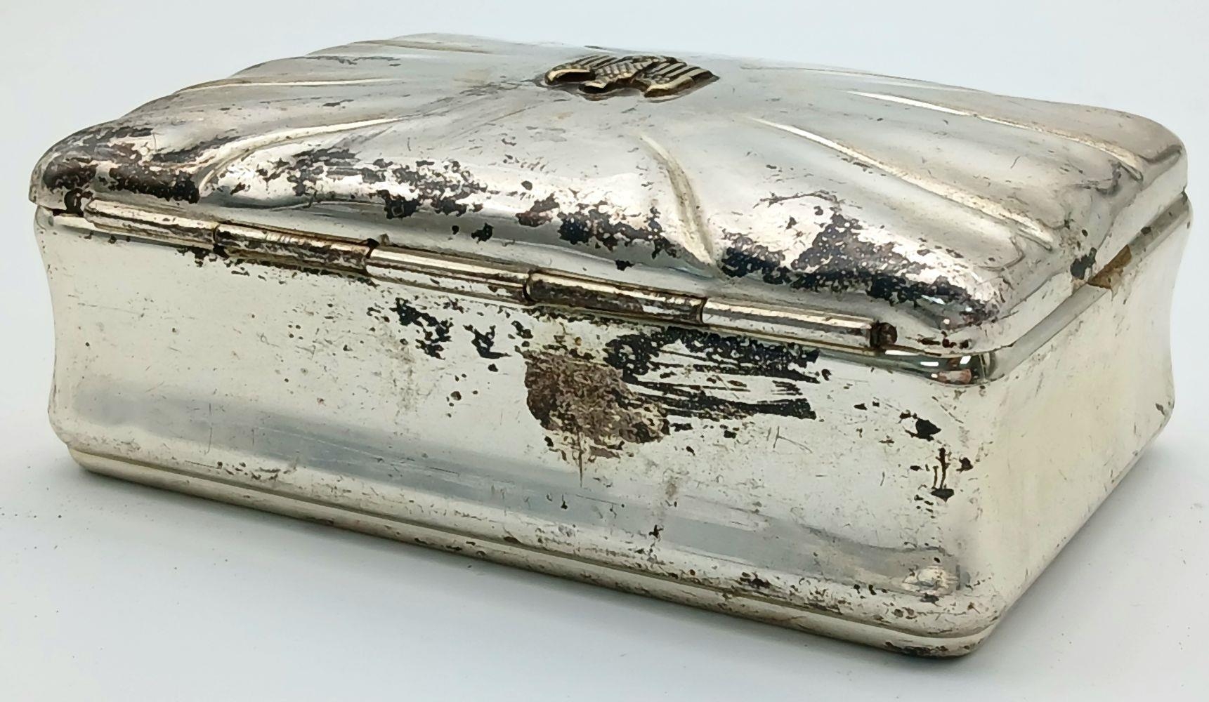 A WW2 German Heer (Army) Silver Plated Trinket Box, dimensions 13cm x 8cm x 5cm.