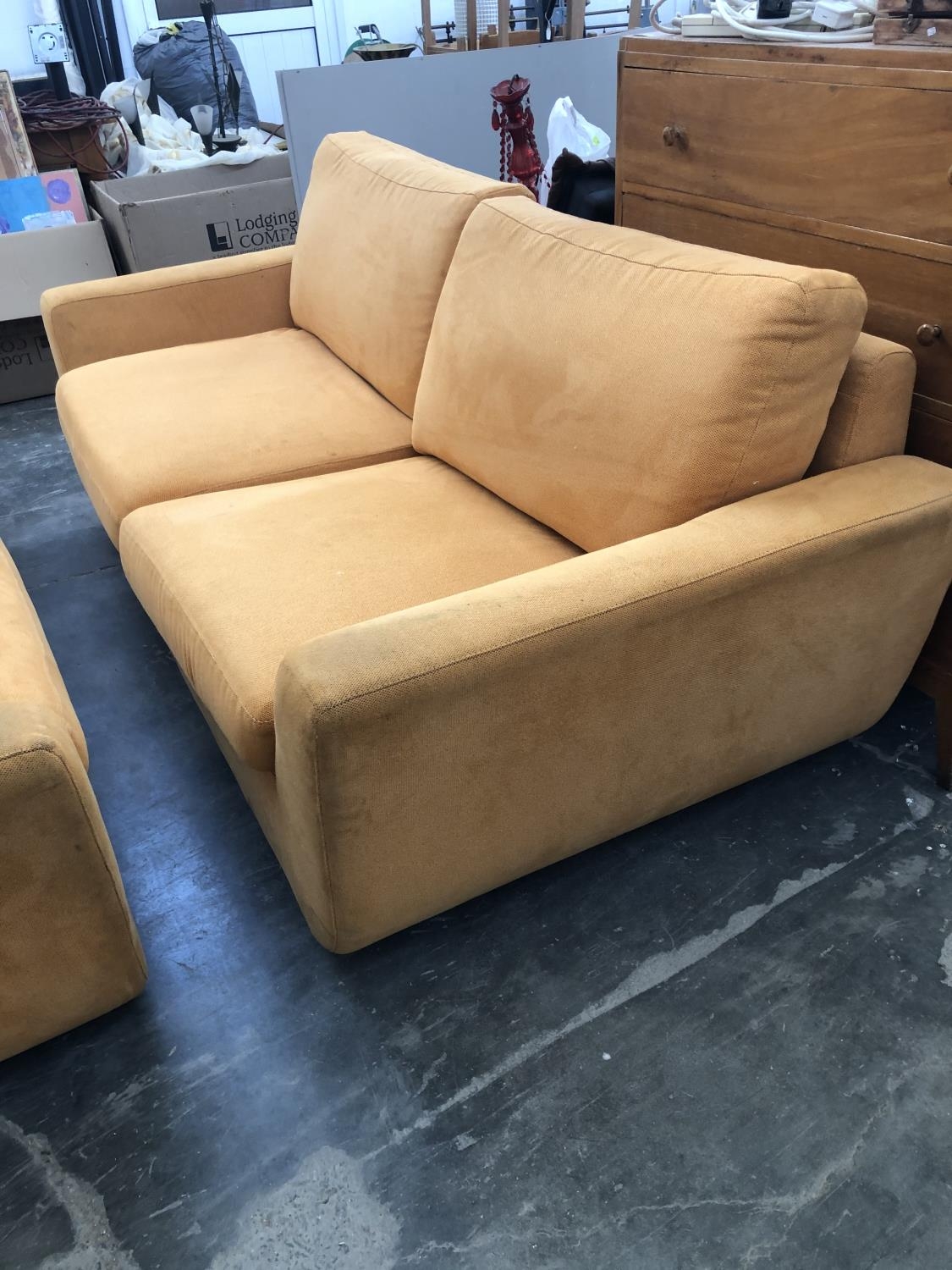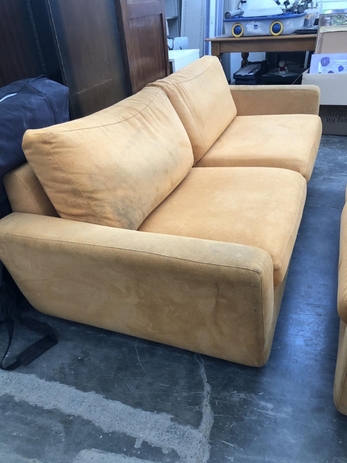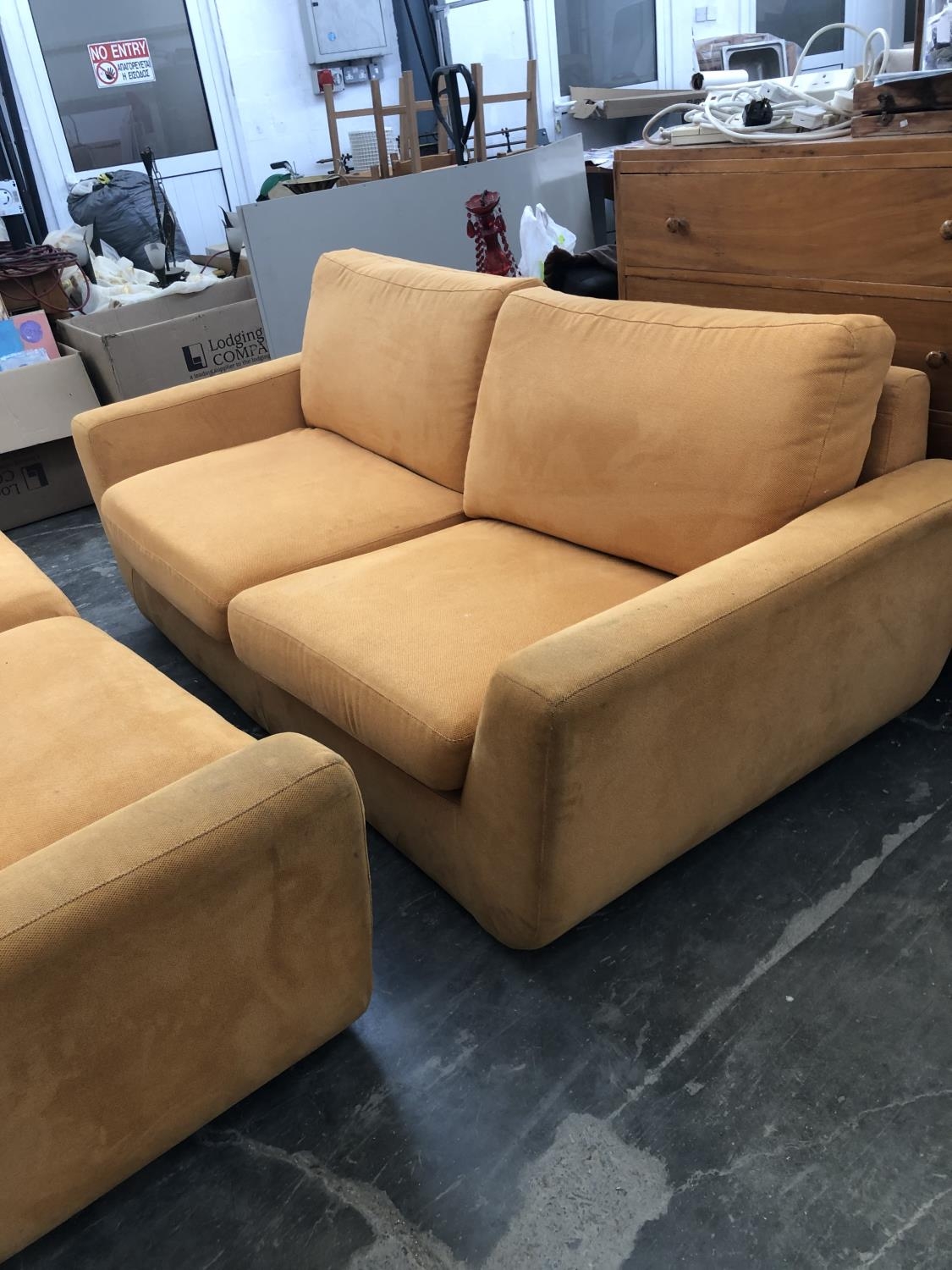 3-Seat and 2-Seat Sofas Upholstered in Orange Fabric (Needing Cleaning)