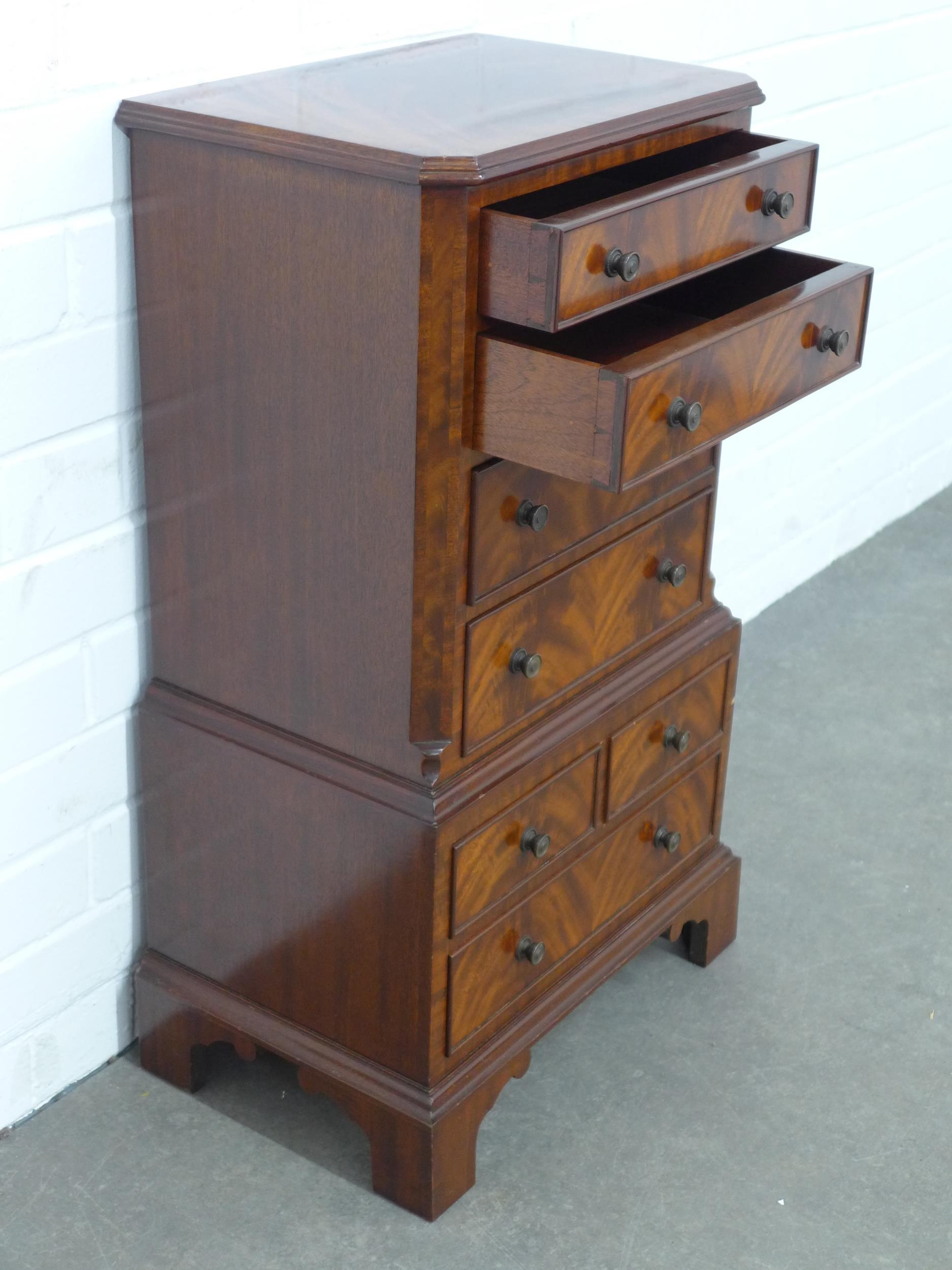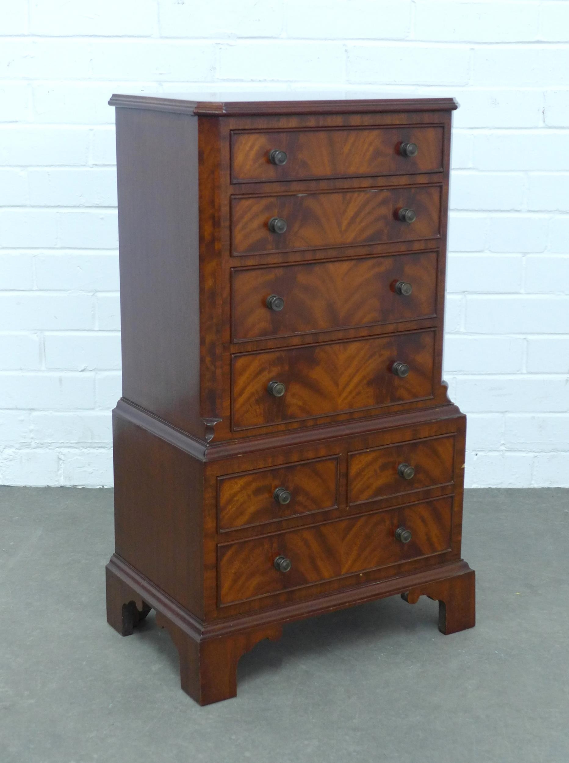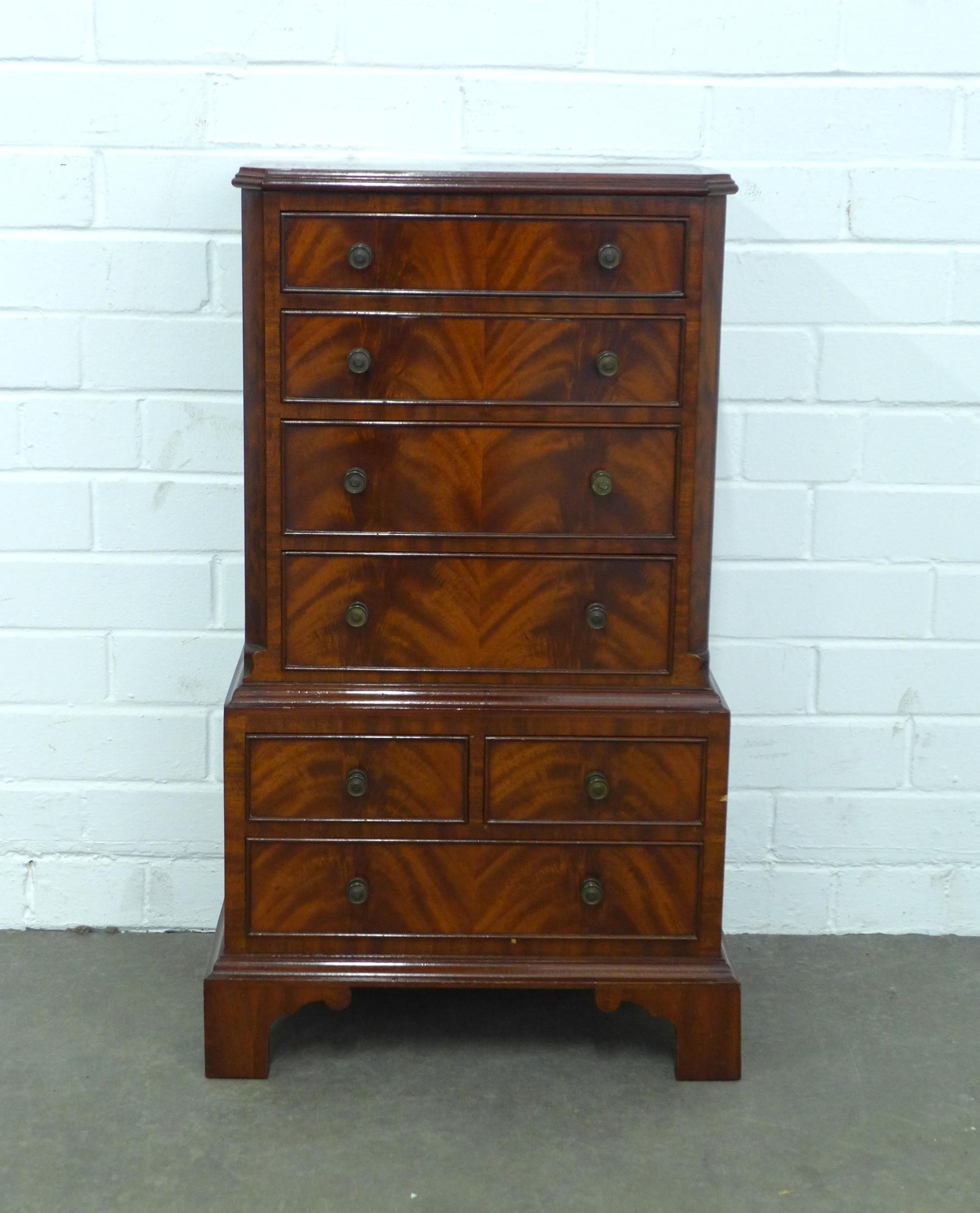 A mahogany bedside in the form of a diminutive chest on chest, 46 x 76 x 30cm.