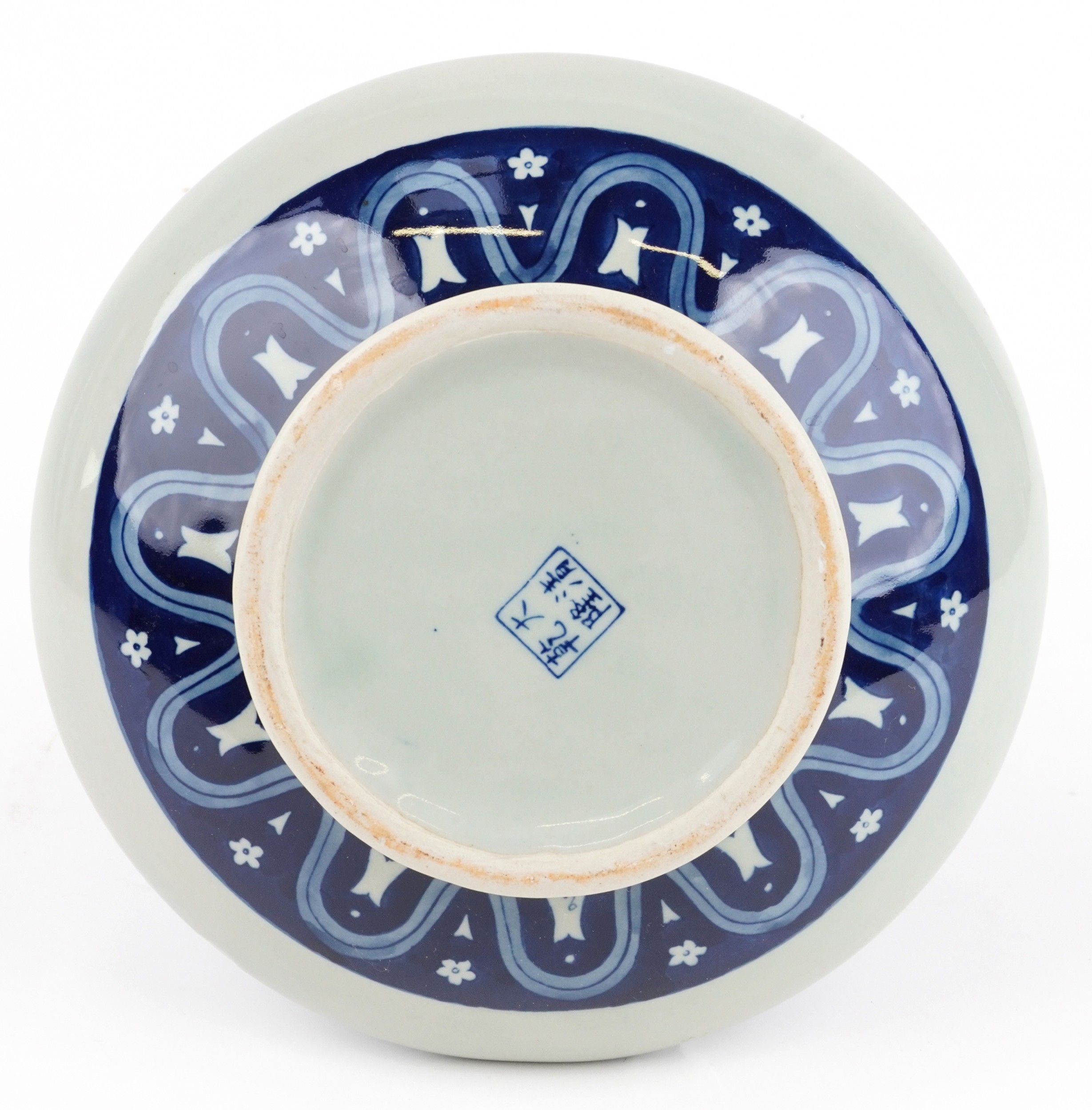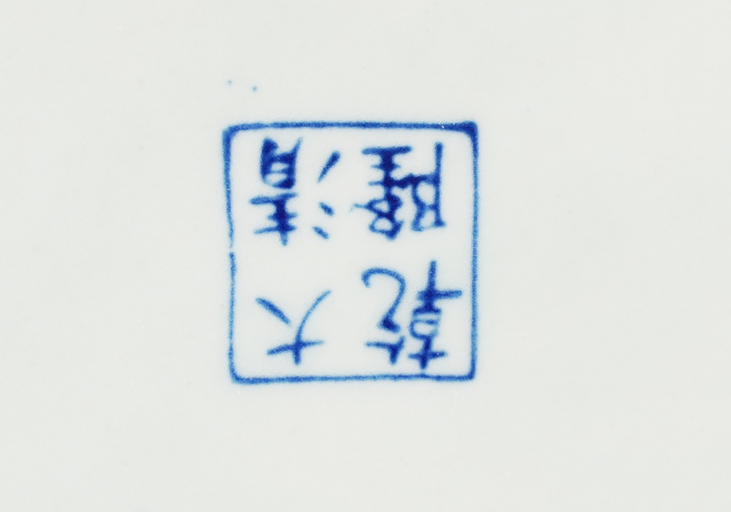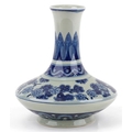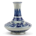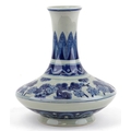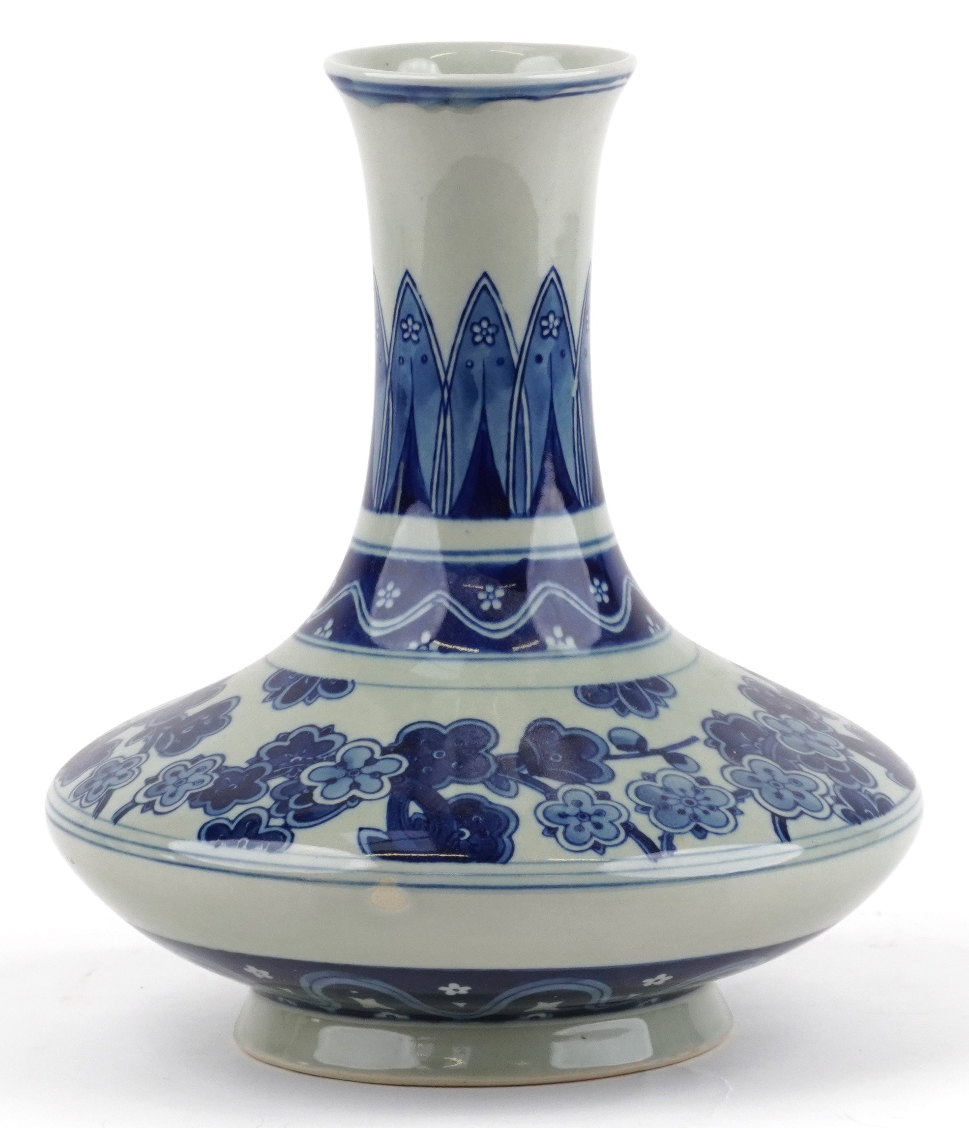 A Chinese blue and white porcelain vase, hand painted with a floral border, bearing four character marks to the base, 32cm high.