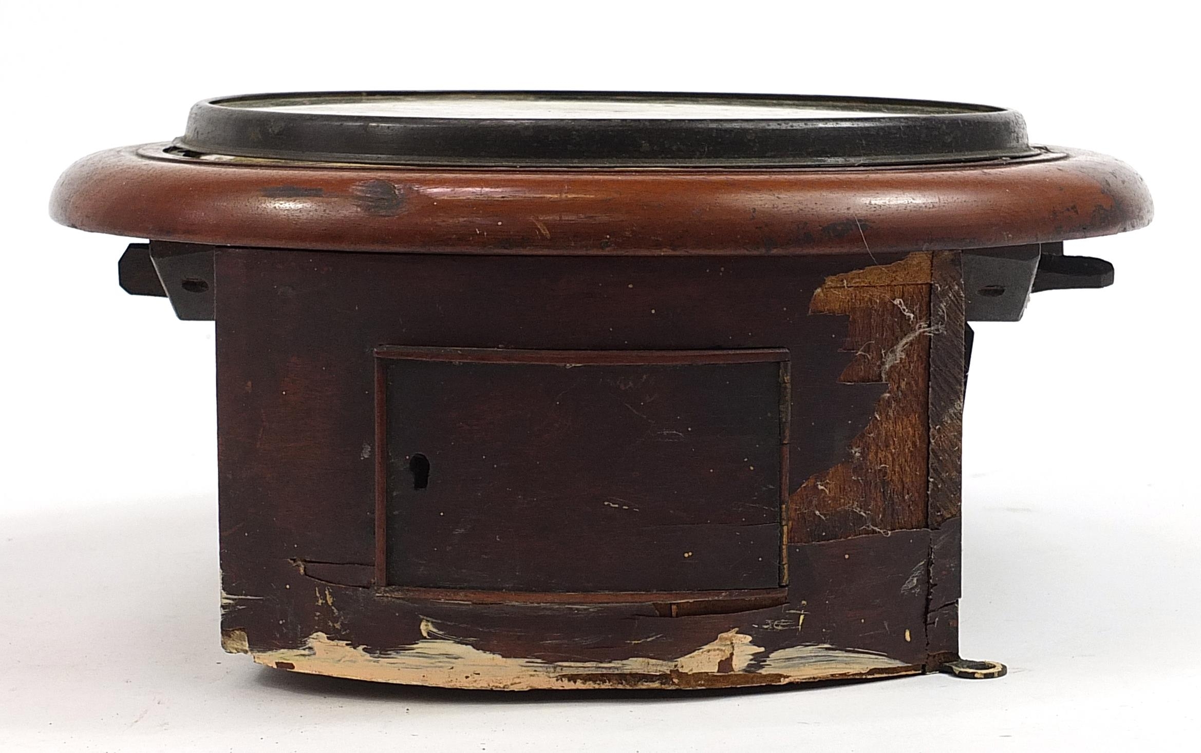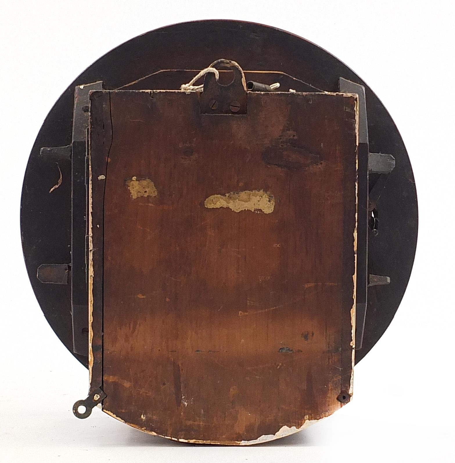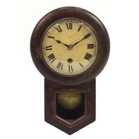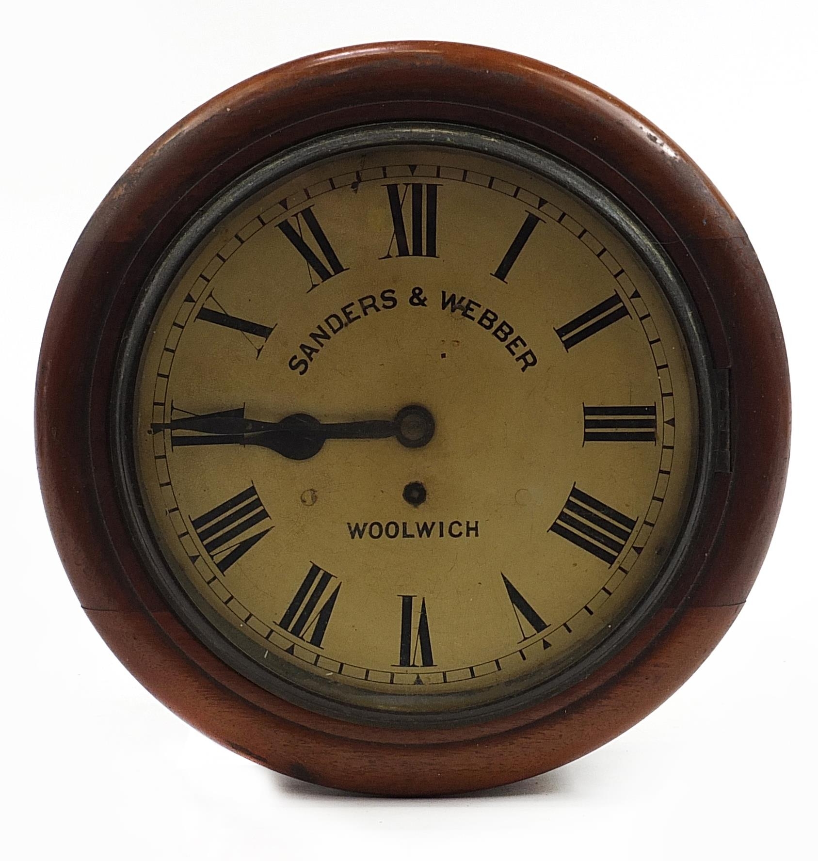 Victorian mahogany wall clock with fusee movement and dial inscribed Sanders & Webber Woolwich, 34cm in diameter