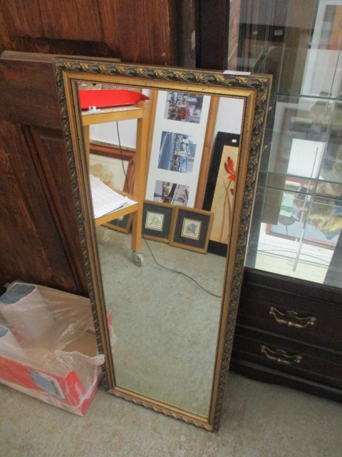 AN ORNATE GOLD COLOURED FRAMED LONG JOHN MIRROR
