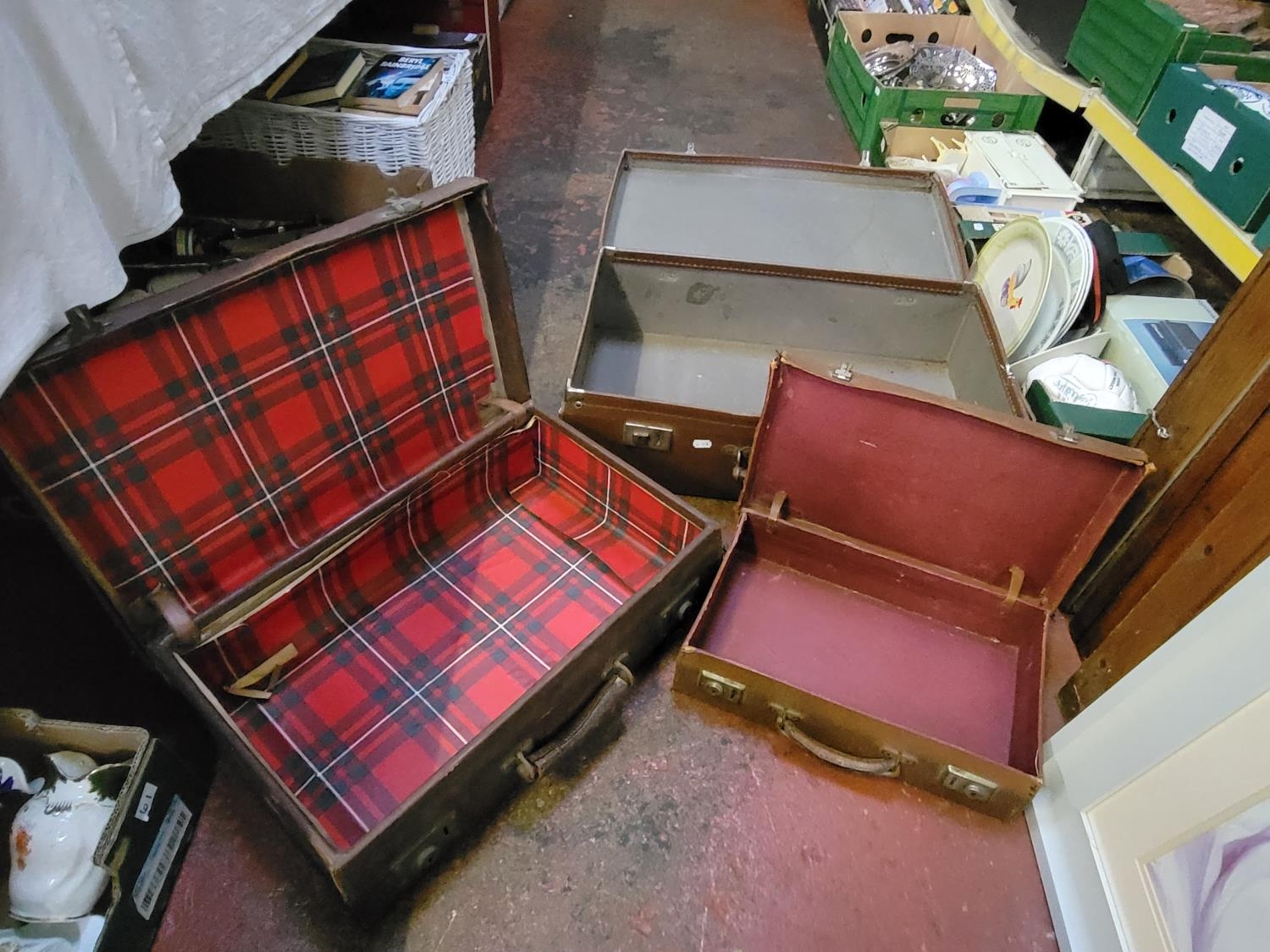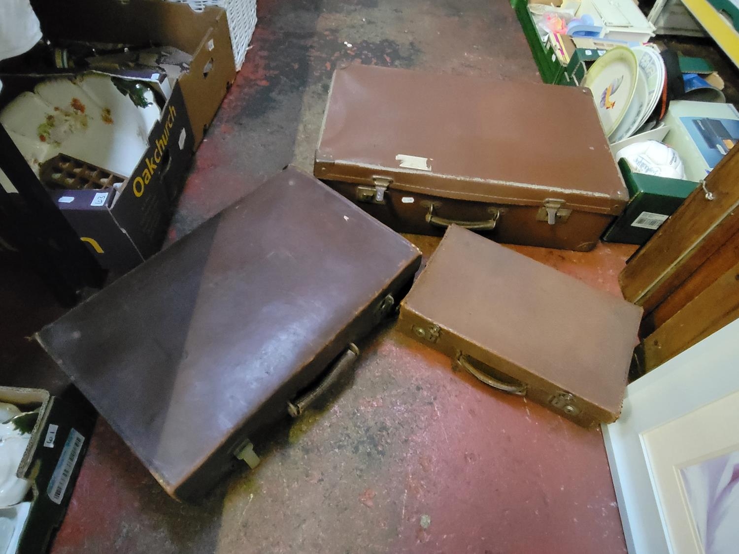 Three Graduated Vintage Brown Suitcases.