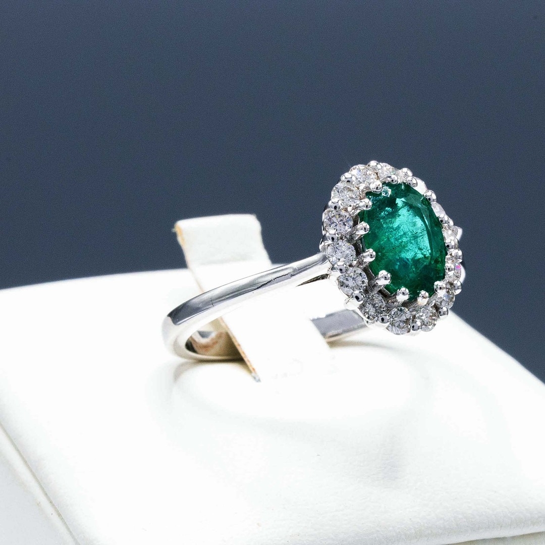 AN 18CT WHITE GOLD EMERALD AND DIAMOND CLUSTER RING. set wit...