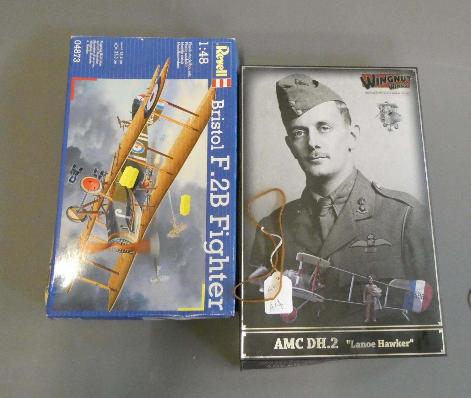 Wingnut 1:32 scale AMC DH Lanoe Hawker plastic kit and Revell 1:48 scale Bristol F. 2B, both items in good boxes, unchecked for completeness