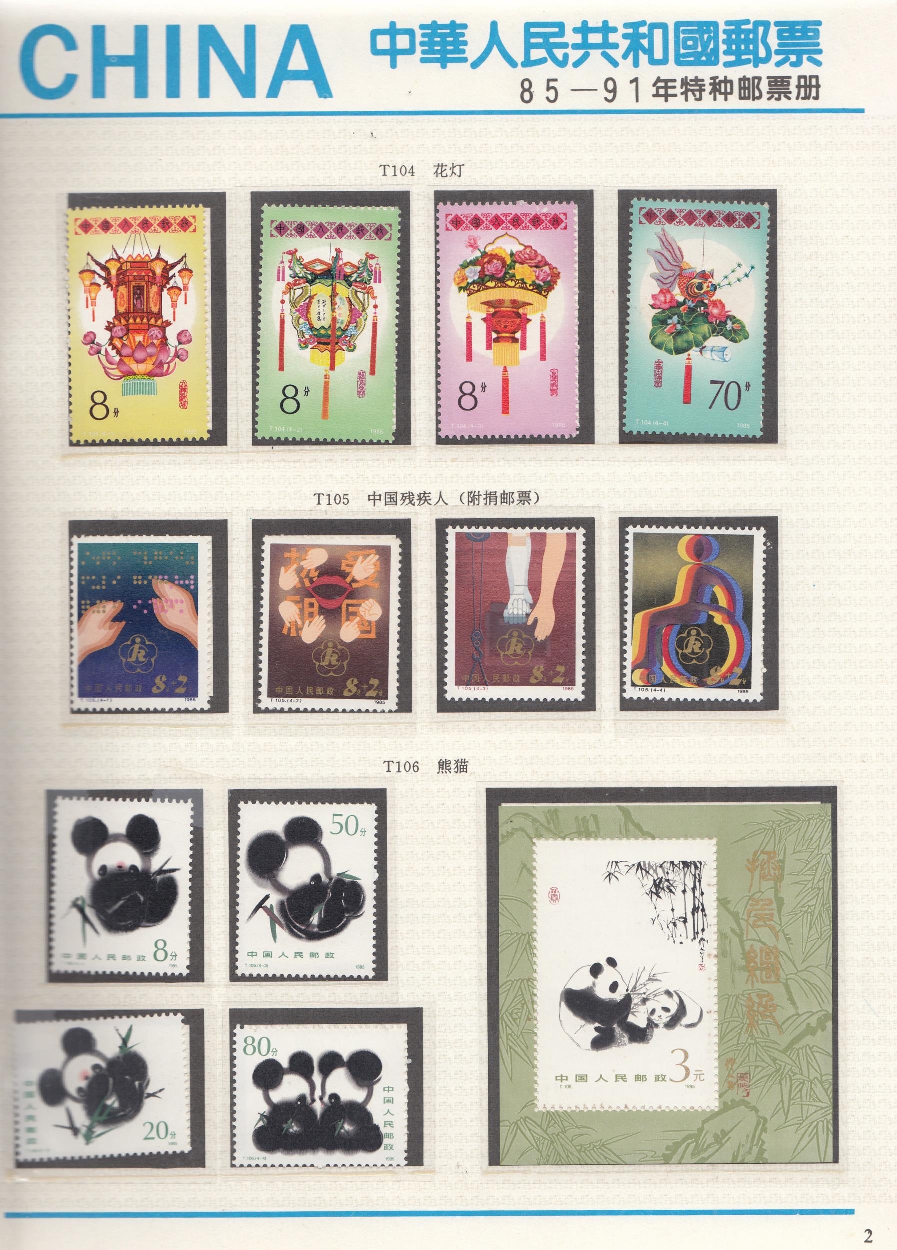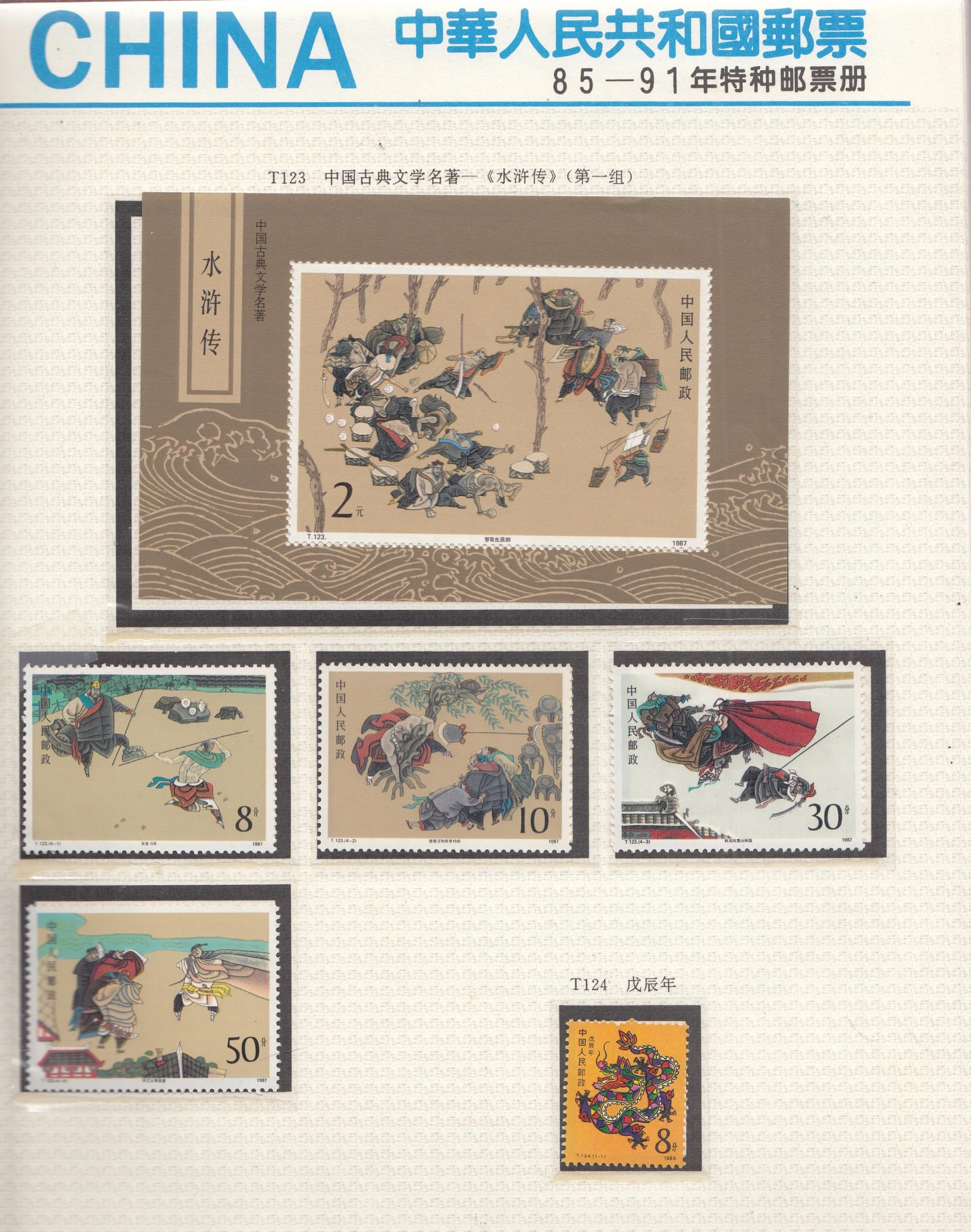 1985/91 UM collection in special printed album incl 1987 Birds of Prey, Cave Murals set plus mini sheet, Ancient Buildings set plus mini sheet, Waring States plus mini sheet, Literature set plus mini sheet, 1988 Orchid set plus mini sheet, Literature set plus mini sheet, etc, fine, high Cat (approx. 71 sets & 15 mini sheets)