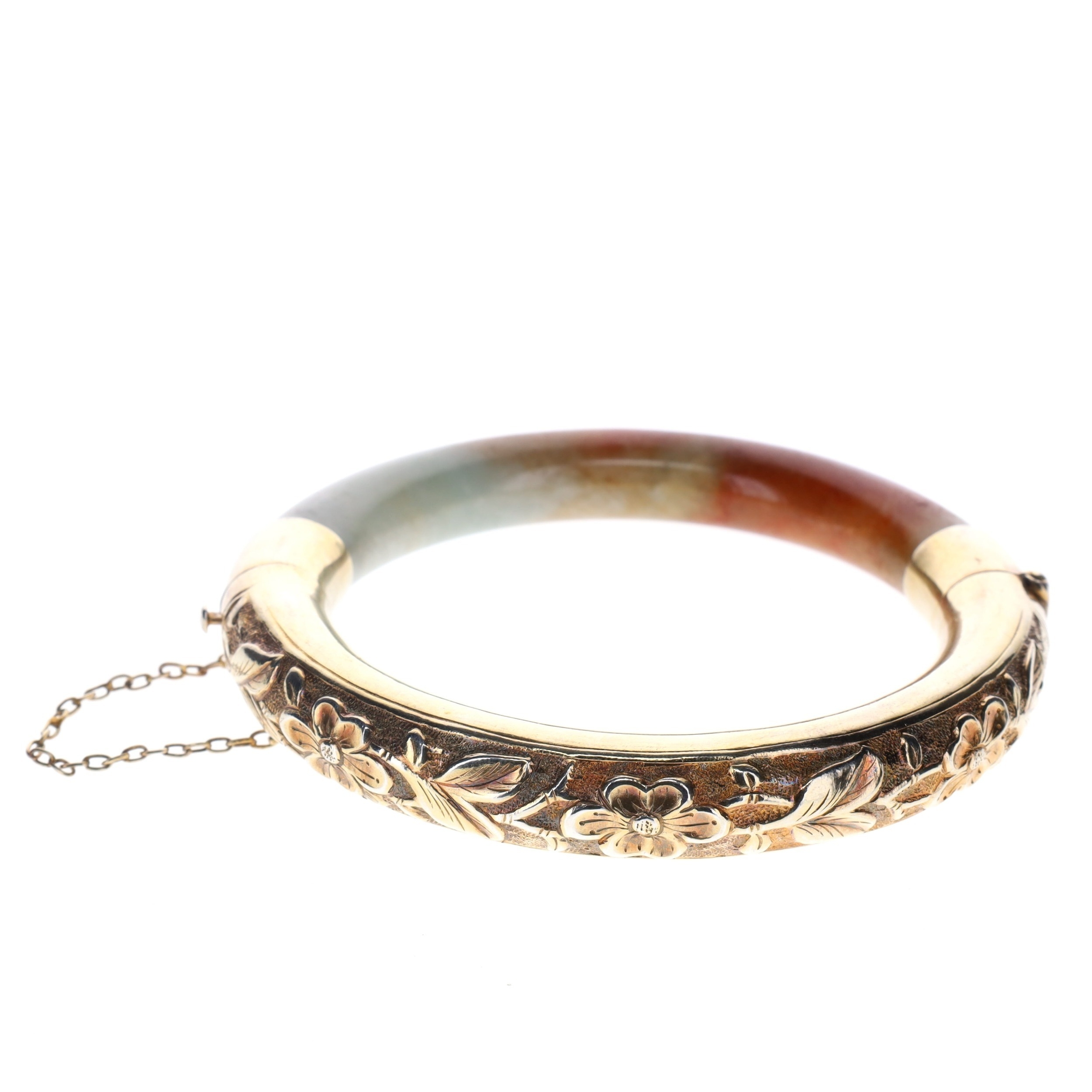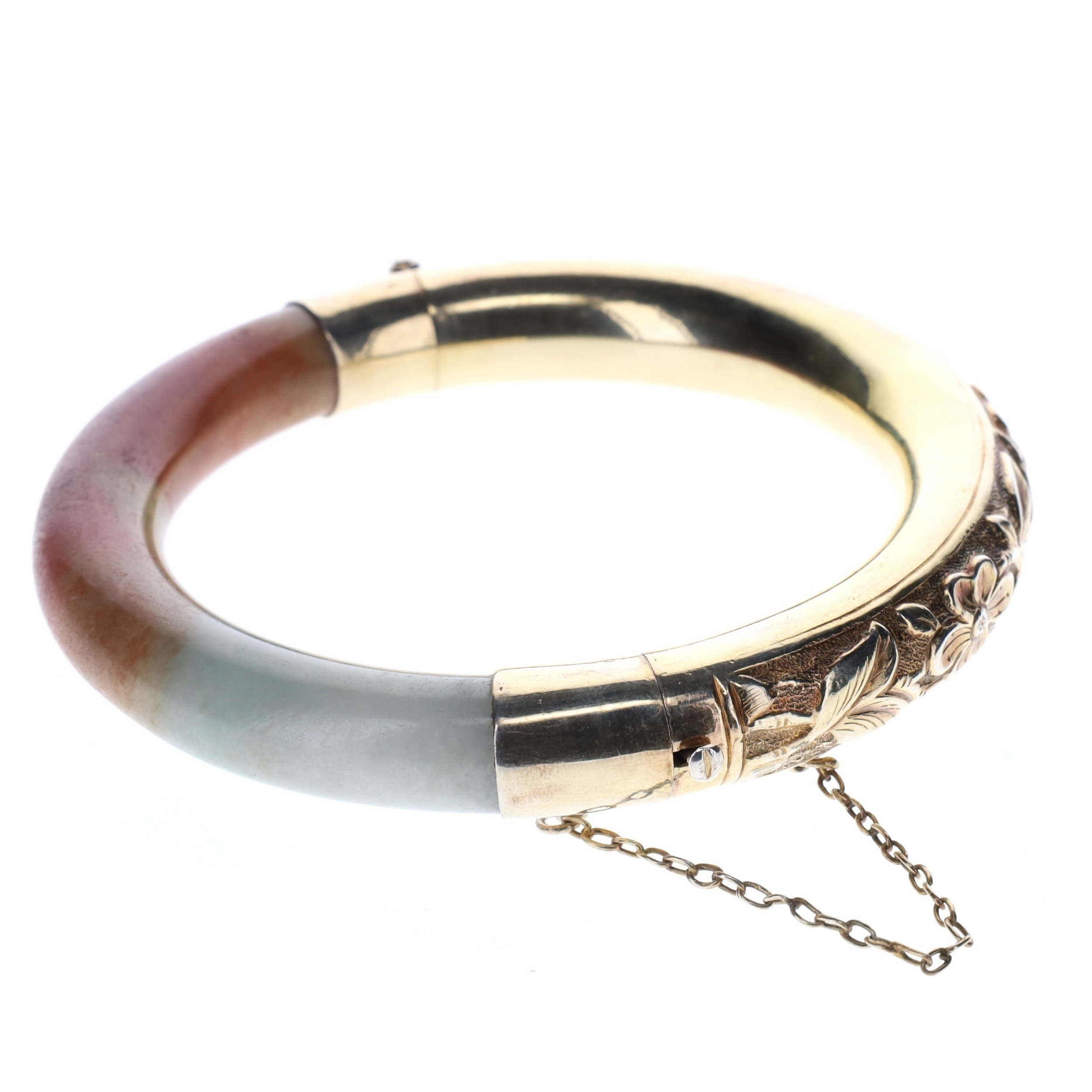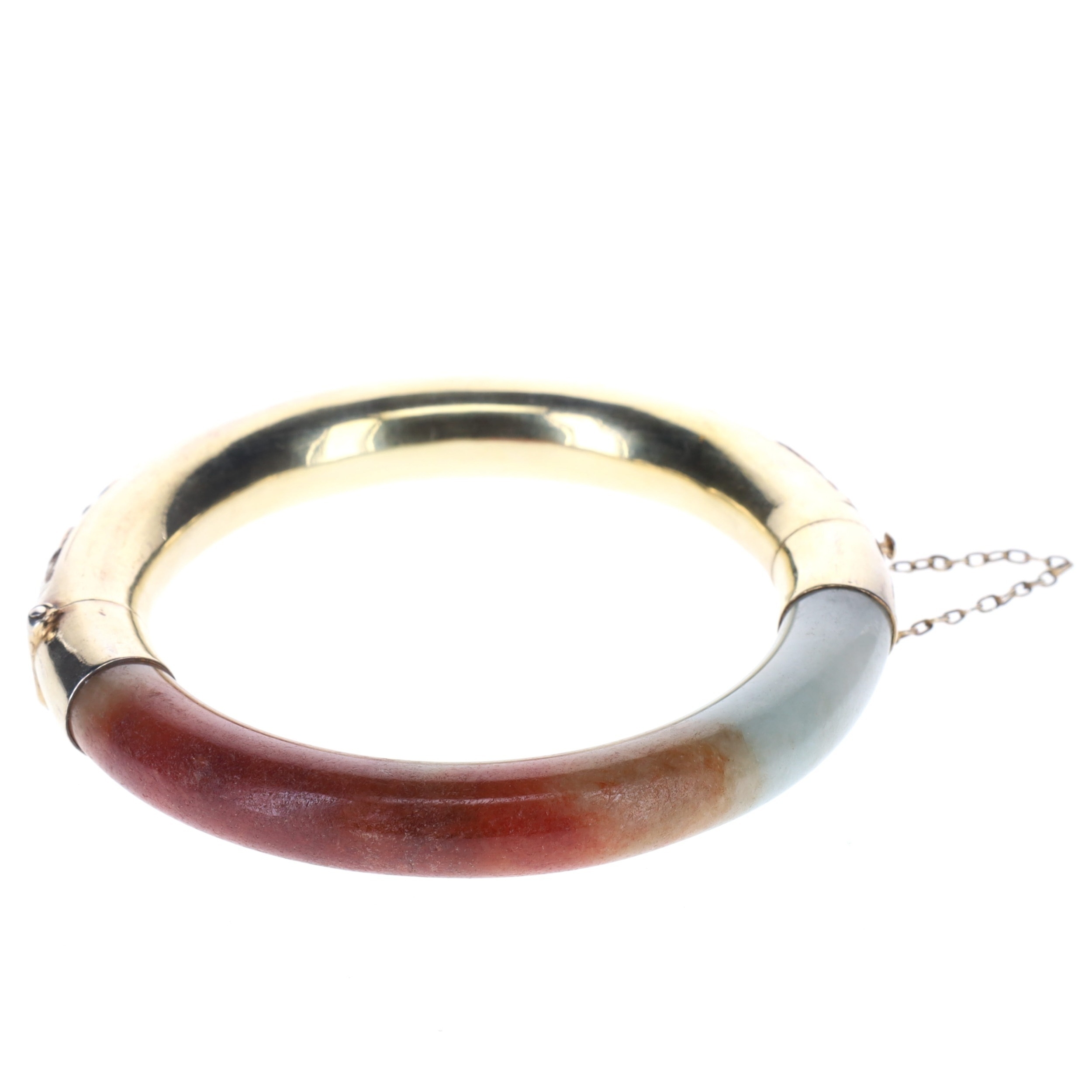 Jadeite Gold Plated Silver Bangle.