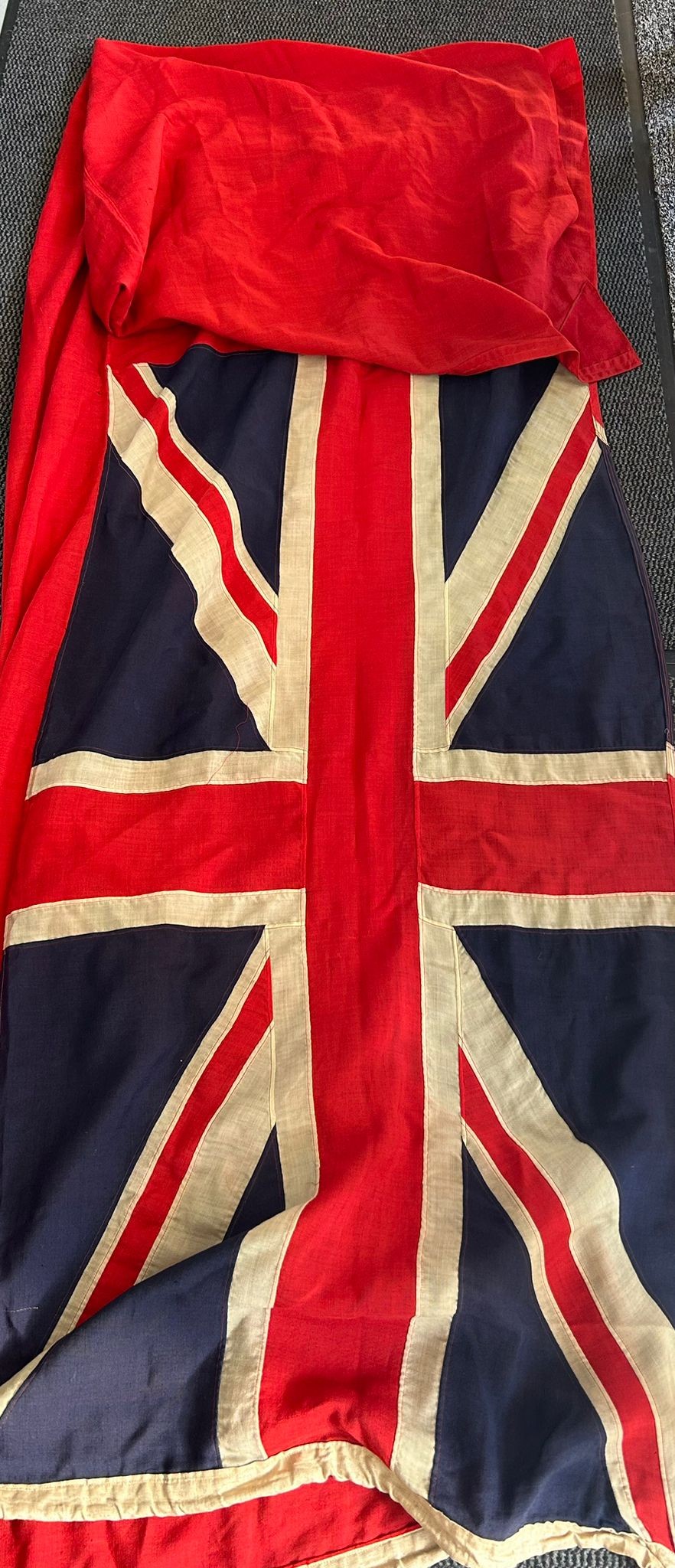 A large cotton red ensign flag (‘red duster’), 72” x 140”.  Good Condition.