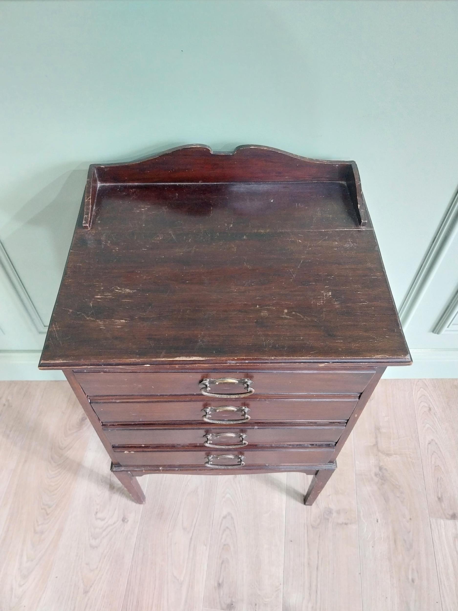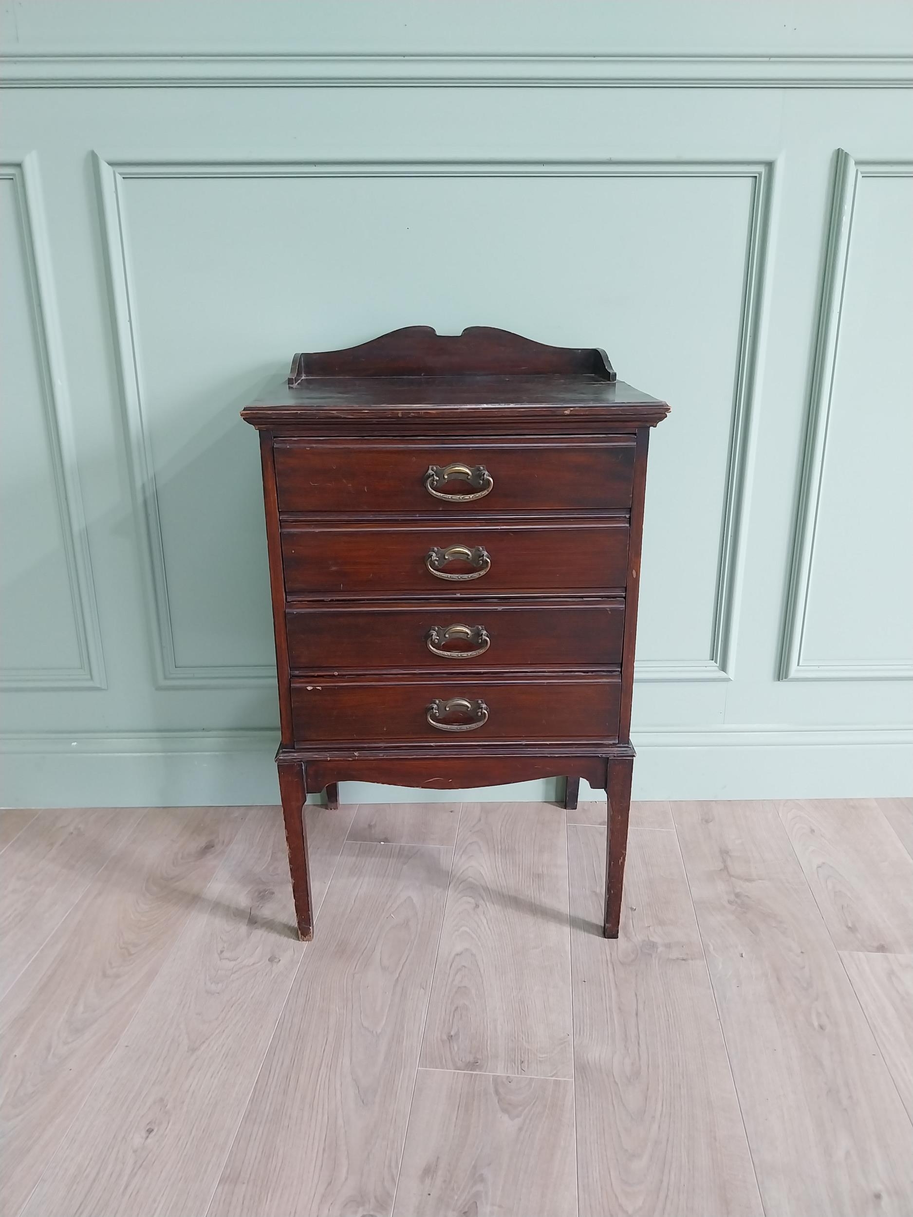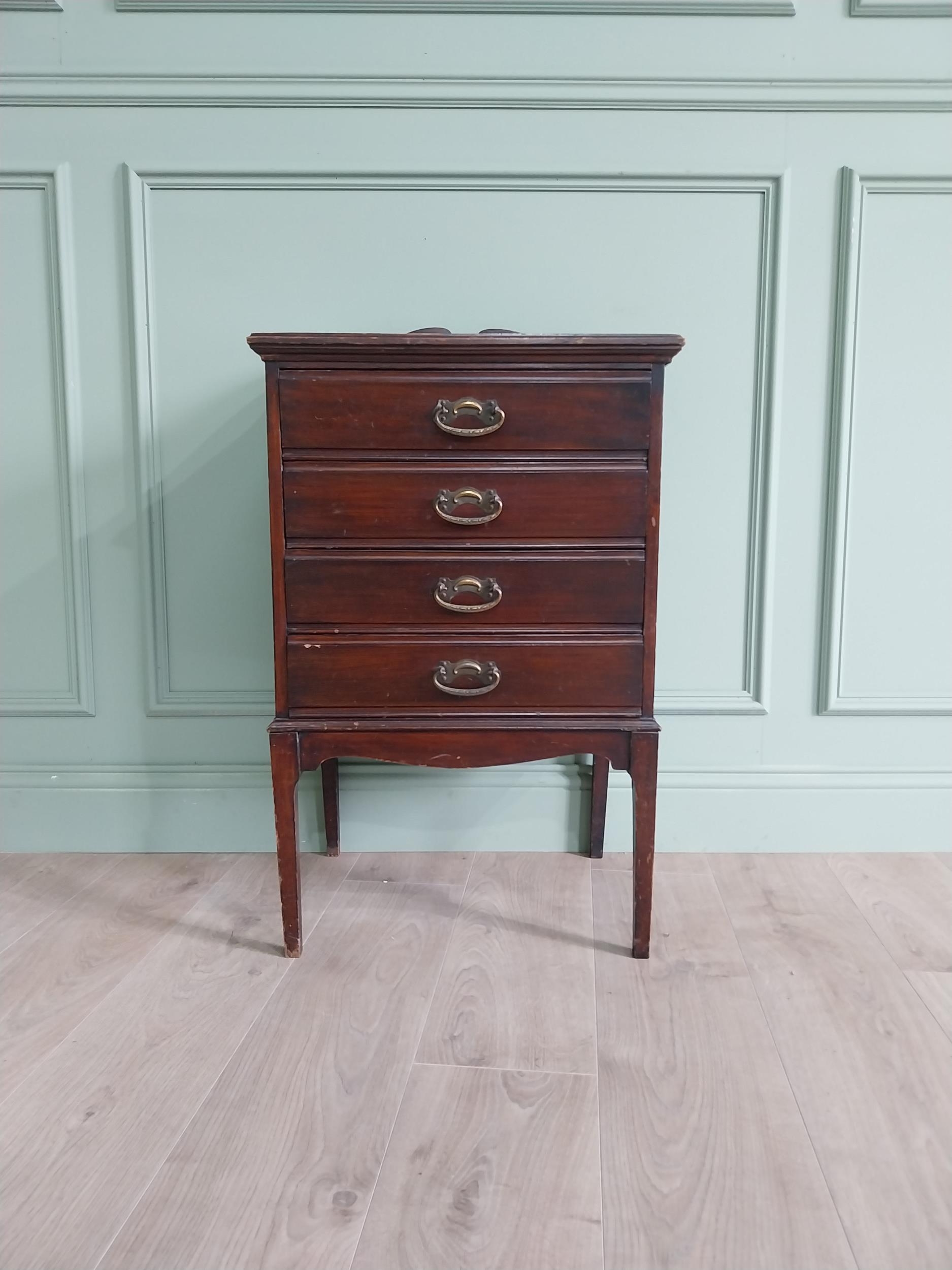 Edwardian mahogany music cabinet with four drawers raised on square tapered legs {84 cm H x 51 cm W x 40 cm D}.