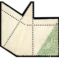 1902-10 ½d yellowish green mint from the top left corner of the sheet showing dramatic paper fold which has resulted in half of the design being printed on the gummed side, large part o.g.; very light soiling. A dramatic and spectacular variety . Ex Klempka. SG 2