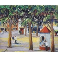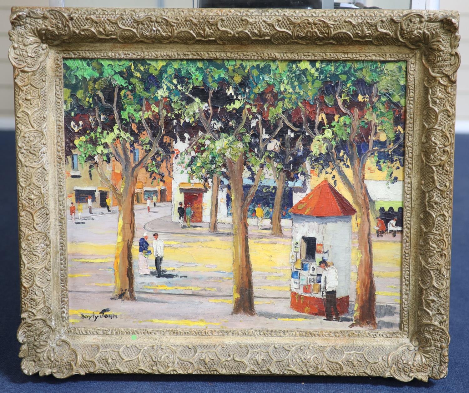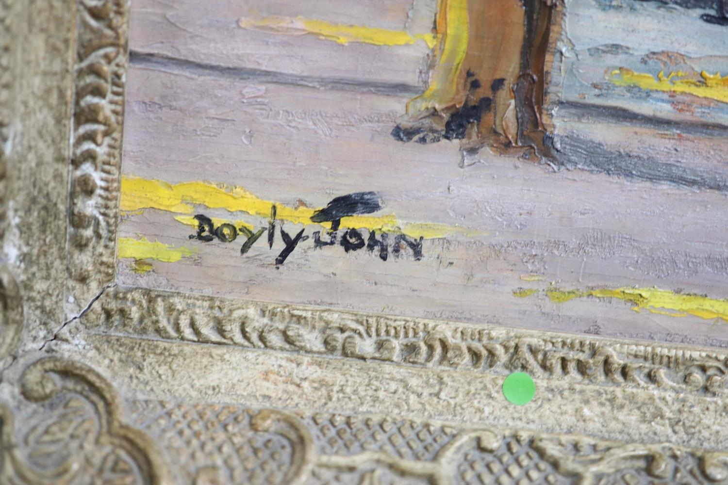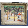 Oil on board in honest untouched condition, paint is rather dirty with the grey of the board showing through the paint as near horizontal lines, signed lower left, housed in an ornate gilt scroll frame which is probably the original.