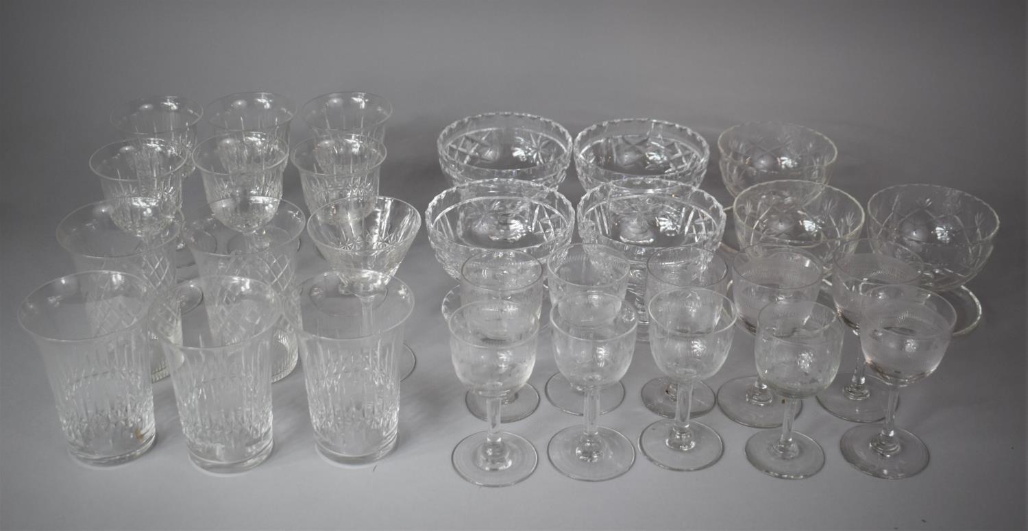 A Collection of Various Cut Glass Drinking Glasses to include Examples by Webb to Include Tumblers, Sherry Glasses, Sundae Dishes etc