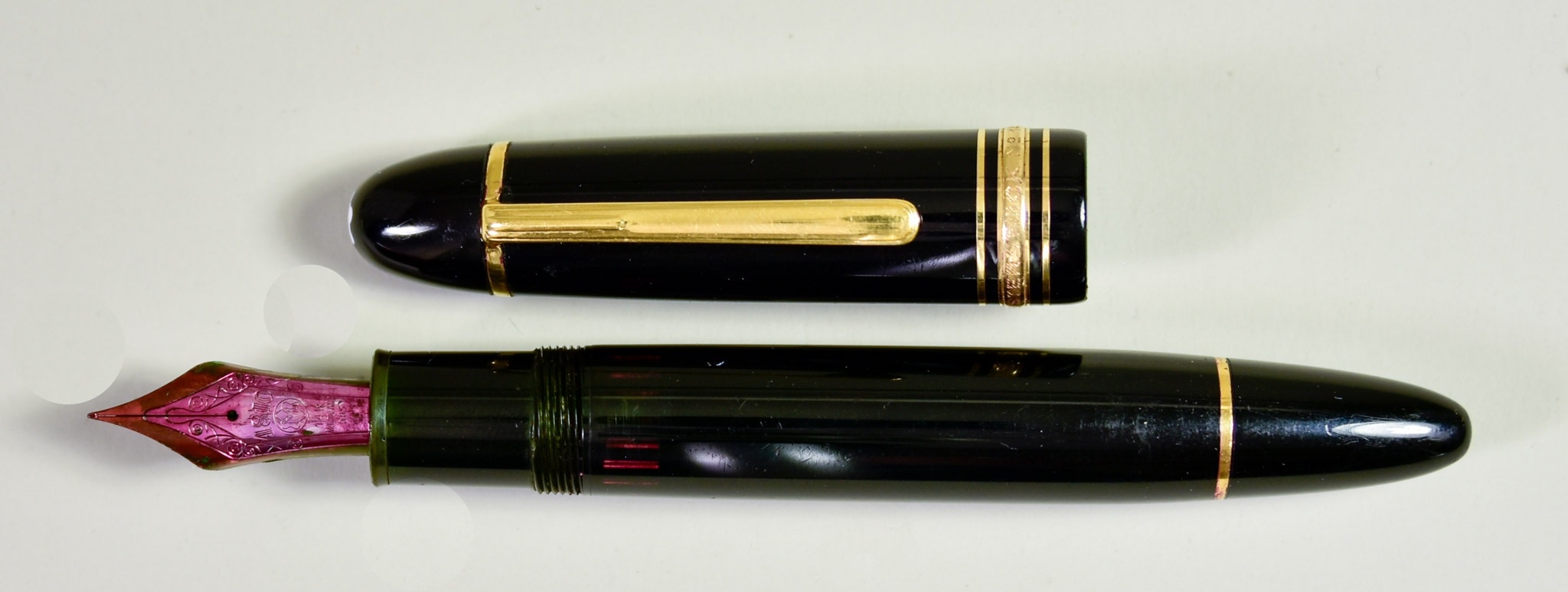 A Montblanc "Meisterstuck" No. 149 Fountain Pen, in black resin with gold band and clip detailing, nib marked 14k, 4810