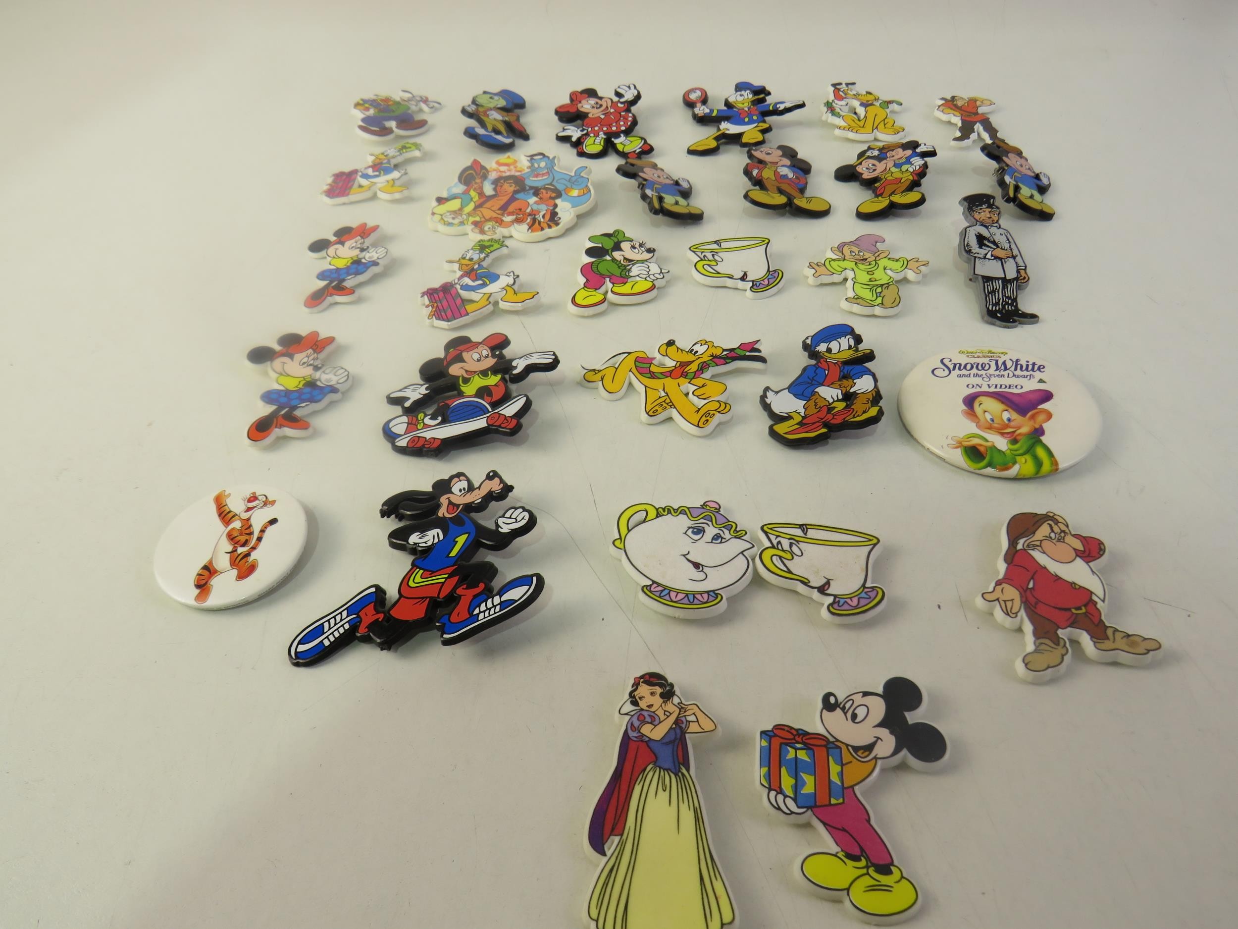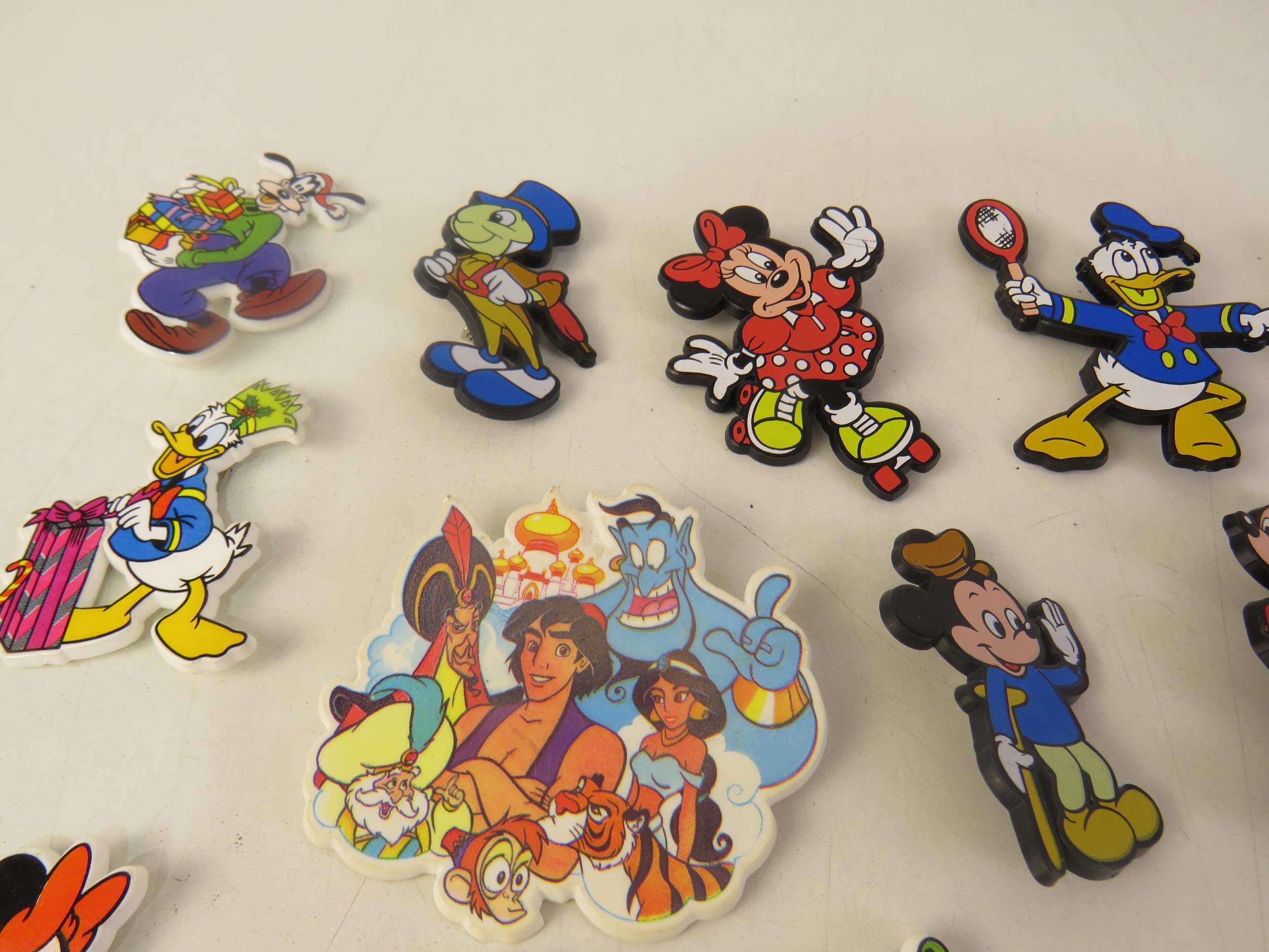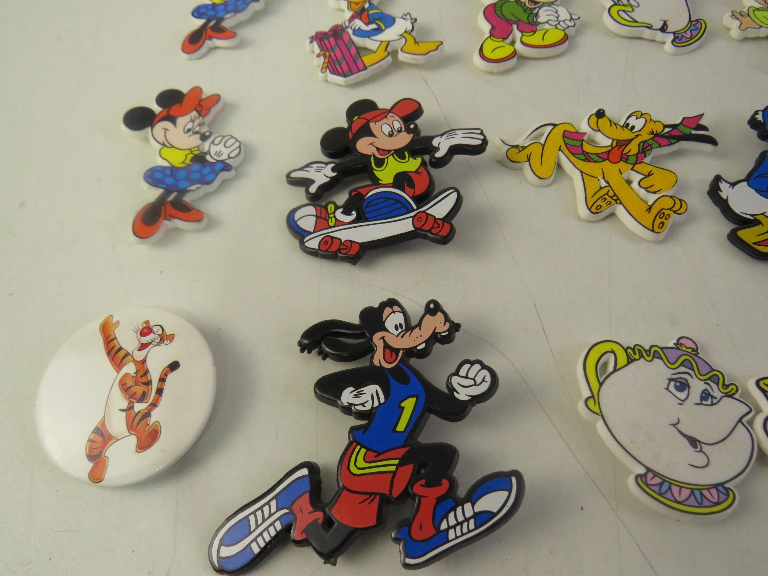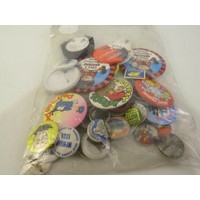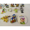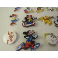 Collection of badges including Disney Mickey Mouse etc.