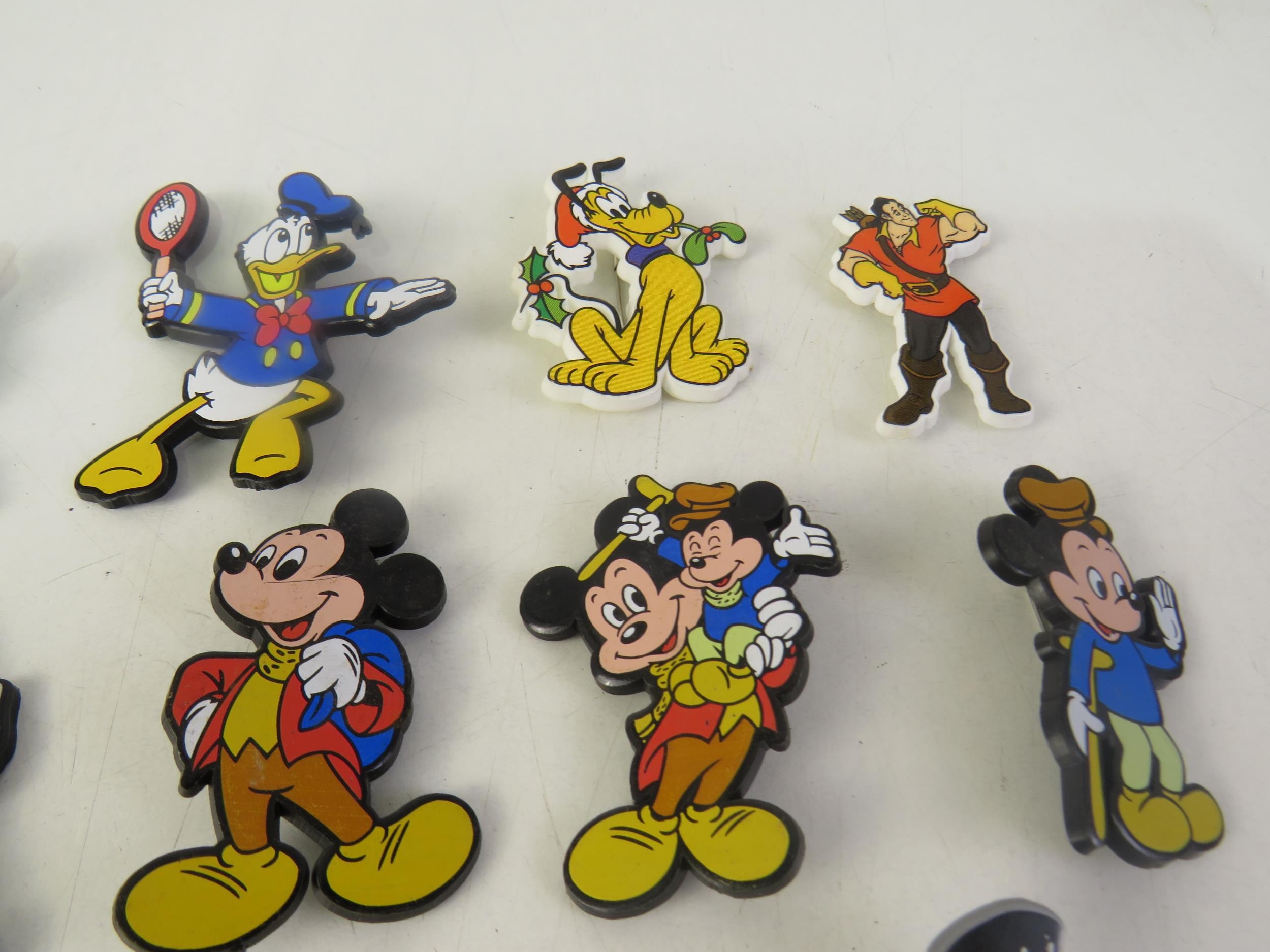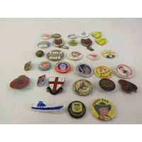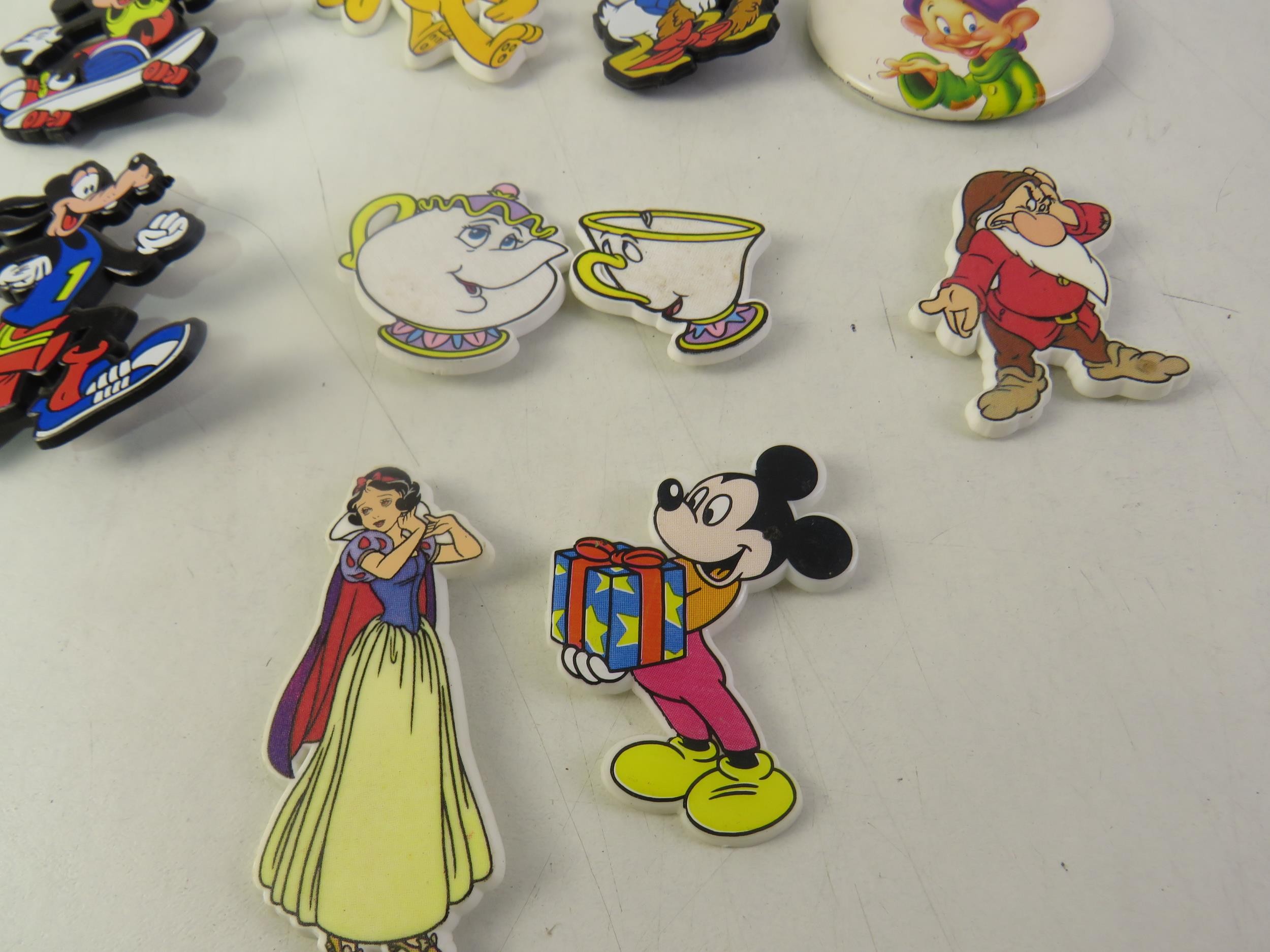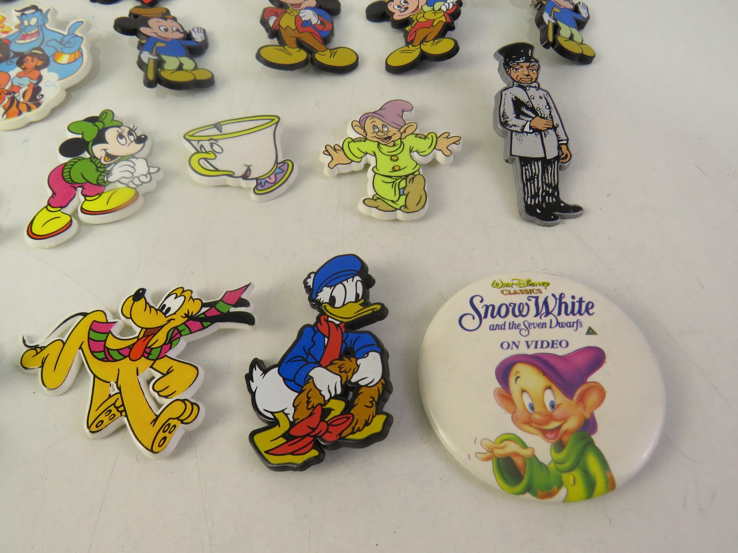 Collection of badges including Disney Mickey Mouse etc.