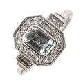 An aquamarine and diamond ring, with round brilliant cut and baguette diamonds, 0.57ct, in platinum, 6.1g size O