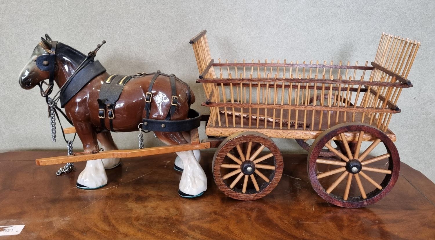 Horse & Cart Ornament, overall length: 70cm and Height 27cm